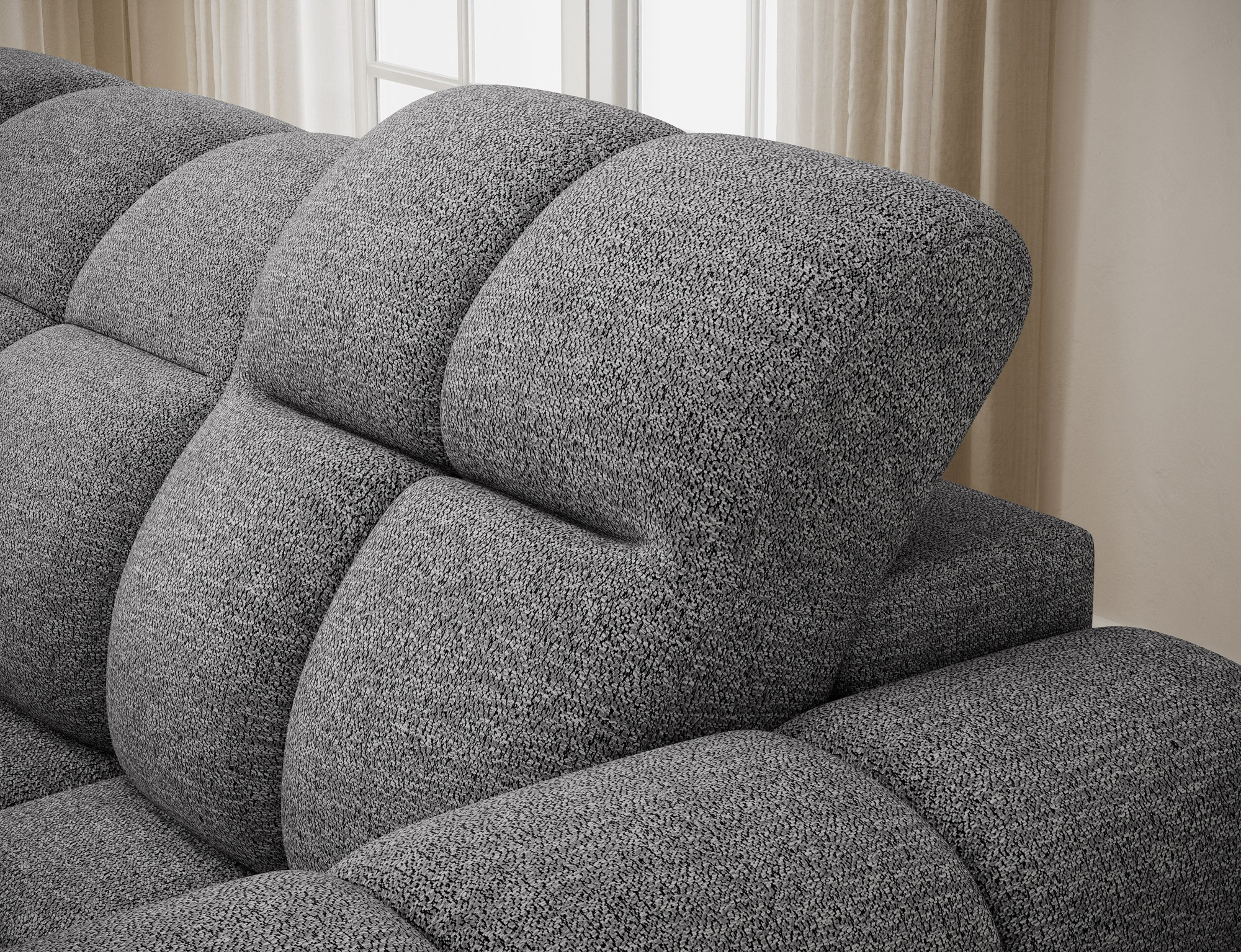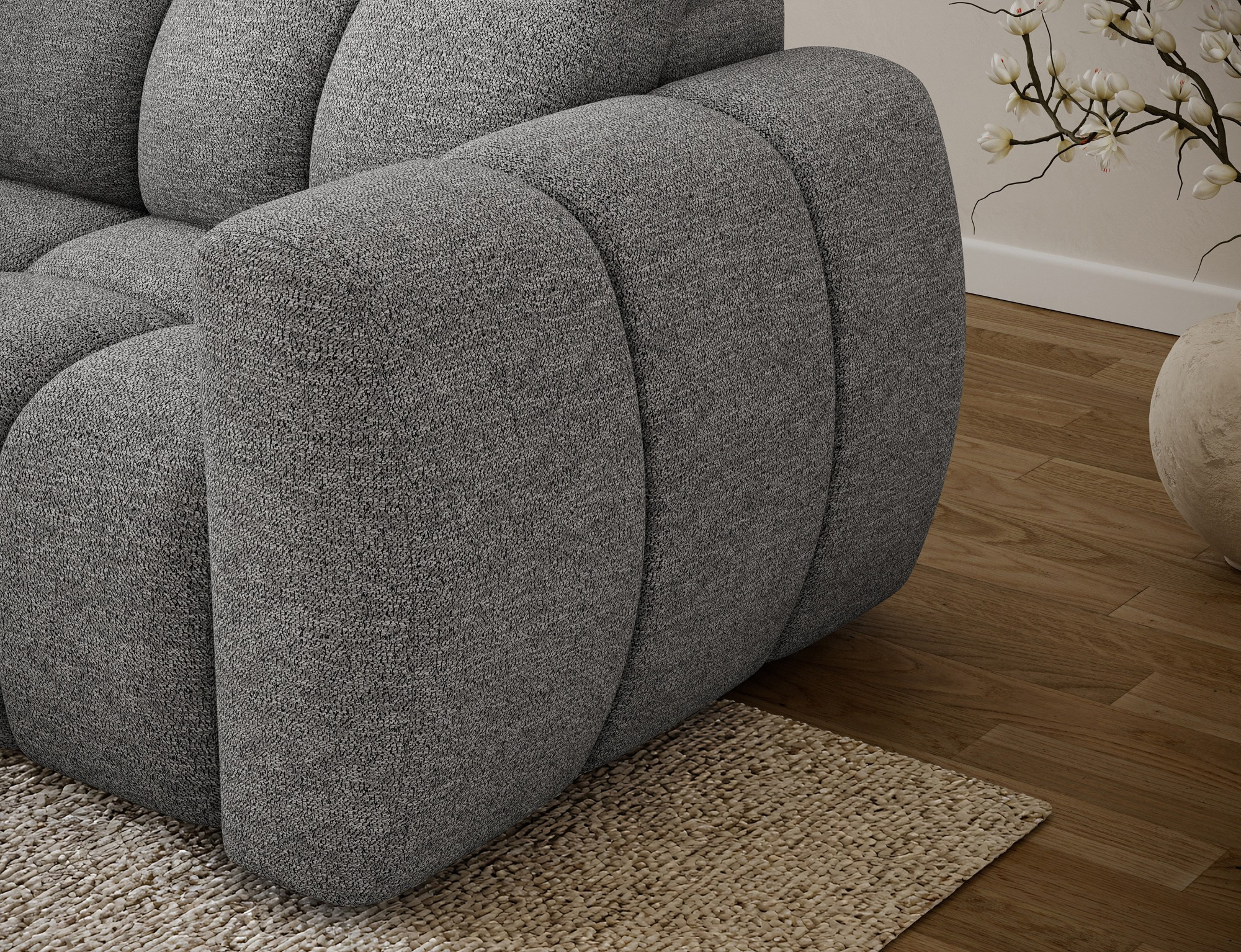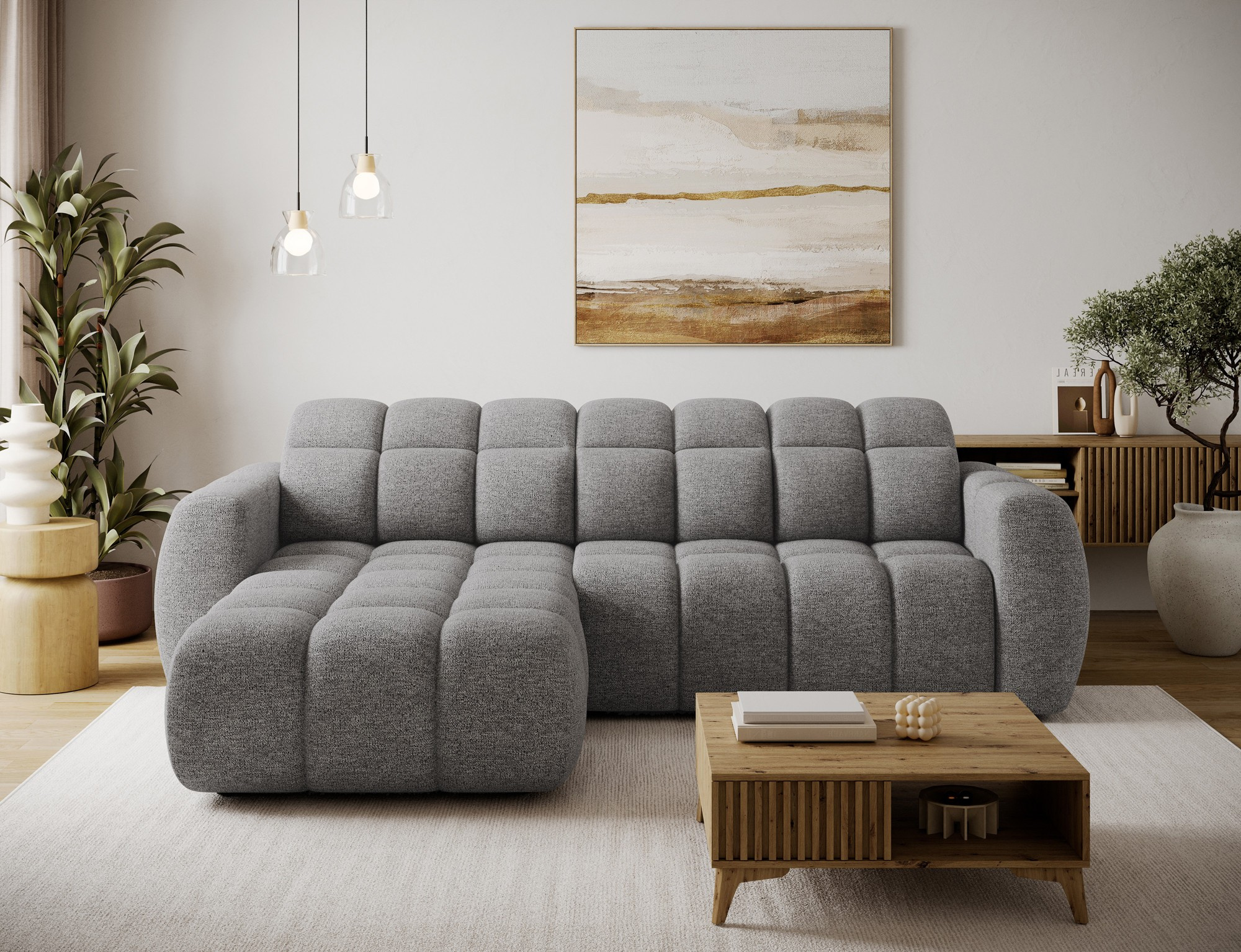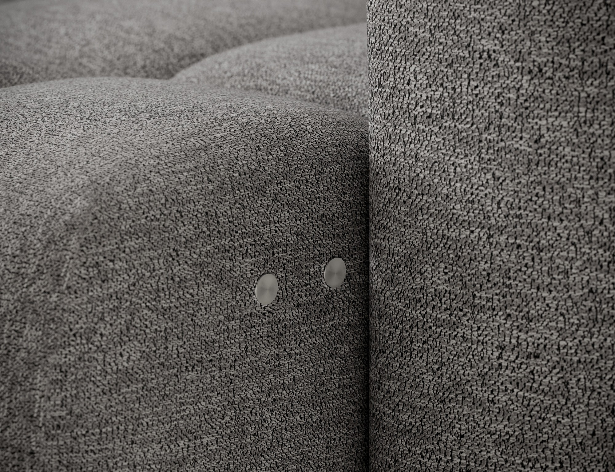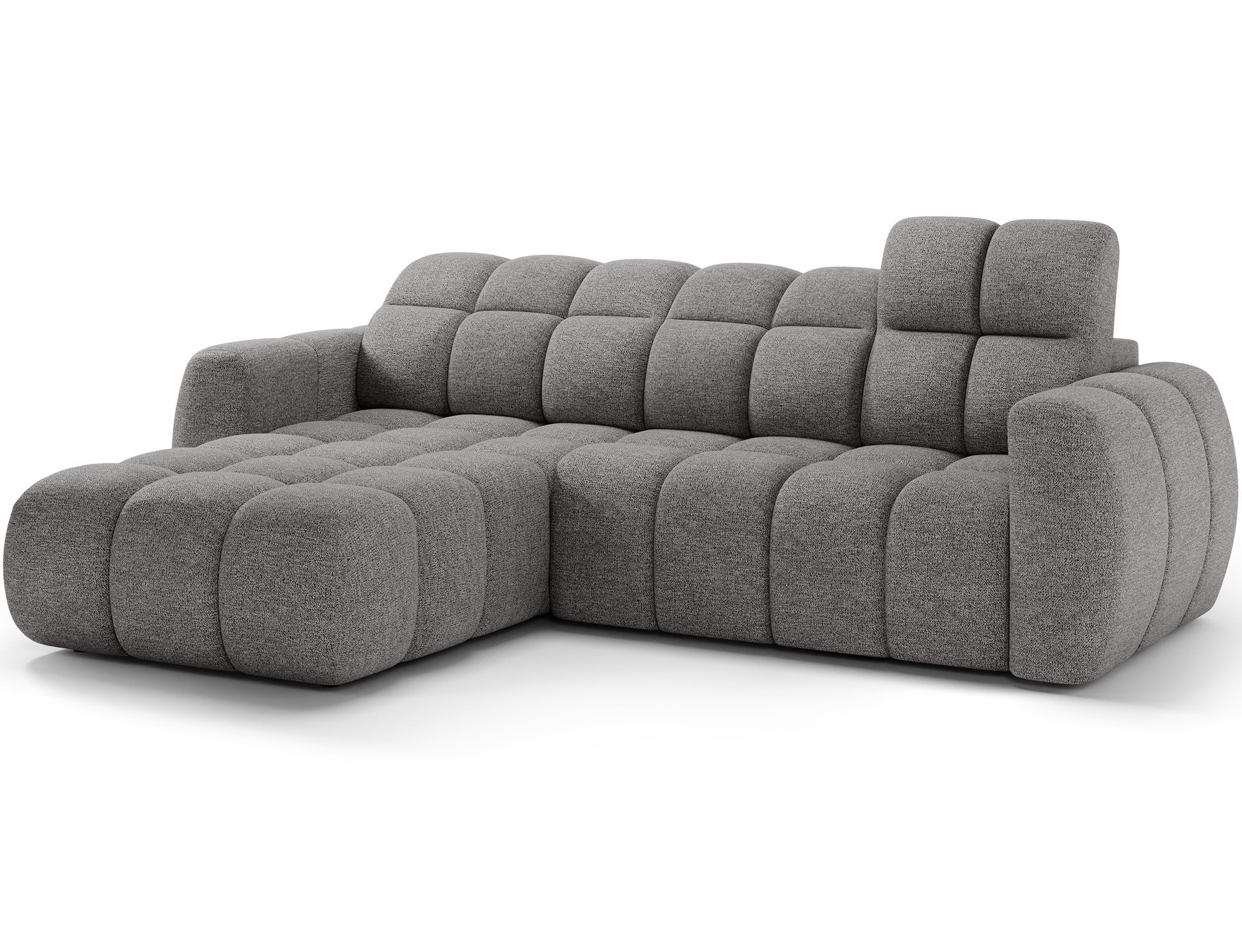 The Fanito corner sofa is a modern, spacious L-shaped sectional designed for the living room, distinguished by its solid, rounded silhouette, deep seat, and segmented tufting that highlights its designer yet cozy character—perfect for a home relaxation zone. The model measures 288 × 200 × 105 cm and weighs 130.6 kg, ensuring stability and everyday comfort. The seat filling combines Type B wave springs, HR3030 high-resilience foam, and 150 g/m² quilted wadding, providing elasticity, comfort, and resistance to sagging, while the backrest is reinforced with upholstery straps and profiled T2316 polyurethane foam for ergonomic back support. As a sleeper sectional, it offers a practical sleeping area of 85 × 232 × 47 cm, and the electric seat extension (actuator) of 28 cm lets you enlarge the lounging surface quickly and effortlessly. Additionally, the headrest mechanism with a return spring allows convenient adjustment of head support, making the Fanito corner sofa an excellent choice for anyone seeking a comfortable pull-out sectional that blends style, functionality, and high build quality.