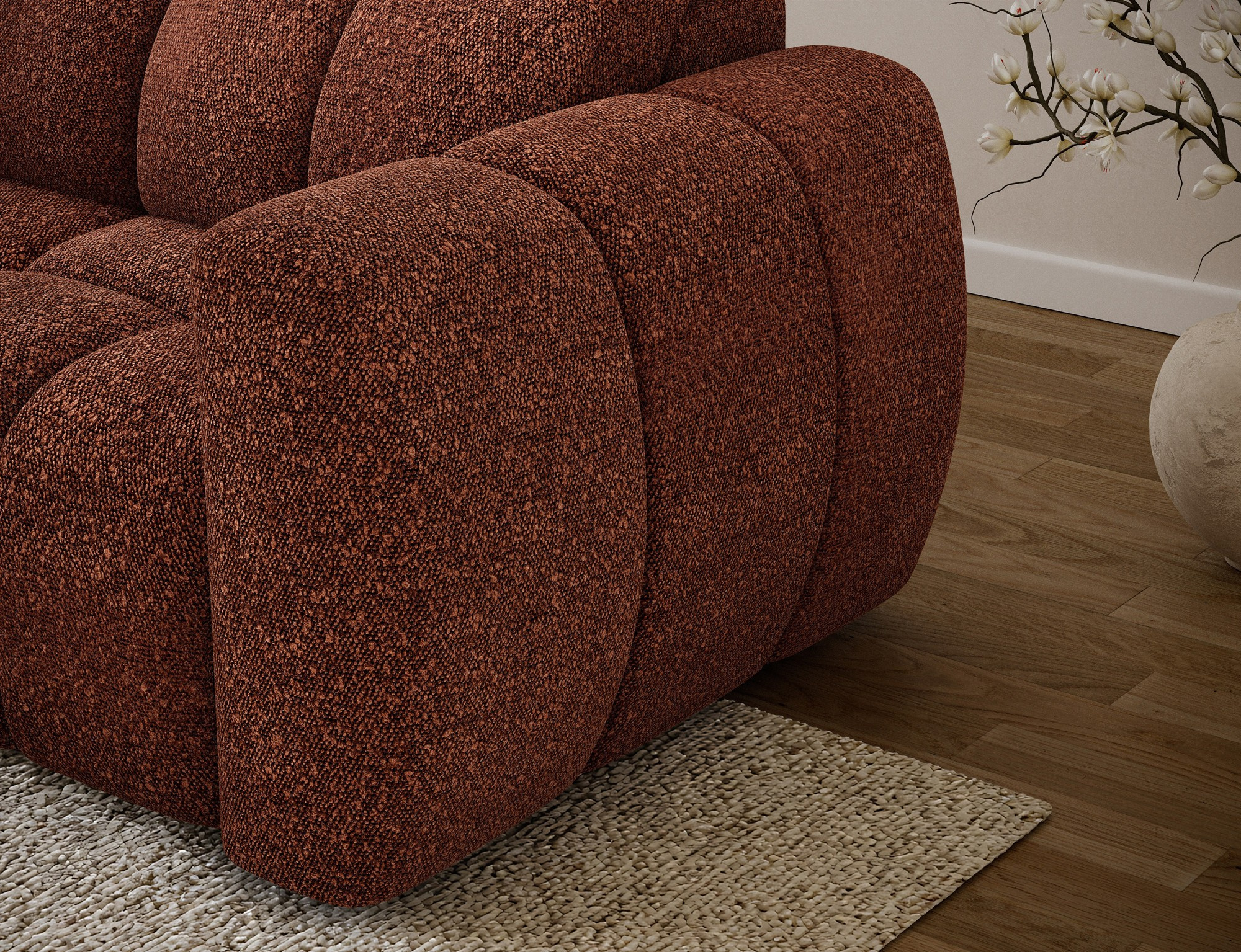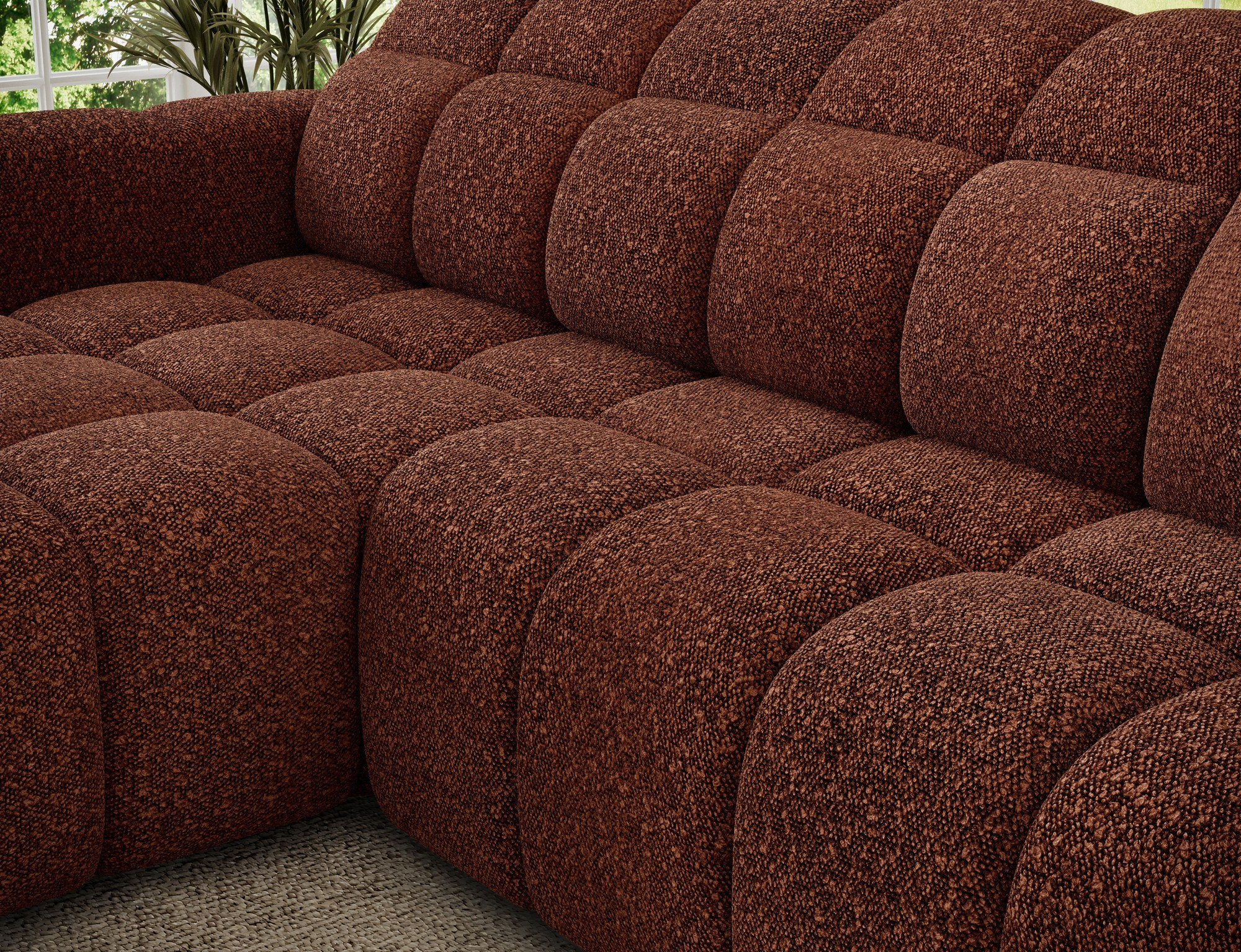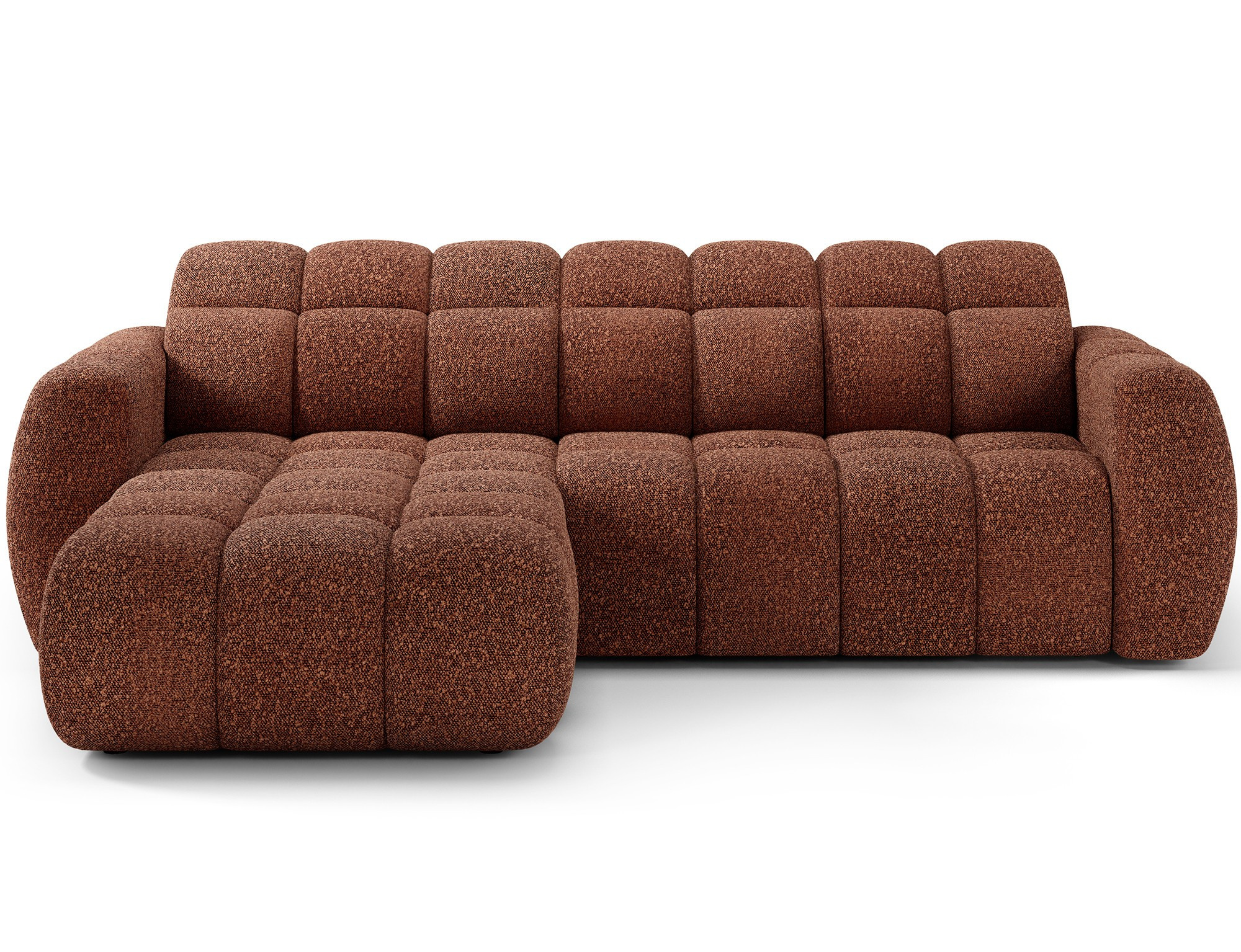 The Fanito corner sofa is a modern, spacious L-shaped sectional designed for the living room, distinguished by its solid, rounded silhouette, deep seat, and segmented tufting that highlights its designer yet cozy character—perfect for a home relaxation zone. The model measures 288 × 200 × 105 cm and weighs 130.6 kg, ensuring stability and everyday comfort. The seat filling combines Type B wave springs, HR3030 high-resilience foam, and 150 g/m² quilted wadding, providing elasticity, comfort, and resistance to sagging, while the backrest is reinforced with upholstery straps and profiled T2316 polyurethane foam for ergonomic back support. As a sleeper sectional, it offers a practical sleeping area of 85 × 232 × 47 cm, and the electric seat extension (actuator) of 28 cm lets you enlarge the lounging surface quickly and effortlessly. Additionally, the headrest mechanism with a return spring allows convenient adjustment of head support, making the Fanito corner sofa an excellent choice for anyone seeking a comfortable pull-out sectional that blends style, functionality, and high build quality.