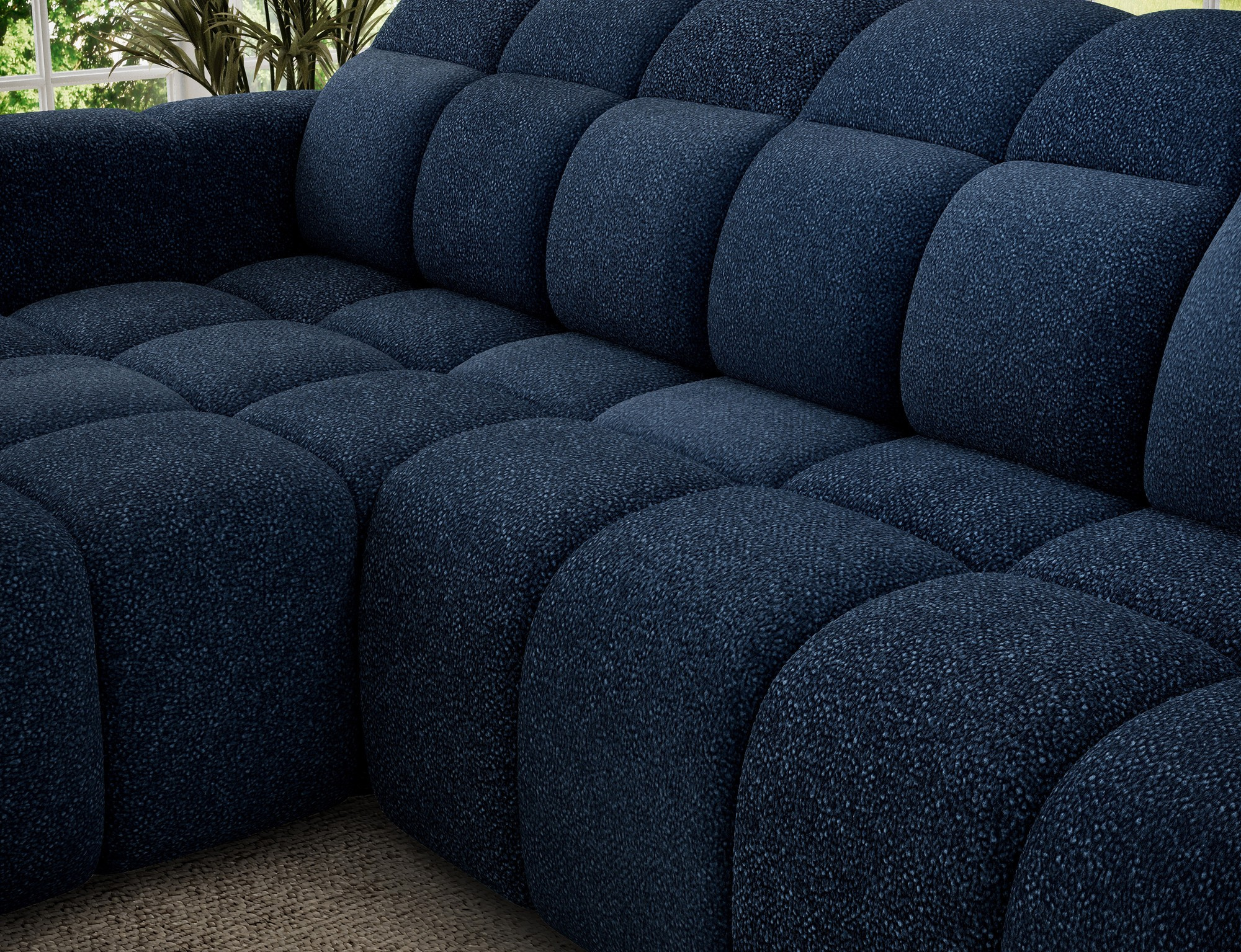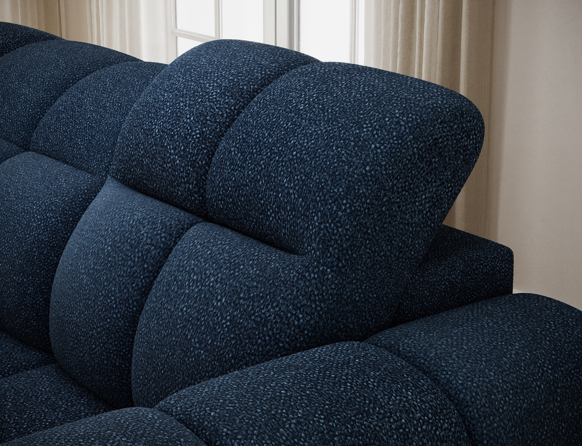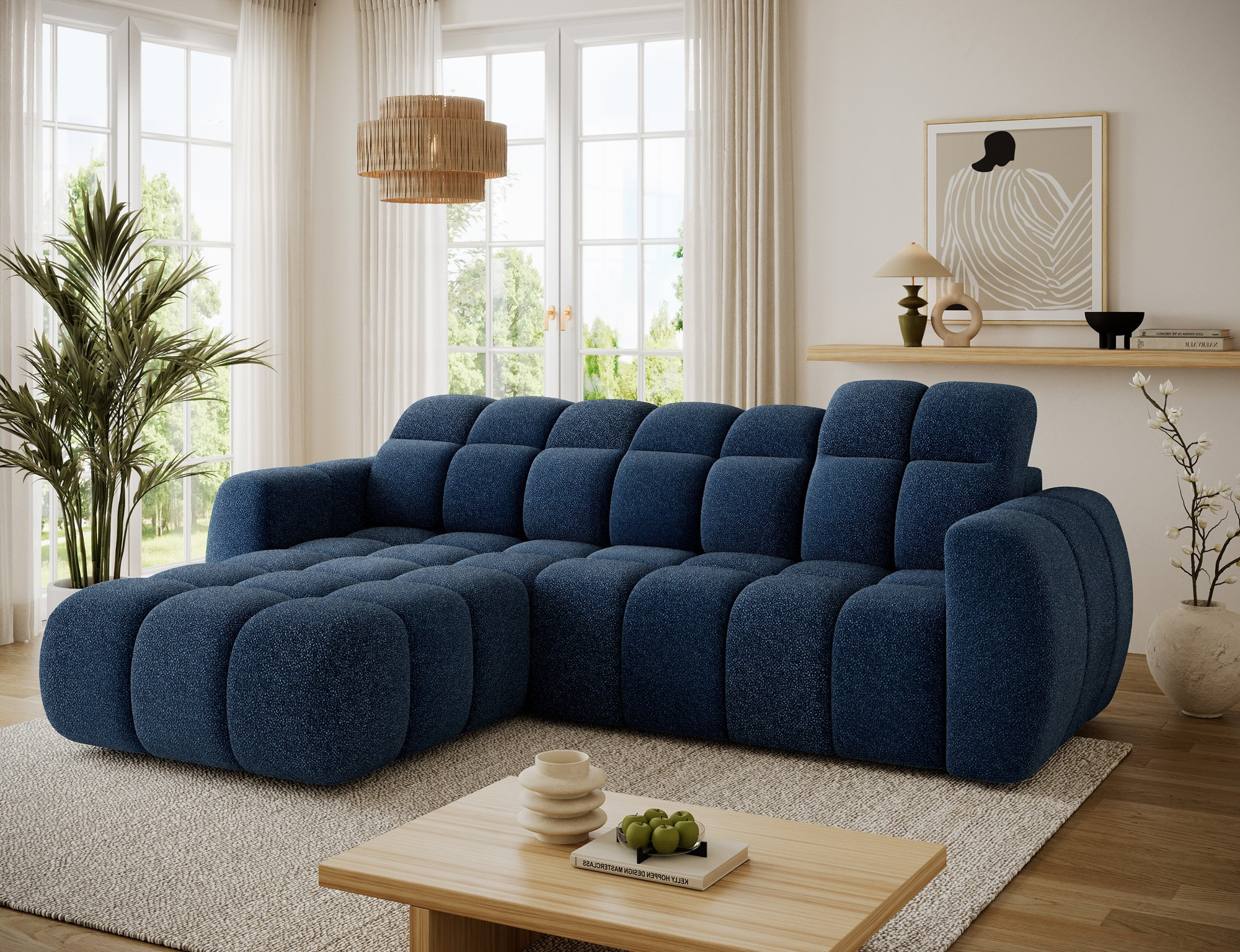 The Fanito corner sofa is a modern, spacious L-shaped sectional designed for the living room, distinguished by its solid, rounded silhouette, deep seat, and segmented tufting that highlights its designer yet cozy character—perfect for a home relaxation zone. The model measures 288 × 200 × 105 cm and weighs 130.6 kg, ensuring stability and everyday comfort. The seat filling combines Type B wave springs, HR3030 high-resilience foam, and 150 g/m² quilted wadding, providing elasticity, comfort, and resistance to sagging, while the backrest is reinforced with upholstery straps and profiled T2316 polyurethane foam for ergonomic back support. As a sleeper sectional, it offers a practical sleeping area of 85 × 232 × 47 cm, and the electric seat extension (actuator) of 28 cm lets you enlarge the lounging surface quickly and effortlessly. Additionally, the headrest mechanism with a return spring allows convenient adjustment of head support, making the Fanito corner sofa an excellent choice for anyone seeking a comfortable pull-out sectional that blends style, functionality, and high build quality.