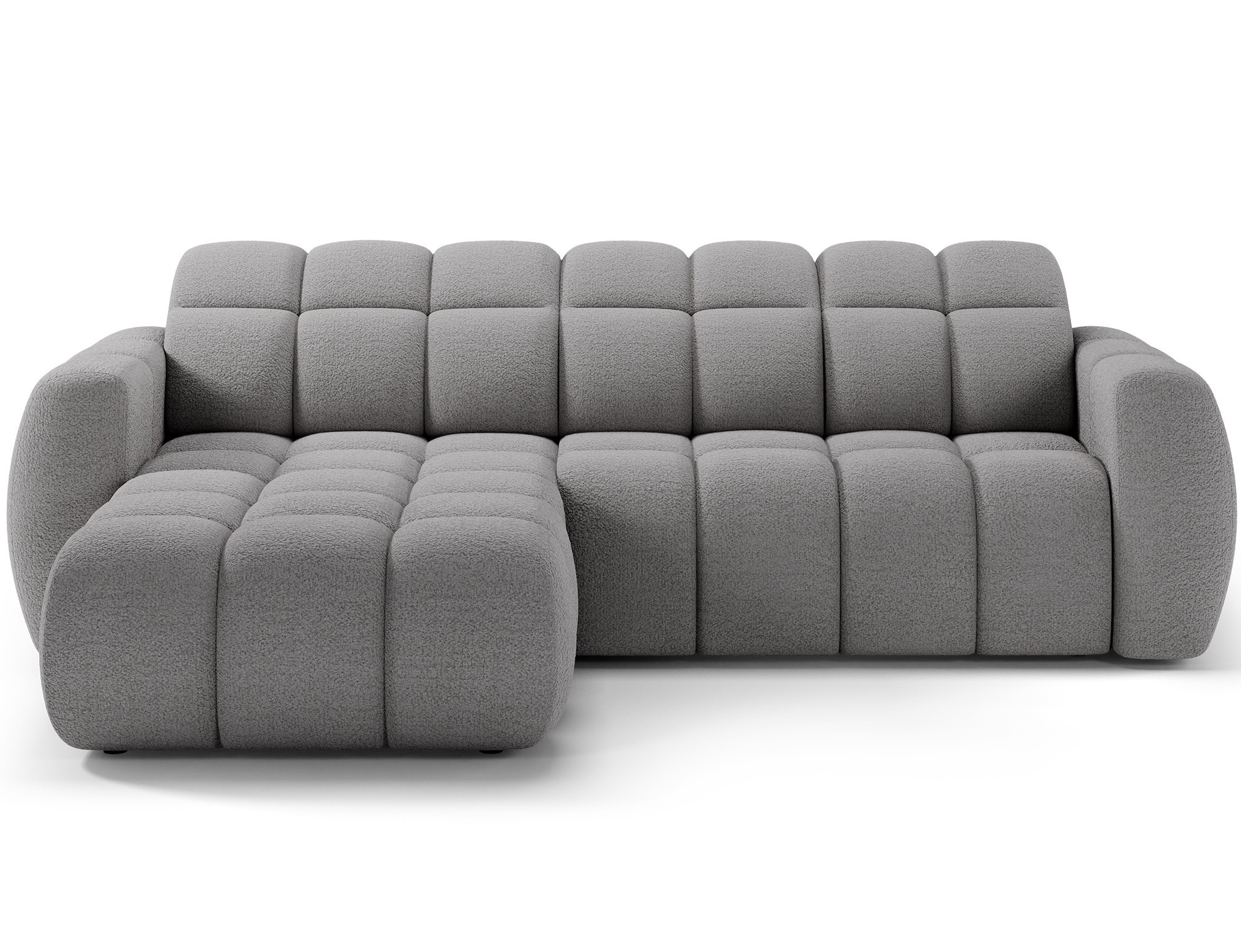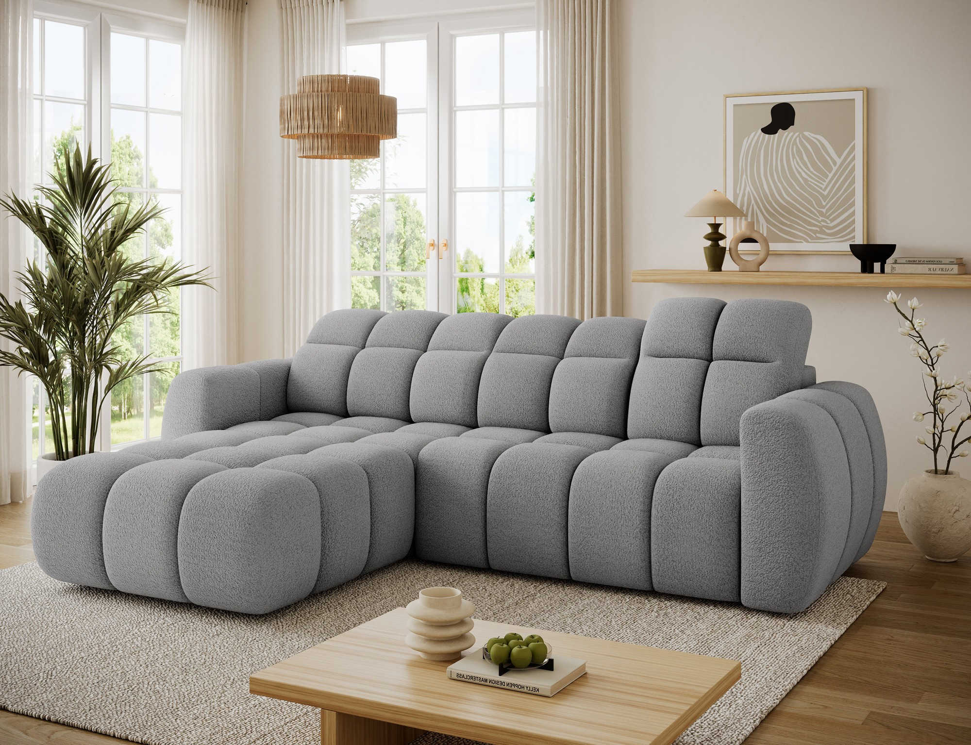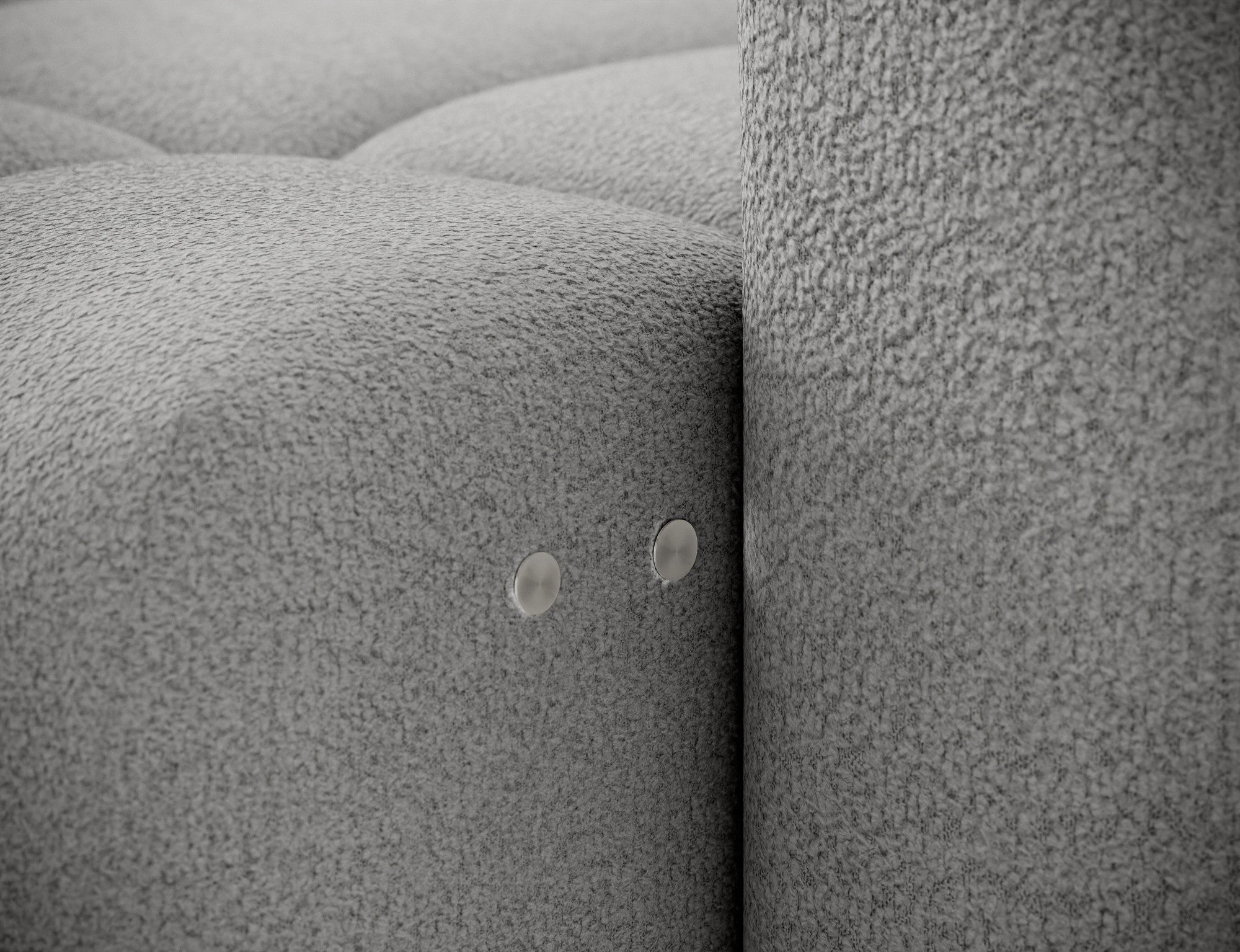 The Fanito corner sofa is a modern, spacious L-shaped sectional designed for the living room, distinguished by its solid, rounded silhouette, deep seat, and segmented tufting that highlights its designer yet cozy character—perfect for a home relaxation zone. The model measures 288 × 200 × 105 cm and weighs 130.6 kg, ensuring stability and everyday comfort. The seat filling combines Type B wave springs, HR3030 high-resilience foam, and 150 g/m² quilted wadding, providing elasticity, comfort, and resistance to sagging, while the backrest is reinforced with upholstery straps and profiled T2316 polyurethane foam for ergonomic back support. As a sleeper sectional, it offers a practical sleeping area of 85 × 232 × 47 cm, and the electric seat extension (actuator) of 28 cm lets you enlarge the lounging surface quickly and effortlessly. Additionally, the headrest mechanism with a return spring allows convenient adjustment of head support, making the Fanito corner sofa an excellent choice for anyone seeking a comfortable pull-out sectional that blends style, functionality, and high build quality.