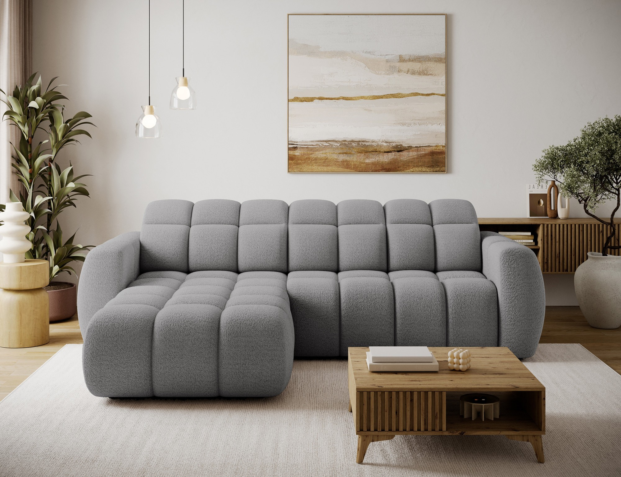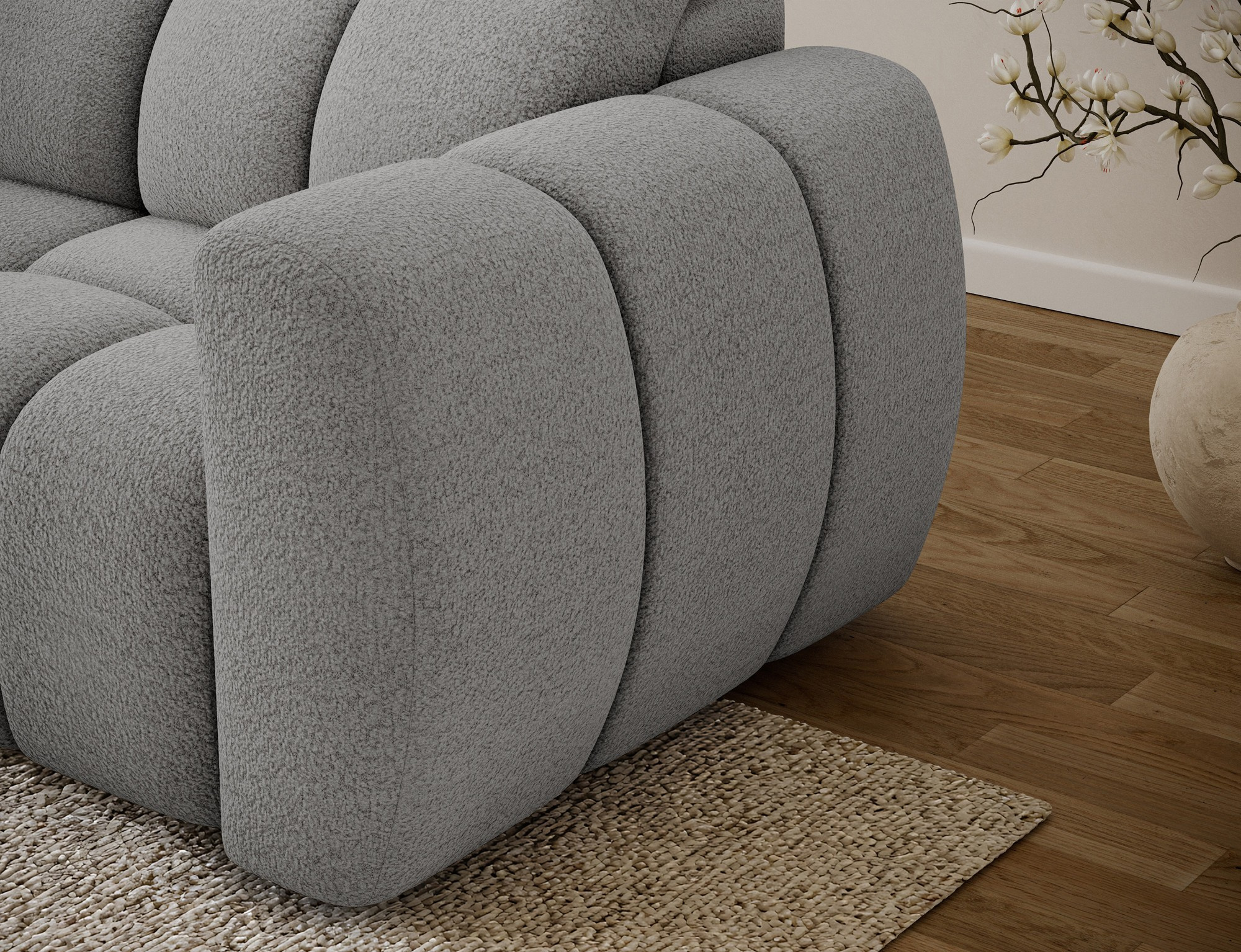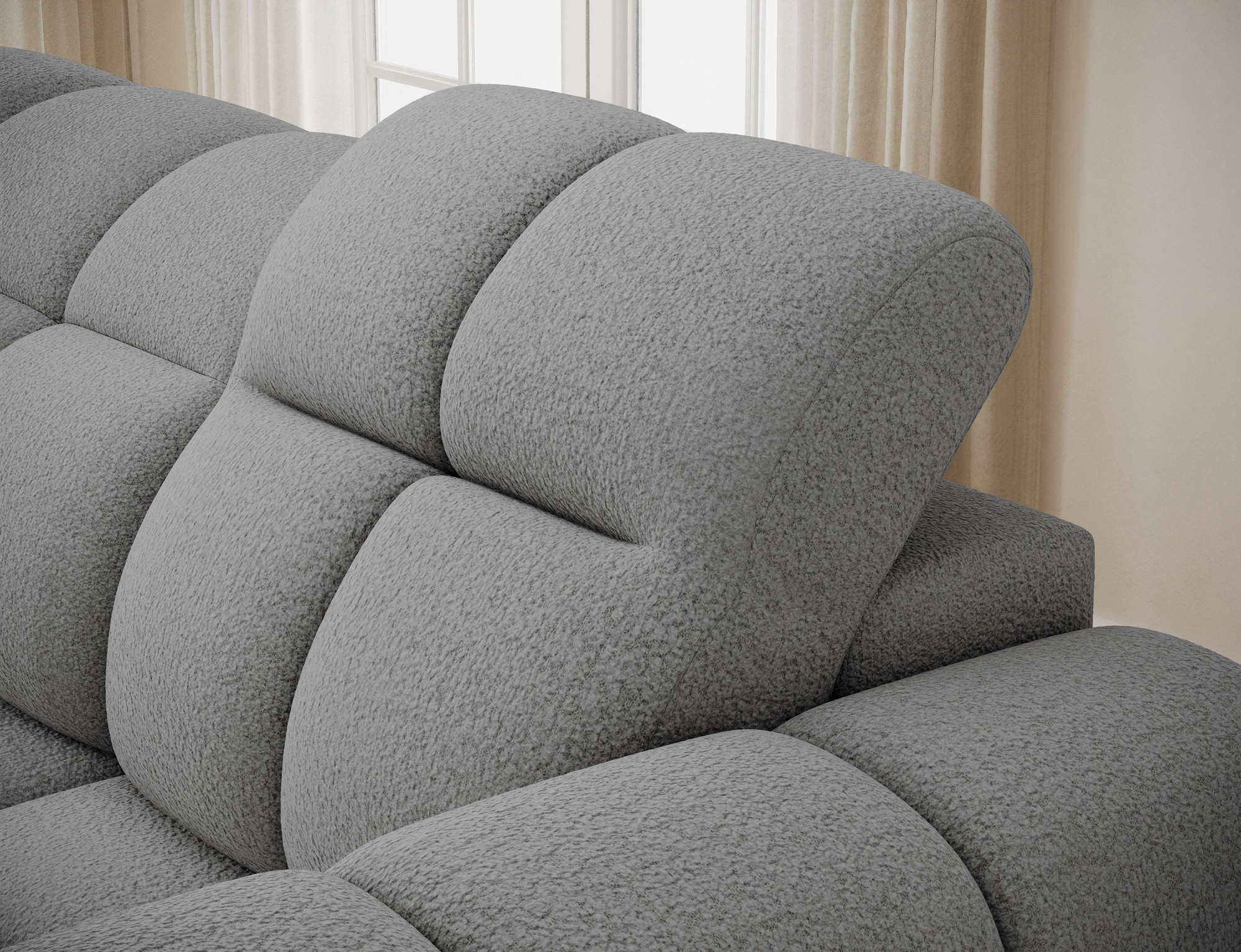 The Fanito corner sofa is a modern, spacious L-shaped sectional designed for the living room, distinguished by its solid, rounded silhouette, deep seat, and segmented tufting that highlights its designer yet cozy character—perfect for a home relaxation zone. The model measures 288 × 200 × 105 cm and weighs 130.6 kg, ensuring stability and everyday comfort. The seat filling combines Type B wave springs, HR3030 high-resilience foam, and 150 g/m² quilted wadding, providing elasticity, comfort, and resistance to sagging, while the backrest is reinforced with upholstery straps and profiled T2316 polyurethane foam for ergonomic back support. As a sleeper sectional, it offers a practical sleeping area of 85 × 232 × 47 cm, and the electric seat extension (actuator) of 28 cm lets you enlarge the lounging surface quickly and effortlessly. Additionally, the headrest mechanism with a return spring allows convenient adjustment of head support, making the Fanito corner sofa an excellent choice for anyone seeking a comfortable pull-out sectional that blends style, functionality, and high build quality.