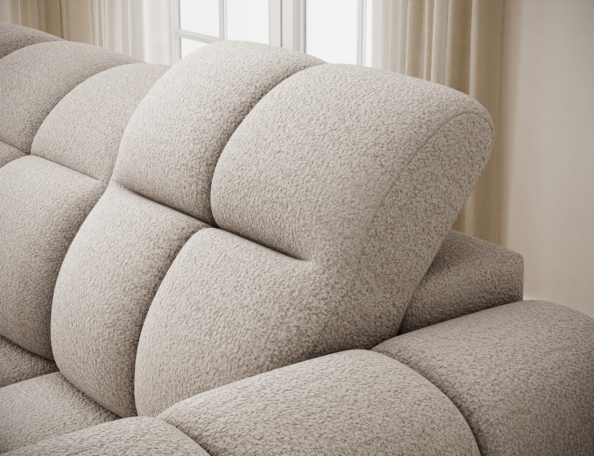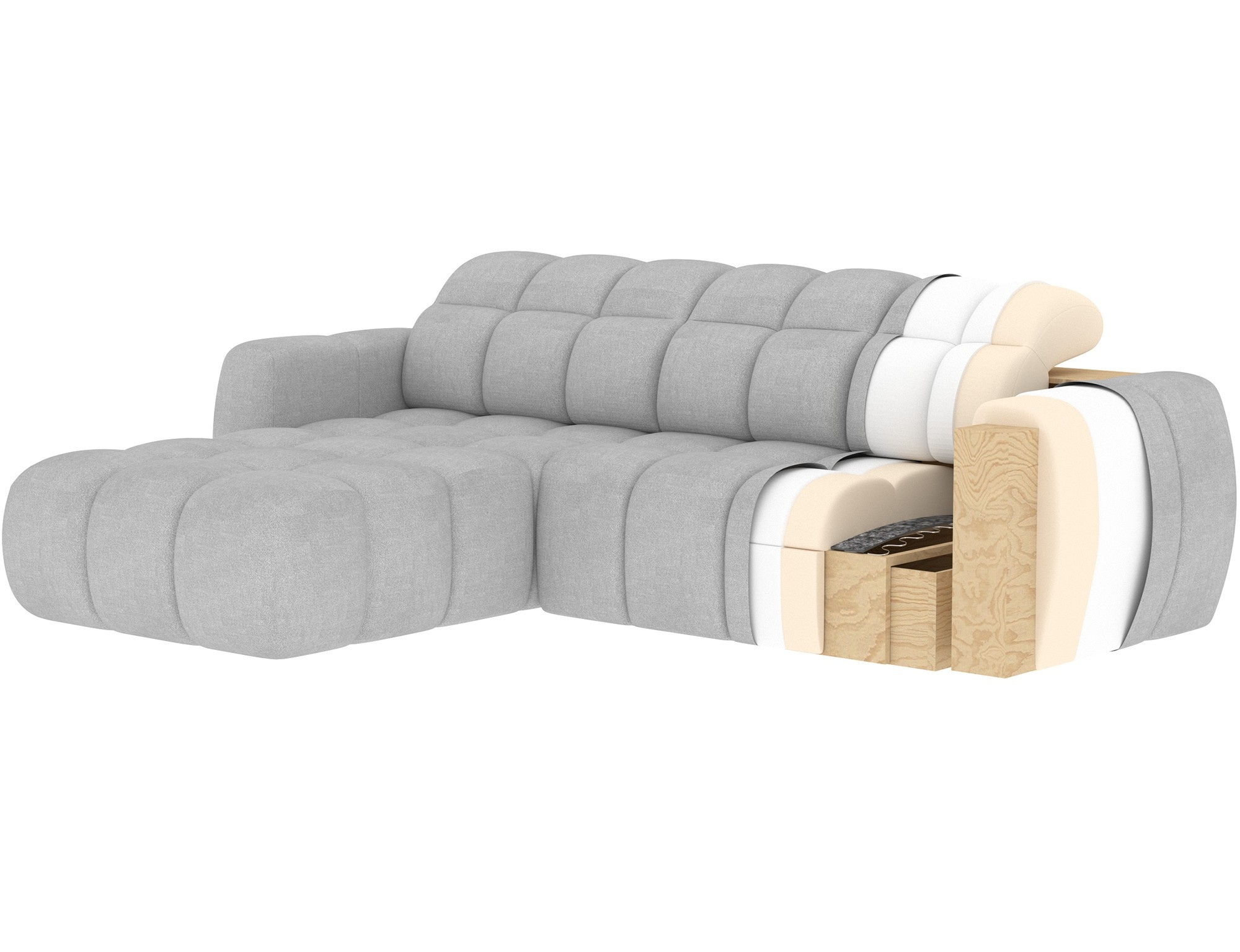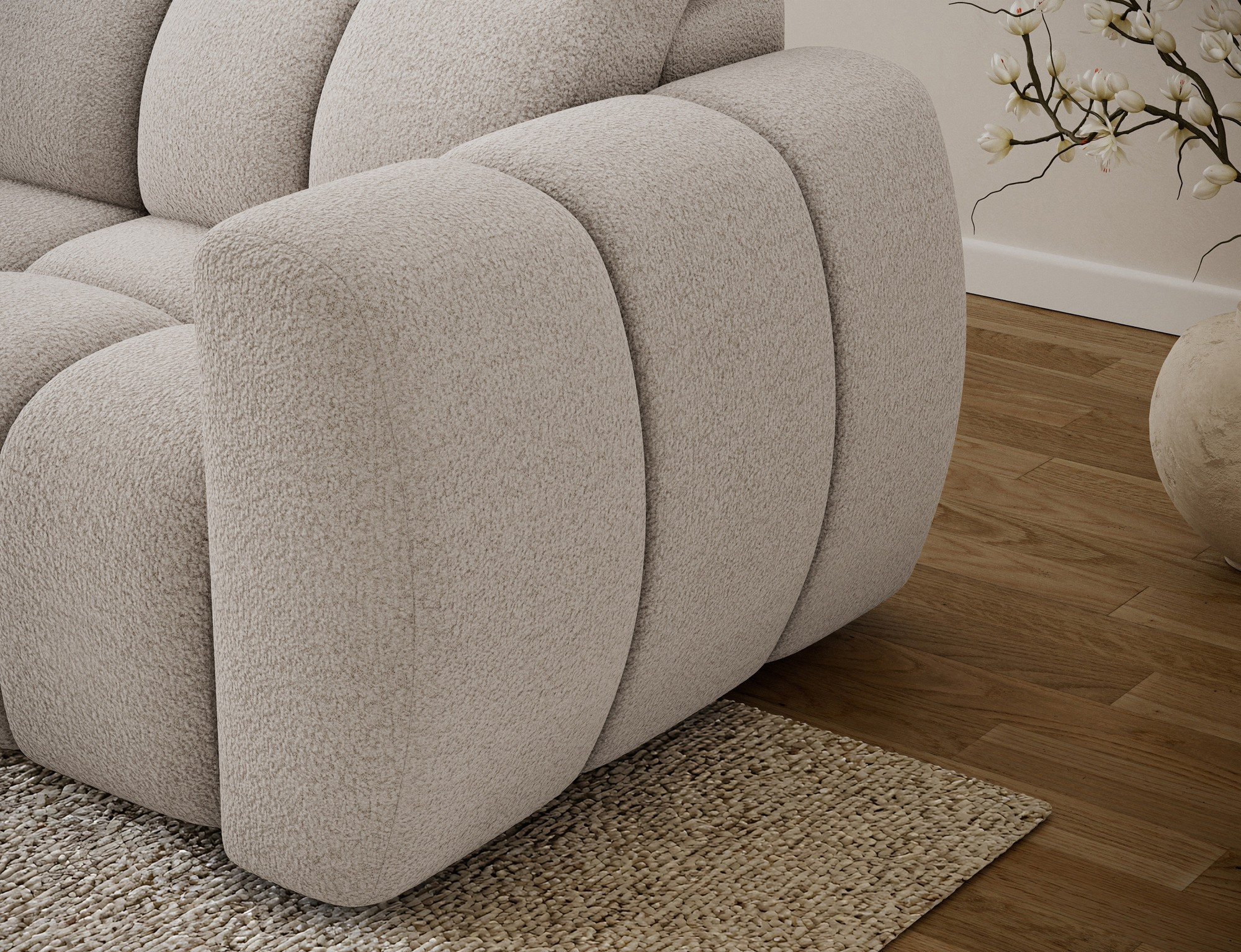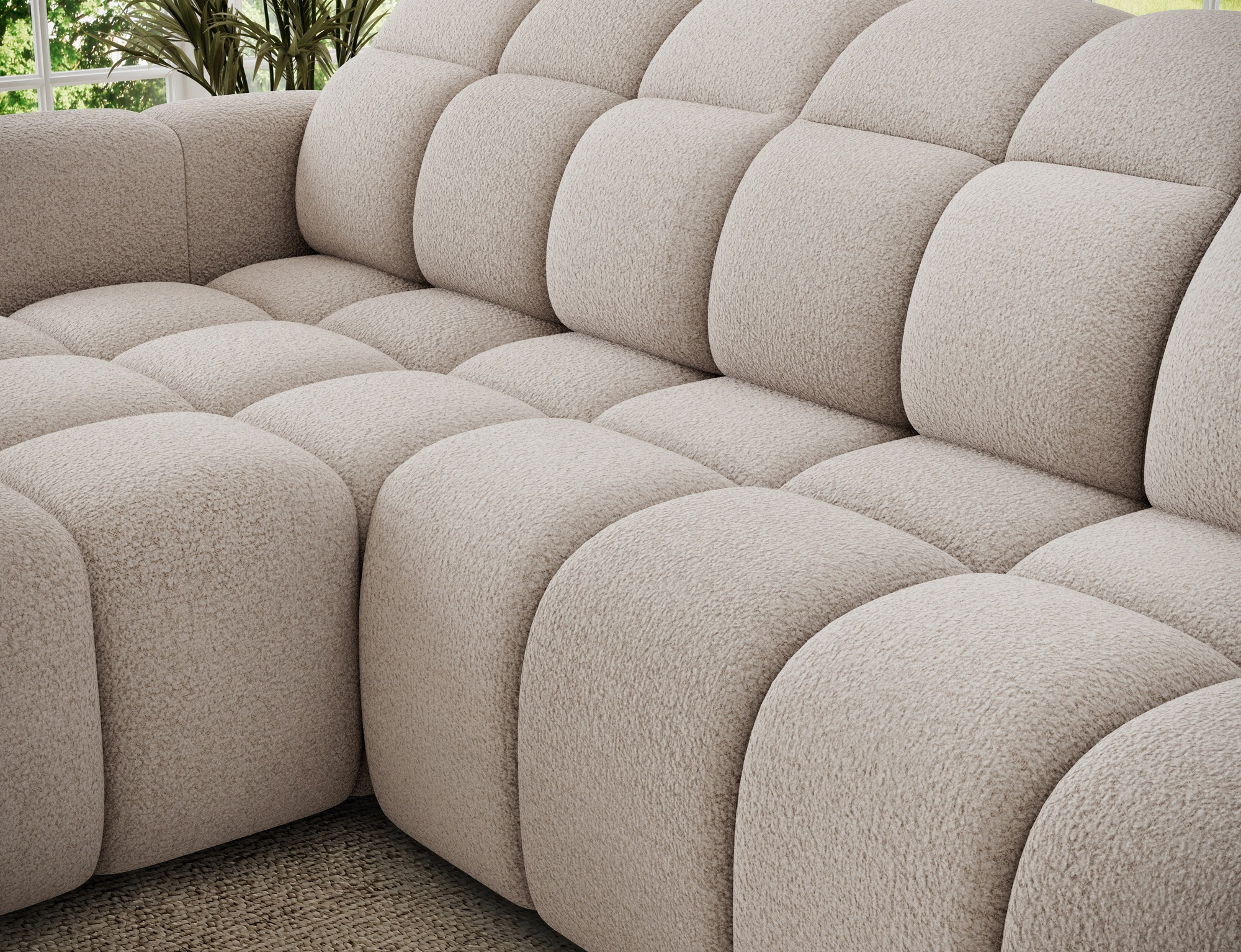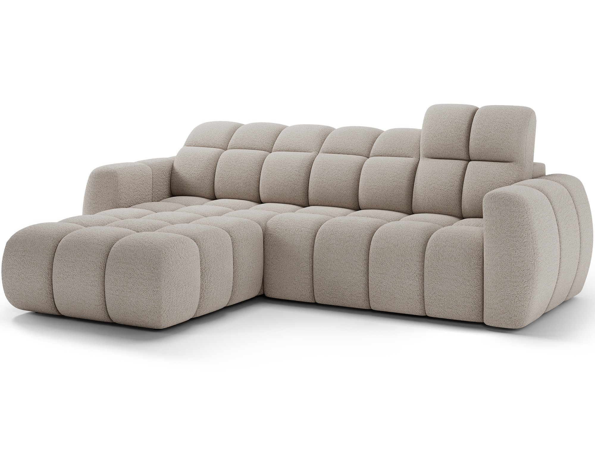 The Fanito corner sofa is a modern, spacious L-shaped sectional designed for the living room, distinguished by its solid, rounded silhouette, deep seat, and segmented tufting that highlights its designer yet cozy character—perfect for a home relaxation zone. The model measures 288 × 200 × 105 cm and weighs 130.6 kg, ensuring stability and everyday comfort. The seat filling combines Type B wave springs, HR3030 high-resilience foam, and 150 g/m² quilted wadding, providing elasticity, comfort, and resistance to sagging, while the backrest is reinforced with upholstery straps and profiled T2316 polyurethane foam for ergonomic back support. As a sleeper sectional, it offers a practical sleeping area of 85 × 232 × 47 cm, and the electric seat extension (actuator) of 28 cm lets you enlarge the lounging surface quickly and effortlessly. Additionally, the headrest mechanism with a return spring allows convenient adjustment of head support, making the Fanito corner sofa an excellent choice for anyone seeking a comfortable pull-out sectional that blends style, functionality, and high build quality.