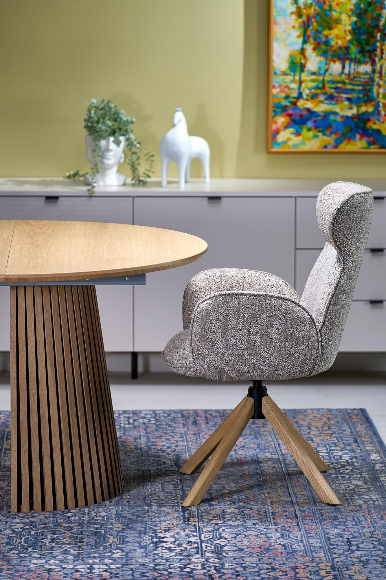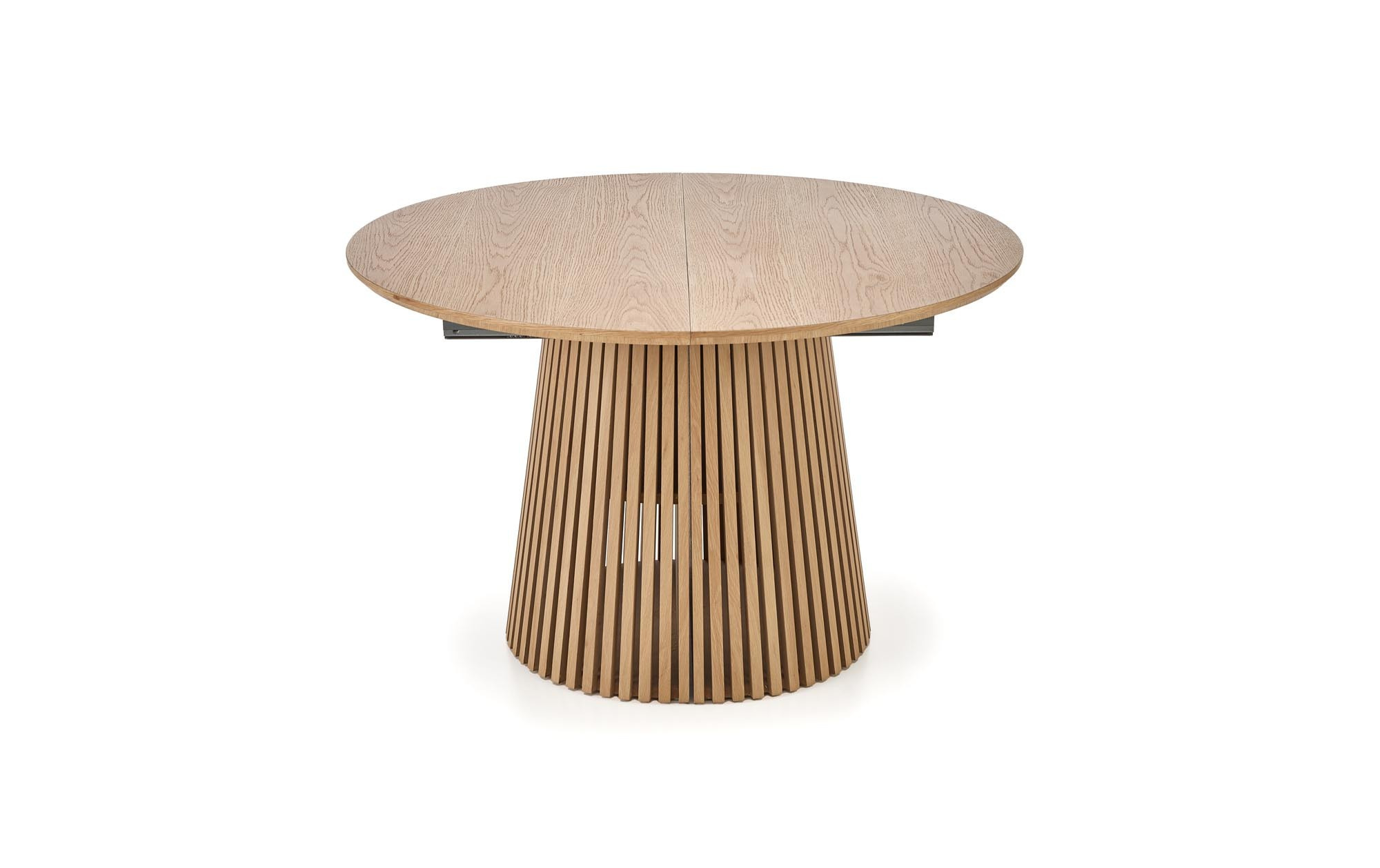 méretek: 120-210/120/77 cm, kihúzható asztal, anyag: MDF + természetes furnér / MDF furnérozott, szín: lap - természetes, lábak - természetes