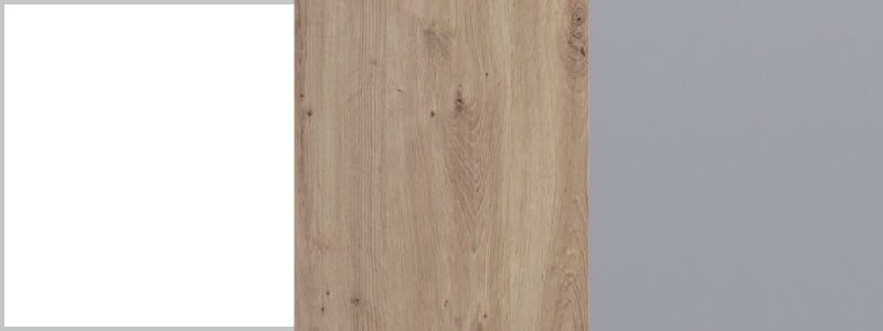 A FARO rendszerből származó ruhásszekrény Fehér Lux/Tölgy Artisan/Szürke színben készül.