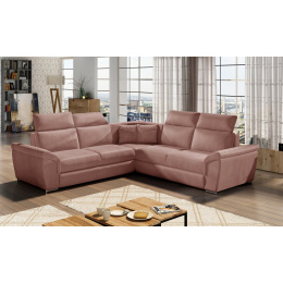 Federico is a classic symmetrical, yet distinctive and functional living room ornament. The simple form is broken with modern elements in the form of wide, slanted armrests, high backrests equipped with four adjustable headrests and decorative pillows. The dimensions of the corner sofa 268 x 268 x 102 cm provide ample space for relaxation at any time of the day or night. This piece of furniture is equipped with a 120 x 200 cm sleeping function, as well as a roomy and deep bedding storage located in the ottoman. Thanks to the dolphin-type unfolding function, adjusting the furniture to your current needs is intuitive and convenient.The seat of the furniture is made of corrugated spring and T30 foam - such a combination provides softness, flexibility and adequate support for the body during rest. Federico corner sofa is a suitable choice for any living room, where order, versatility and at the same time elegant finish of individual elements are important. We guarantee that Federico will meet all your requirements.