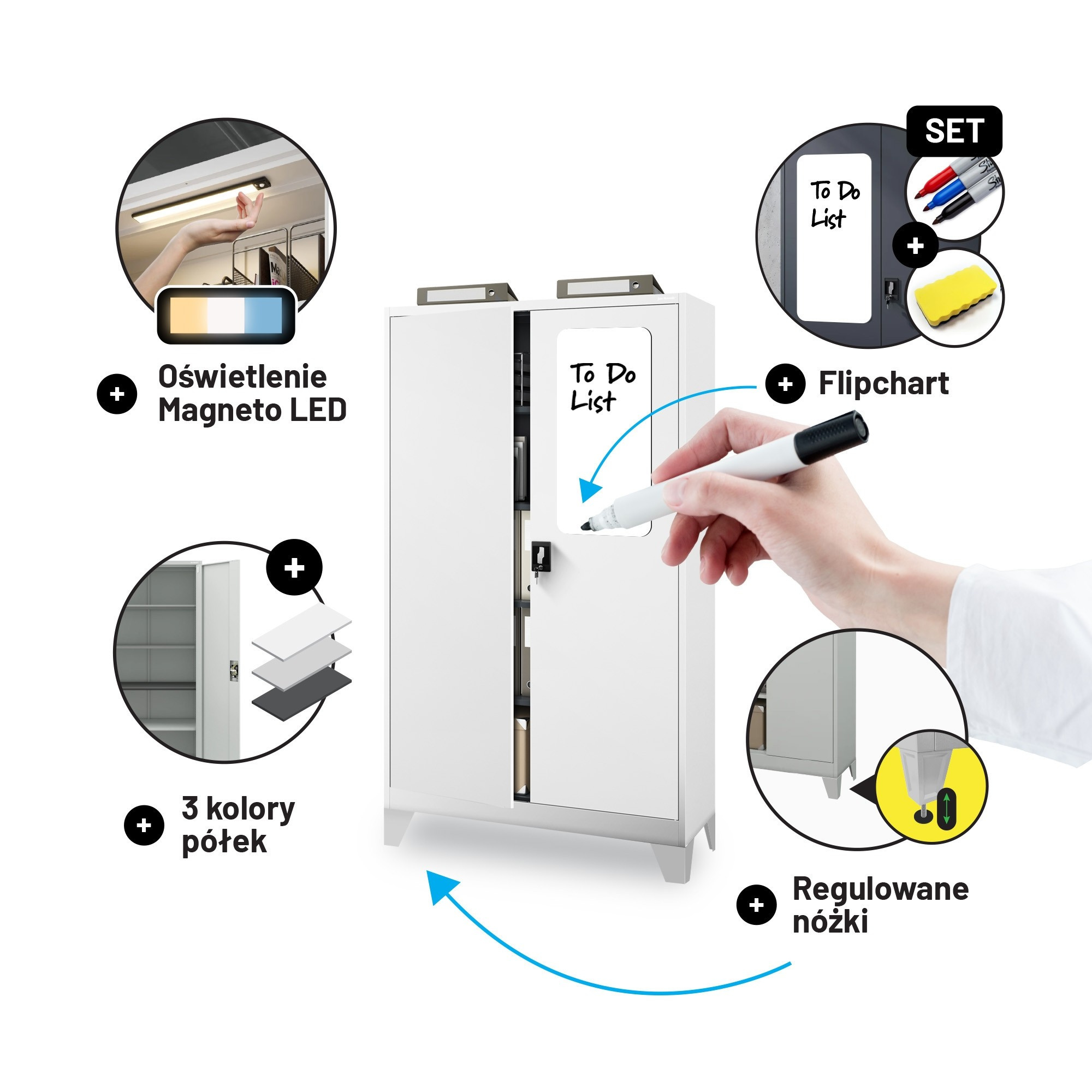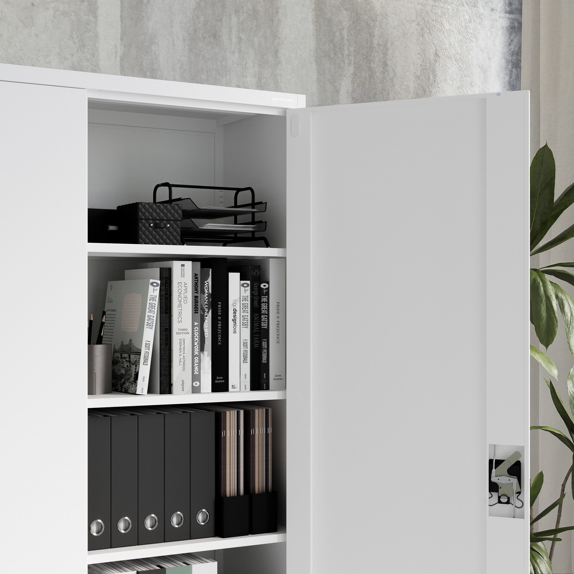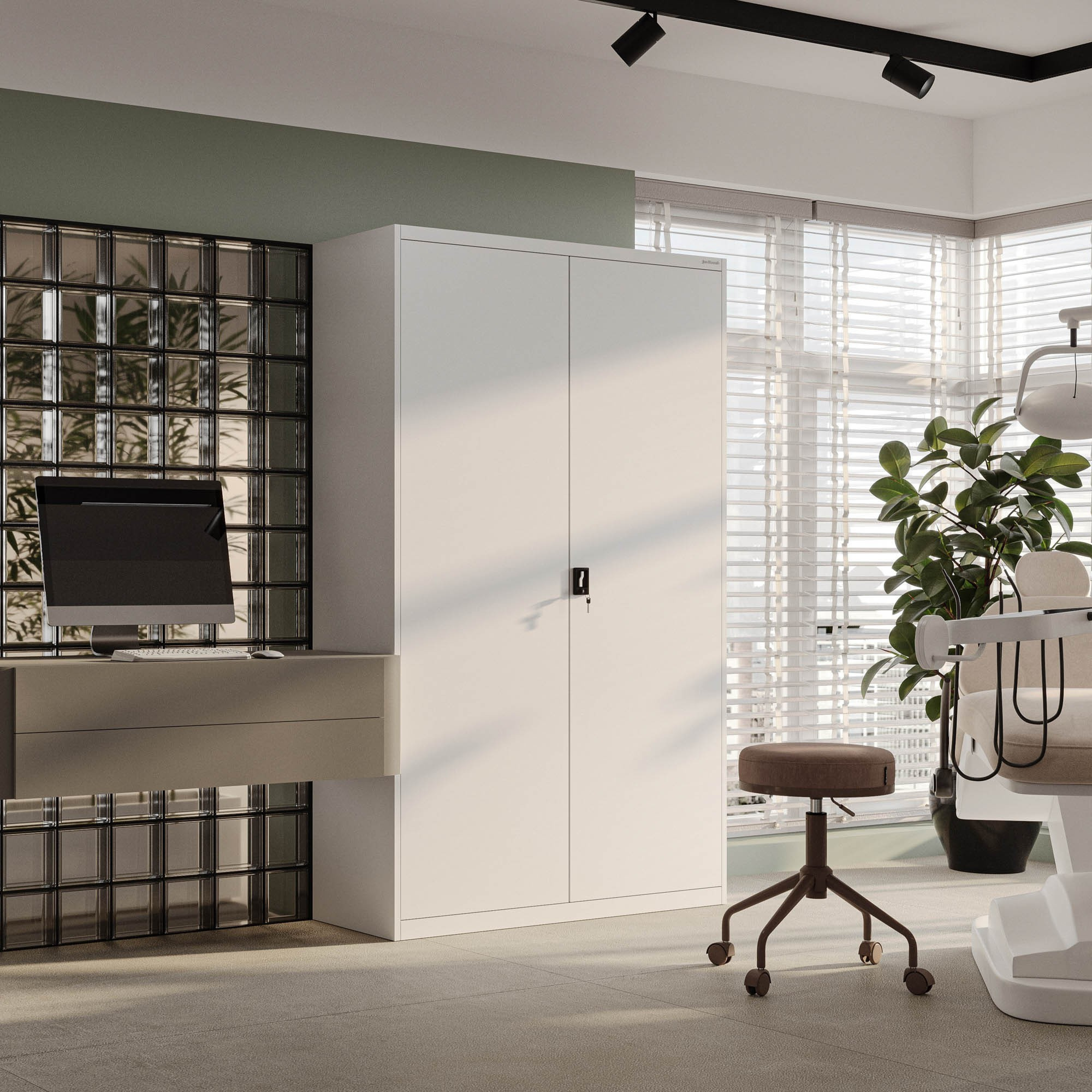 A beállítható polcoknak köszönhetően a szekrény belső terét pontosan az igényeid szerint alakíthatod. Akár nagy iratgyűjtőket, kis szerszámos dobozokat vagy terjedelmes orvosi eszközöket kell tárolnia, a JAN II szekrény mindig alkalmazkodik Önhöz.