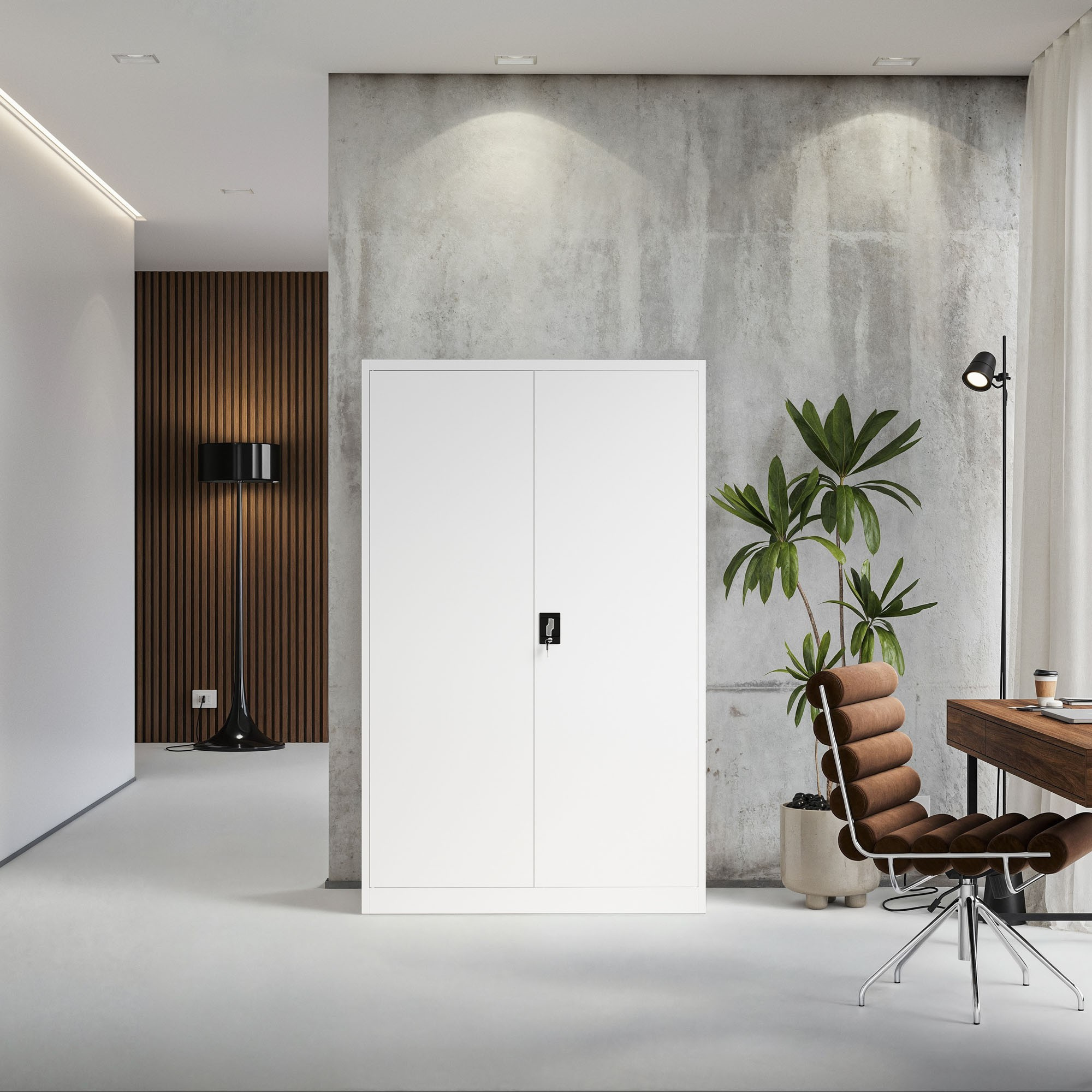 - Biztonságos Zárás: A kétszárnyú ajtók hárompontos zárral védik a szekrény tartalmát az illetéktelen hozzáféréstől. A csomag tartalmaz 2 kulcsot.