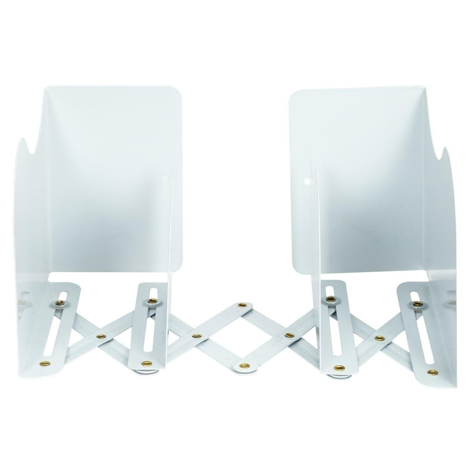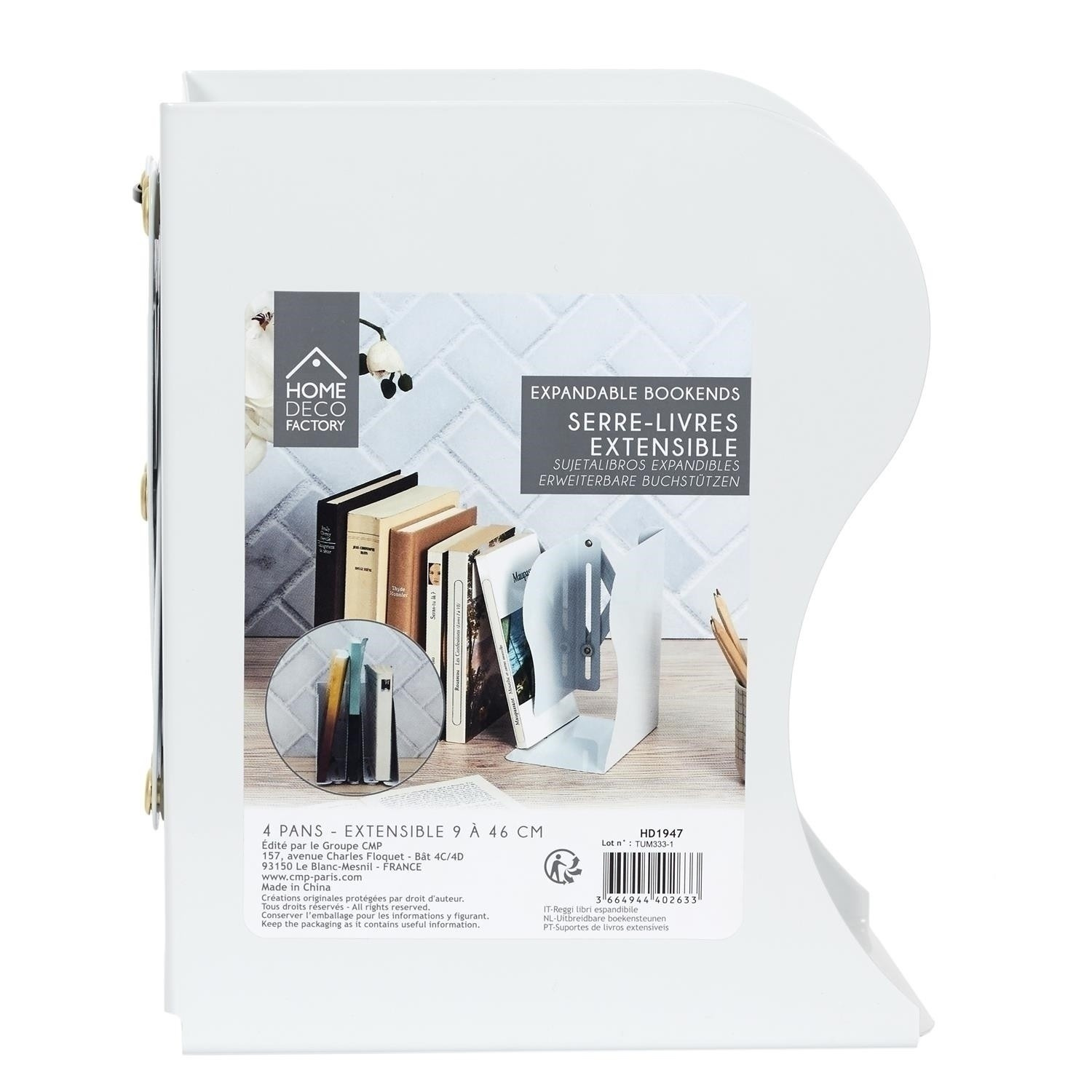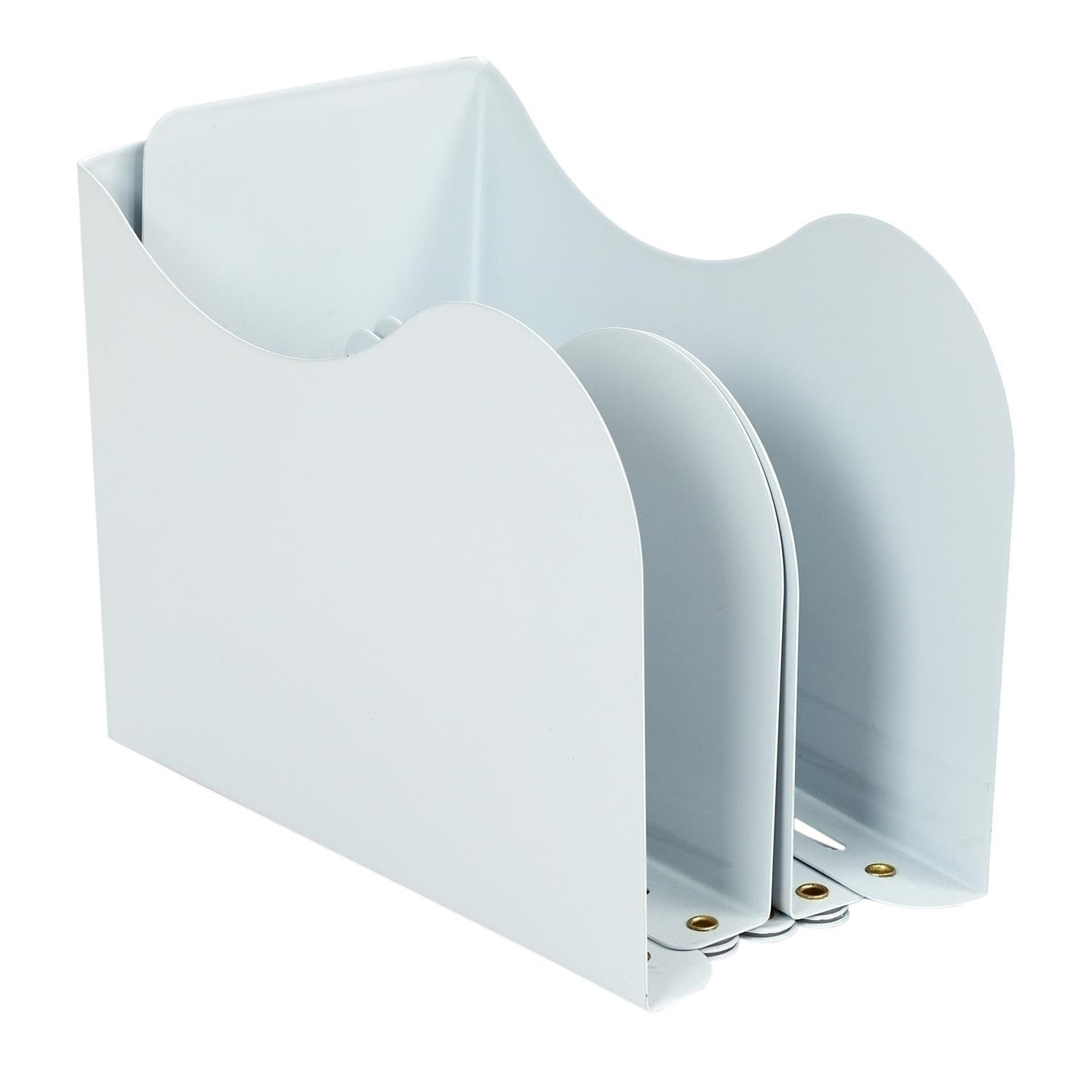 Univerzális szervező állítható szélességgel, amely jól beválik az irodában iratrendezők vagy könyvek tárolására, vagy az otthoni könyvtárban. A rendező két fallal és további két rekesszel van felszerelve, amelyek lehetővé teszik a könyvek vagy dossziék rendezését. Állítható szélességű rendező fehérre festett fémből készült. Összehajtott méretek: 10x15x19 cm Maximális szélesség: 46 cm Minimális szélesség: 10 cm Karton méretei: 24x33x42,5 cm. Max 8 db kartononként