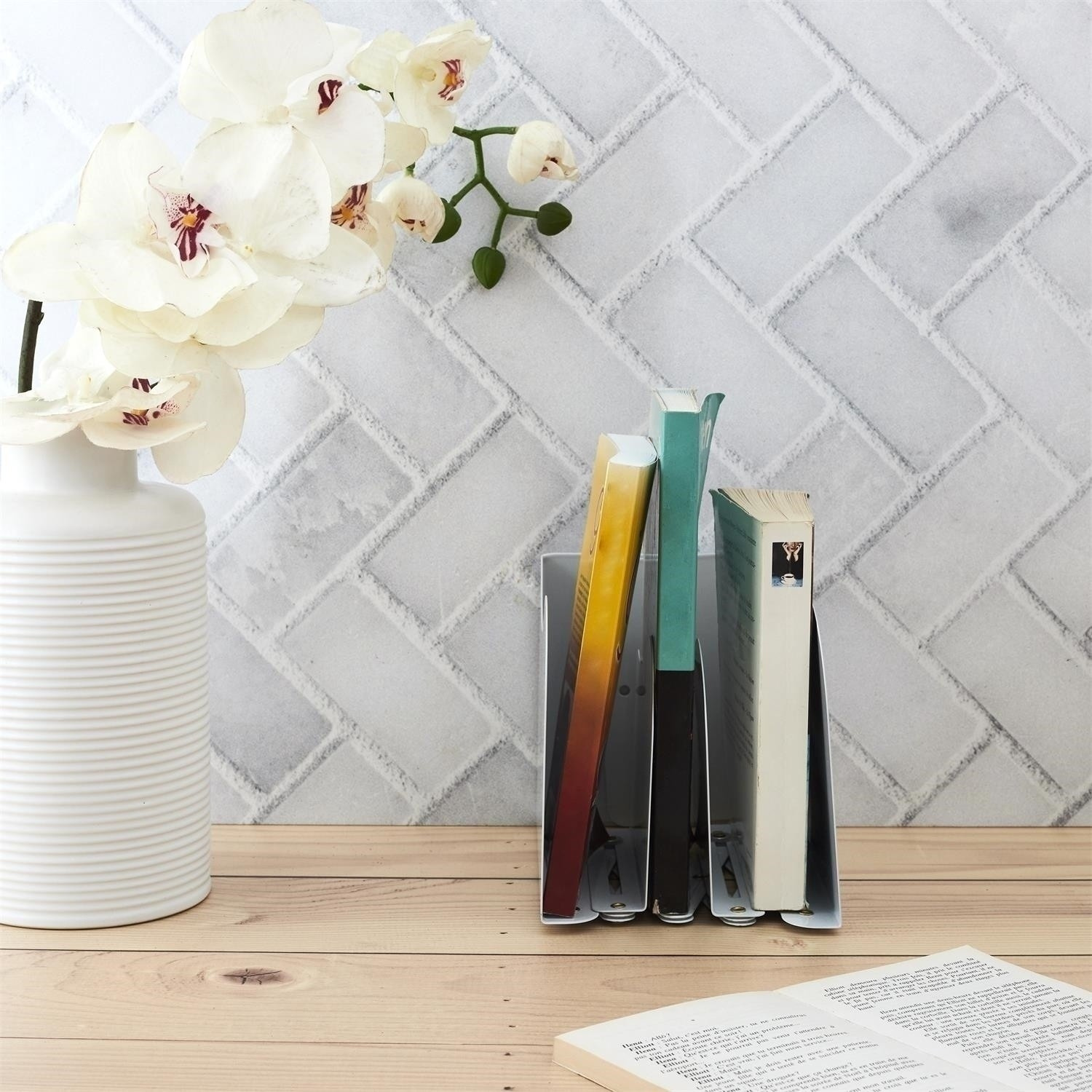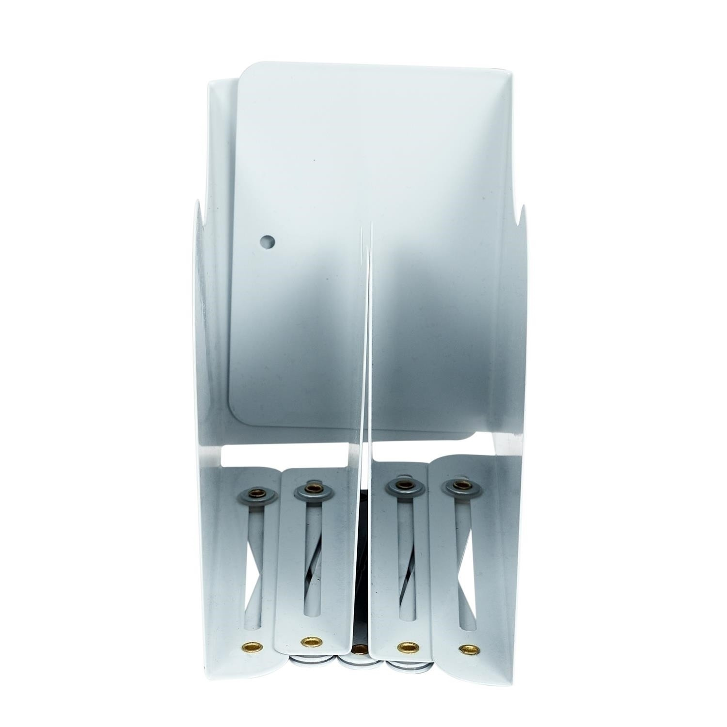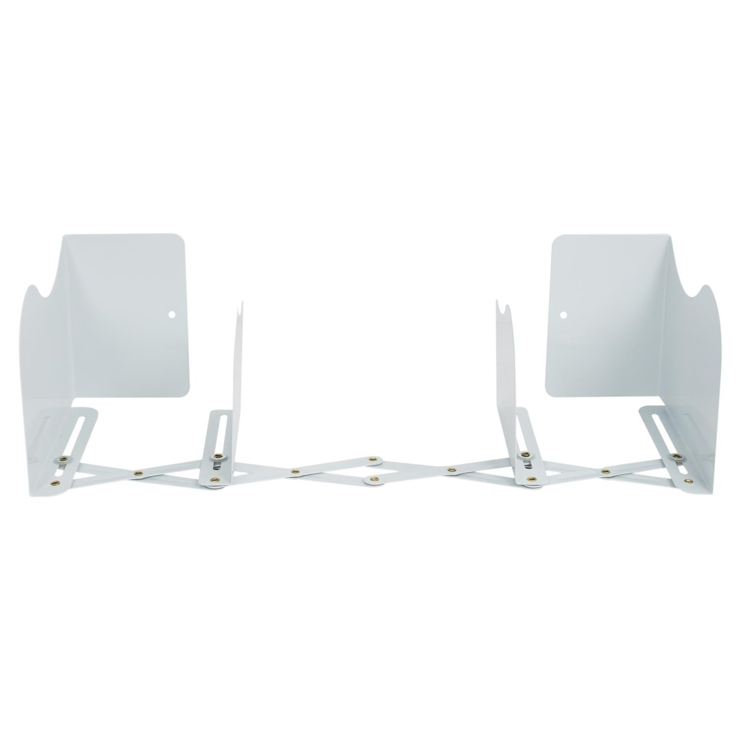 Univerzális szervező állítható szélességgel, amely jól beválik az irodában iratrendezők vagy könyvek tárolására, vagy az otthoni könyvtárban. A rendező két fallal és további két rekesszel van felszerelve, amelyek lehetővé teszik a könyvek vagy dossziék rendezését. Állítható szélességű rendező fehérre festett fémből készült. Összehajtott méretek: 10x15x19 cm Maximális szélesség: 46 cm Minimális szélesség: 10 cm Karton méretei: 24x33x42,5 cm. Max 8 db kartononként