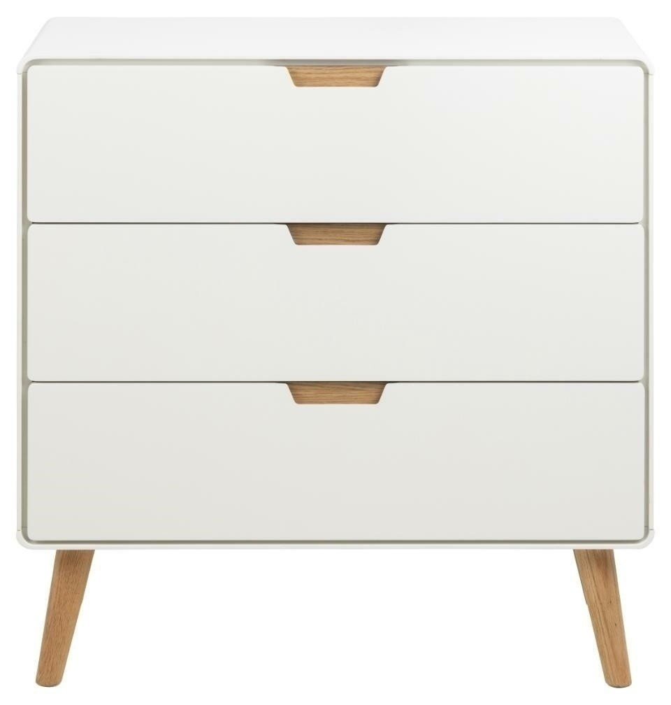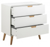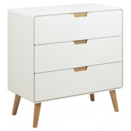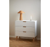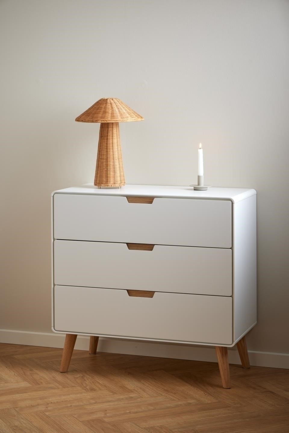 A tágas Lowell komód 3 fiókkal elegendő helyet biztosít ruhák, játékok és könyvek tárolására. A fehérre festett aljzat minimalista megjelenésének köszönhetően szinte bármelyik szobához illeszkedik. A tölgy részletek jól kiegészítik az összesített esztétikát. Ez egy tárolási megoldás, amely erőfeszítés nélkül ötvözi a funkcionalitást és a dizájnt. Három fiókkal van felszerelve, csendes záródással. Fehérre festett fiókok tölgyfogantyúkkal.Kúpos tölgy lábak. FSC tanúsítvány. Összeszerelést igényel A komód súlya: 34 kg. A korpus és a fiókok anyaga: MDF, Lábak anyaga: tölgyfa Lábak magassága: 17 cm Karton méretei: 93,5x47,5x19,8cm