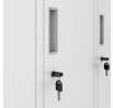 Az IGOR szekrény kiváló minőségű, 0,6 mm vastag acélból készült, ami garantálja a magas szilárdságot és ellenállást. A robusztus kialakítás ellenáll a megterhelő használatnak is, és biztosítja a bútor hosszú élettartamát. A szekrény felülete porfestékkel van kezelve, amely védi az acélt a sérülésektől, korróziótól és kopástól. Ennek köszönhetően az IGOR szekrény vonzó megjelenése még évek intenzív használata után is megmarad.