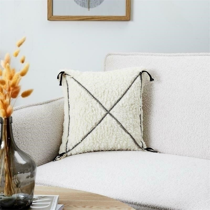 Fehér Sherpa párna fekete mintával