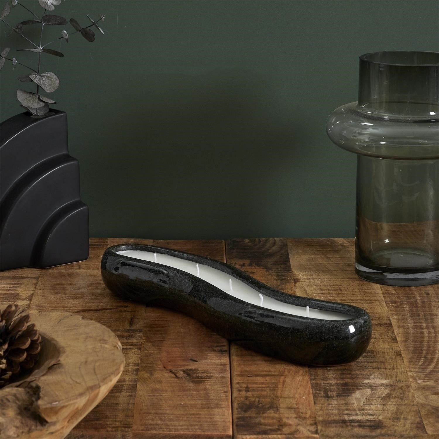 Fekete hosszúkás kerámia gyertya