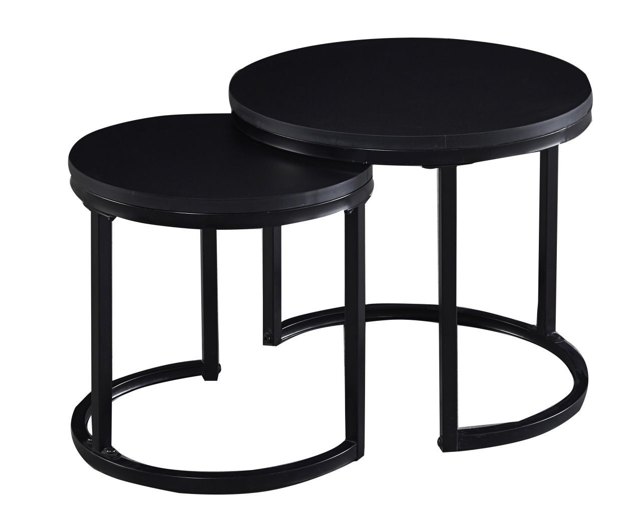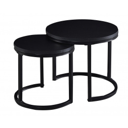 Méretek: *nagyobb asztal: - asztallap: átmérő 50x50 cm - magasság: 43 cm *kisebb asztal: - asztallap: átmérő 40x40 cm - magasság: 38 cm Anyag: - asztallap: furnér - lábak: porszórt acél Szín: - asztallap: fekete - szerkezet: fekete