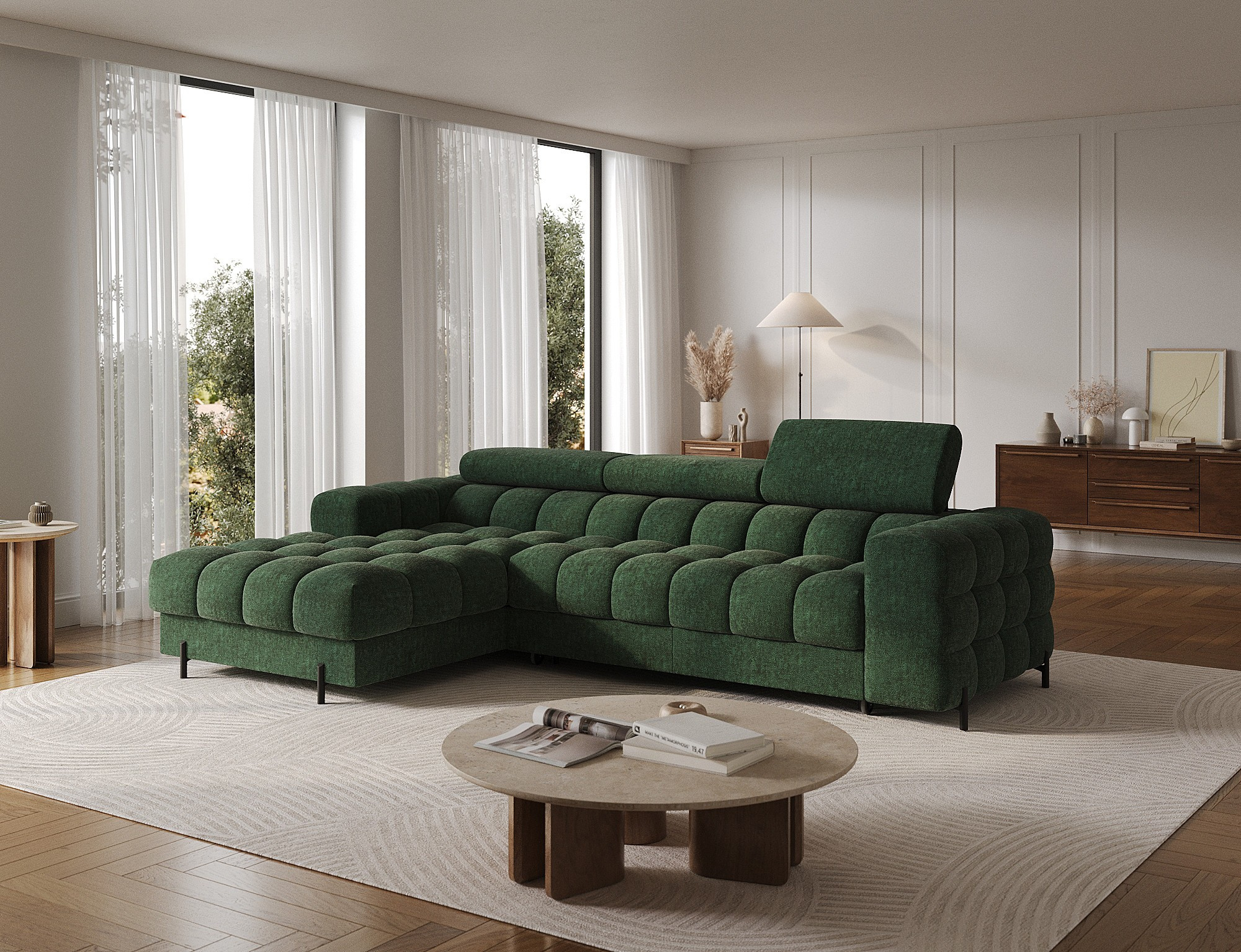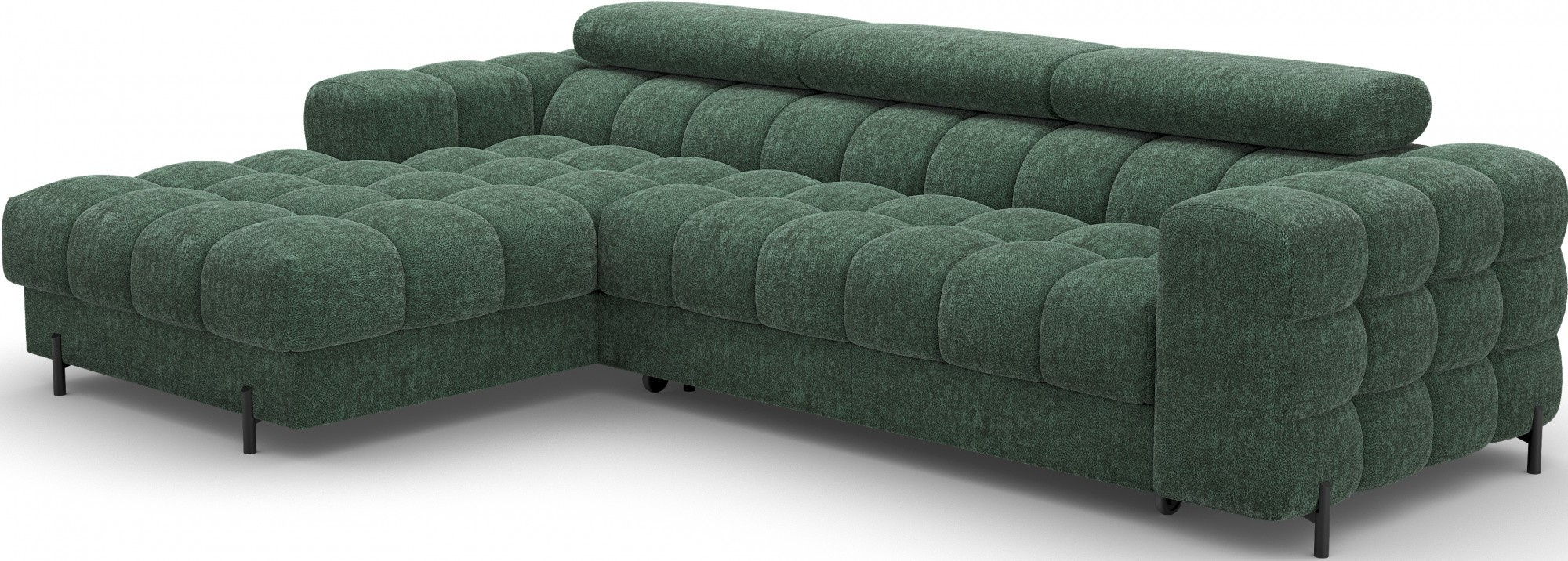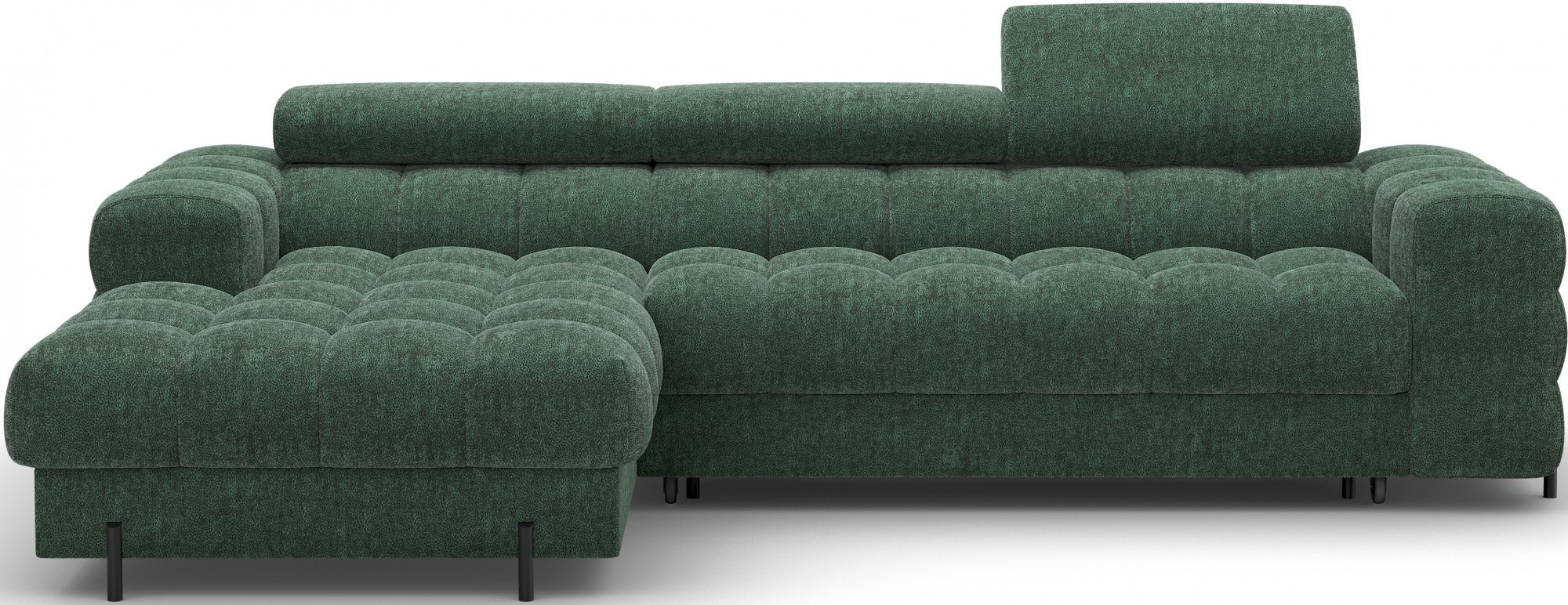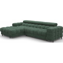 The Felro corner sofa is a combination of modern design, comfort, and functionality. The seat of the sofa is filled with B-type wave springs as well as high-quality T3030 and HR3030 foam, ensuring exceptional comfort for everyday use and relaxation. This makes the furniture not only soft and flexible but also resistant to deformation, guaranteeing long-lasting durability.The sturdy construction is supported by metal legs, powder-coated in black, adding an elegant and modern touch to the overall design. Felro also features a sleeping function, making it a perfect choice for a living room where both style and practicality matter. The "Dolphin" unfolding mechanism allows for an easy and quick transformation of the sofa into a comfortable sleeping space.An additional advantage is the upholstered back, ensuring that the sofa looks great from every angle and can be placed either against a wall or in the center of the room. The entire design follows a modern style, making Felro a perfect fit for contemporary interiors, adding both elegance and functionality.
