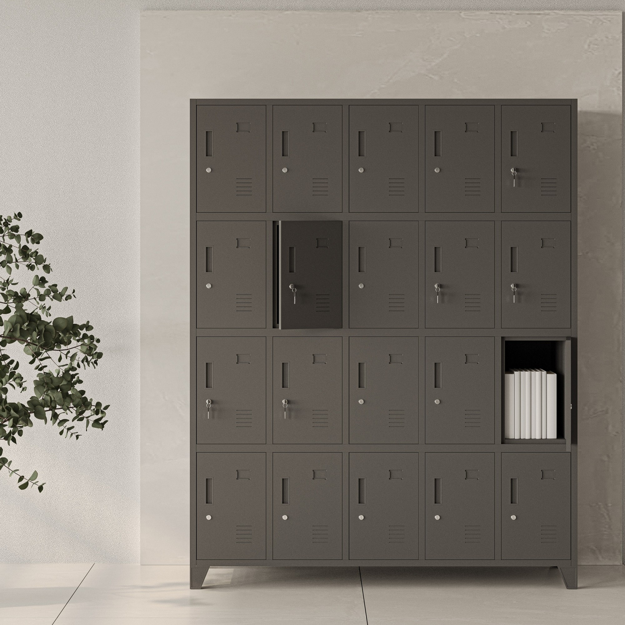 Megbízható és elegáns megoldást keres személyes tárgyak tárolására cégnél, iskolában, sportközpontban vagy más nyilvános helyen? A ROBERT fém szekrény 20 rekesszel ideális választás. Kombinálja a robusztus szerkezetet, a praktikus kialakítást és a modern megjelenést, amely minden belső térbe illik.