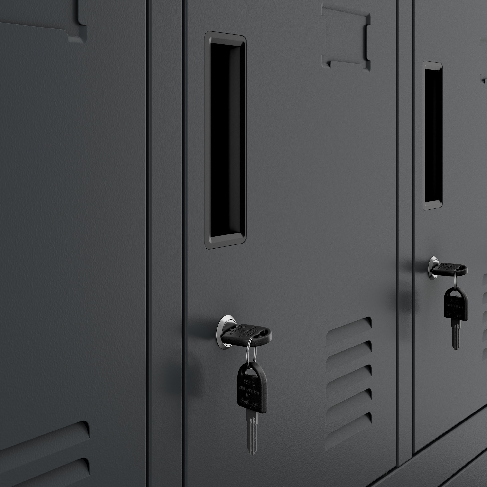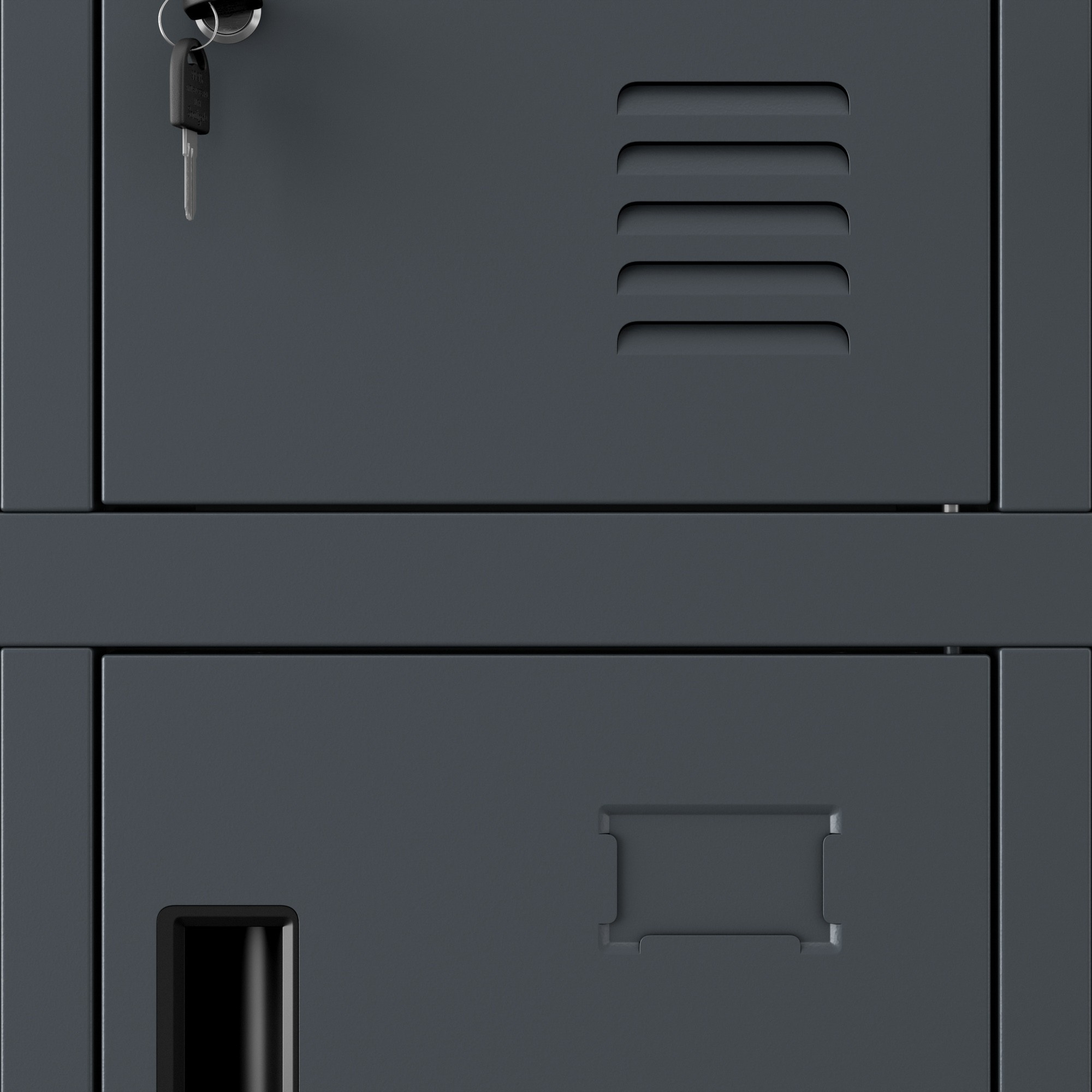 - Biztonság: Minden rekesz kiváló minőségű zárral van felszerelve, amelyhez két kulcs tartozik, így védve a tárolt tárgyakat az illetéktelen hozzáféréstől. A megerősített elülső felületek növelik a szekrény általános biztonságát.