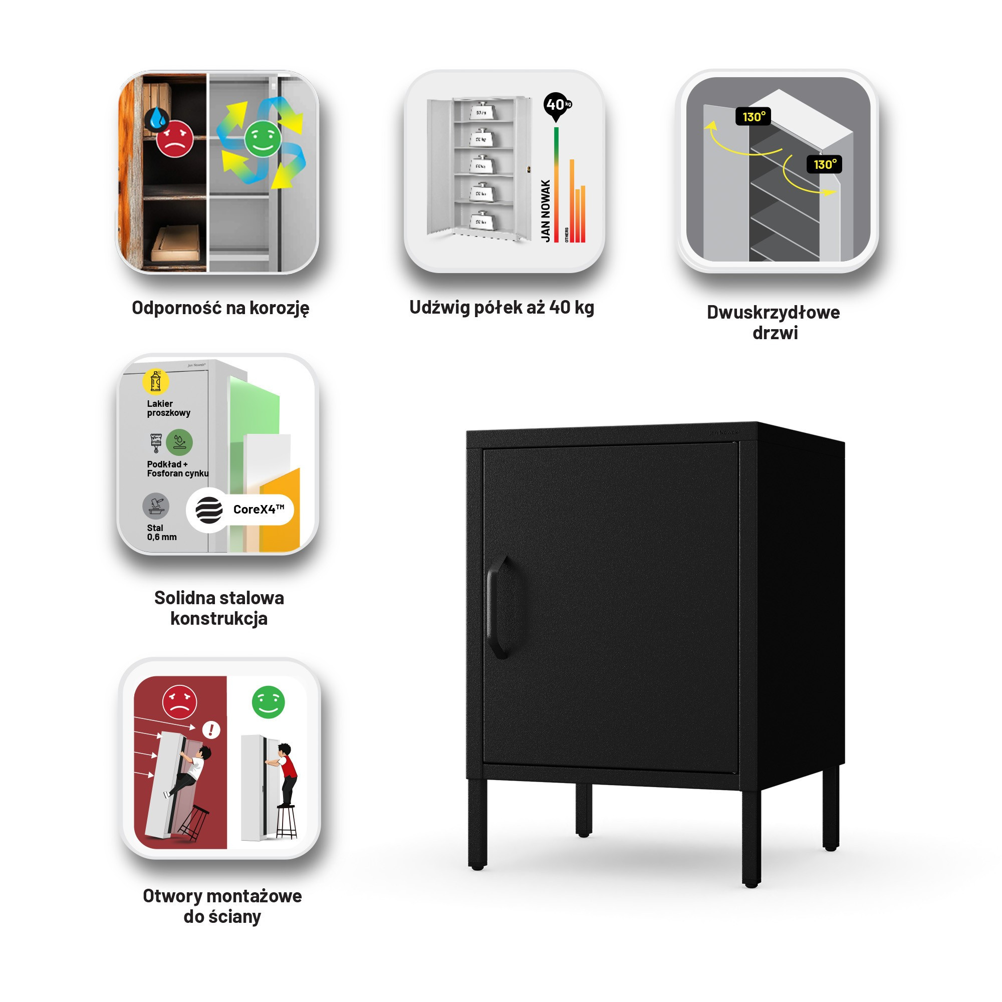 Fém fekete éjjeliszekrény Modern MIA X 424 x 595 x 400 mm