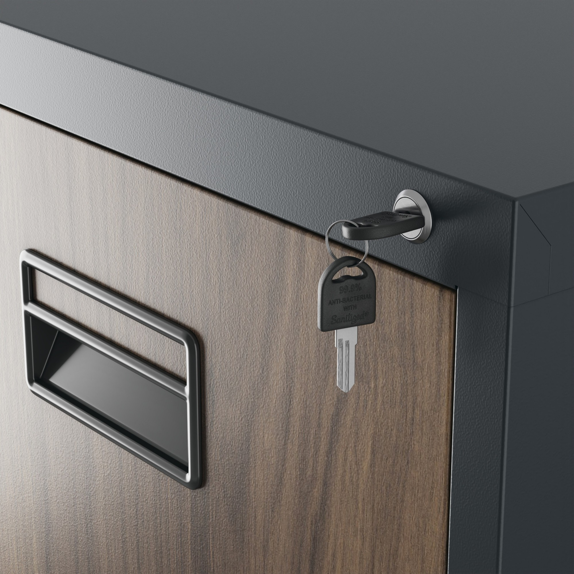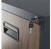 - Tágas és praktikus fiókok: Négy tágas fiók elegendő helyet biztosít nagy mennyiségű dokumentum tárolására. A fiókok minden ajtaján található névjegykártyák megkönnyítik a szervezést és a szükséges információk gyors megtalálását.