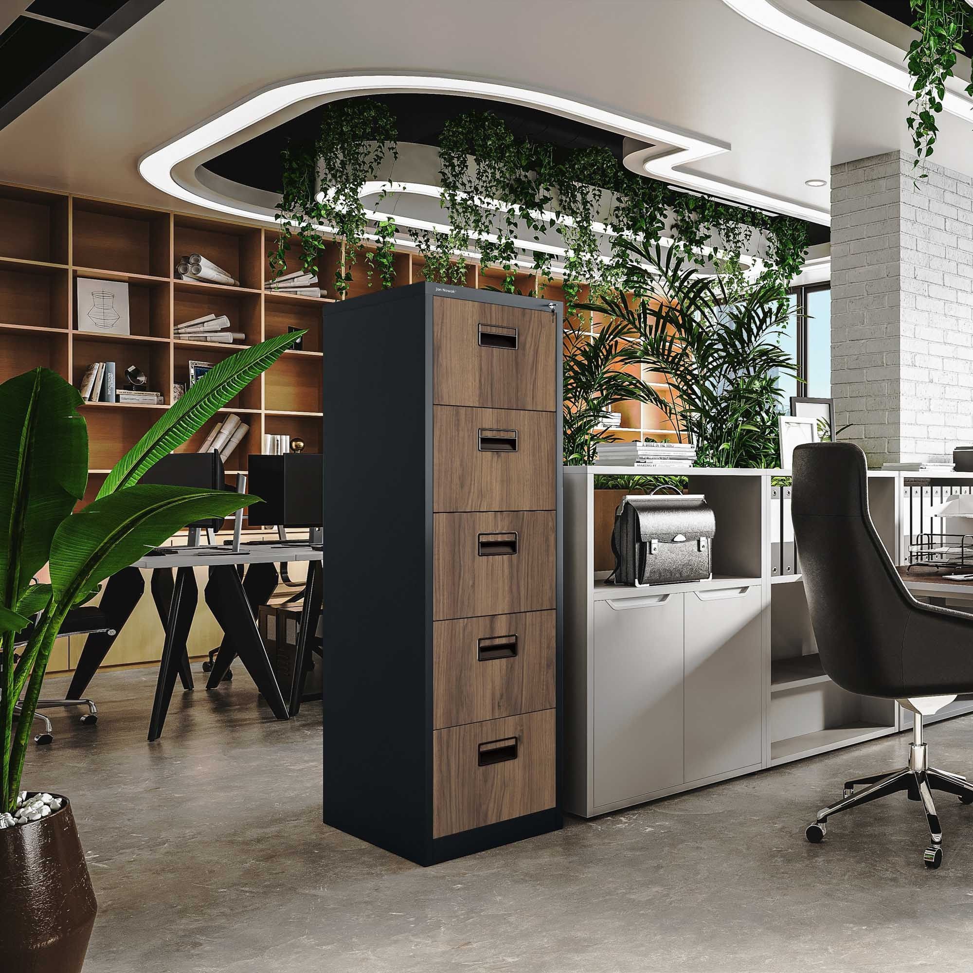 Fém iratszekrény SARA V5, 460 x 1630 x 620 mm, Eco Design: antracit/dió