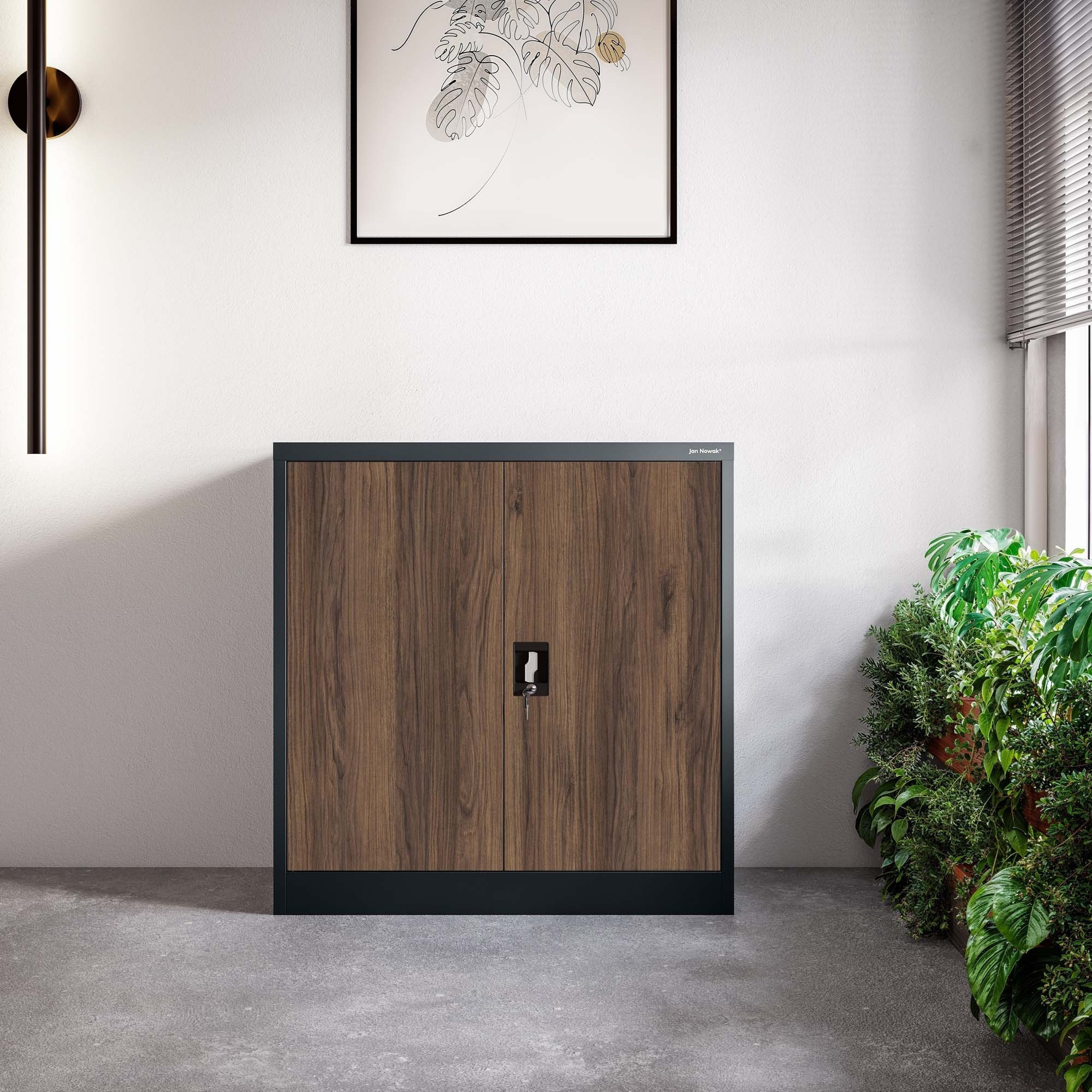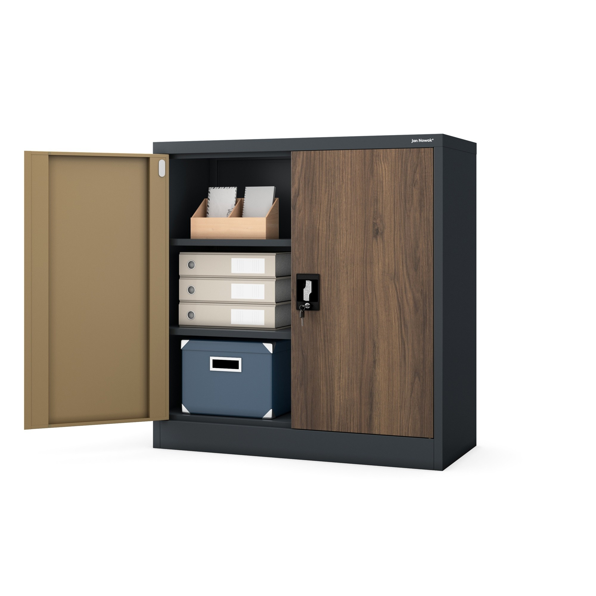 Fém irodai szekrény BEATA, 900 x 930 x 400 mm, Eco Design: antracit/dió