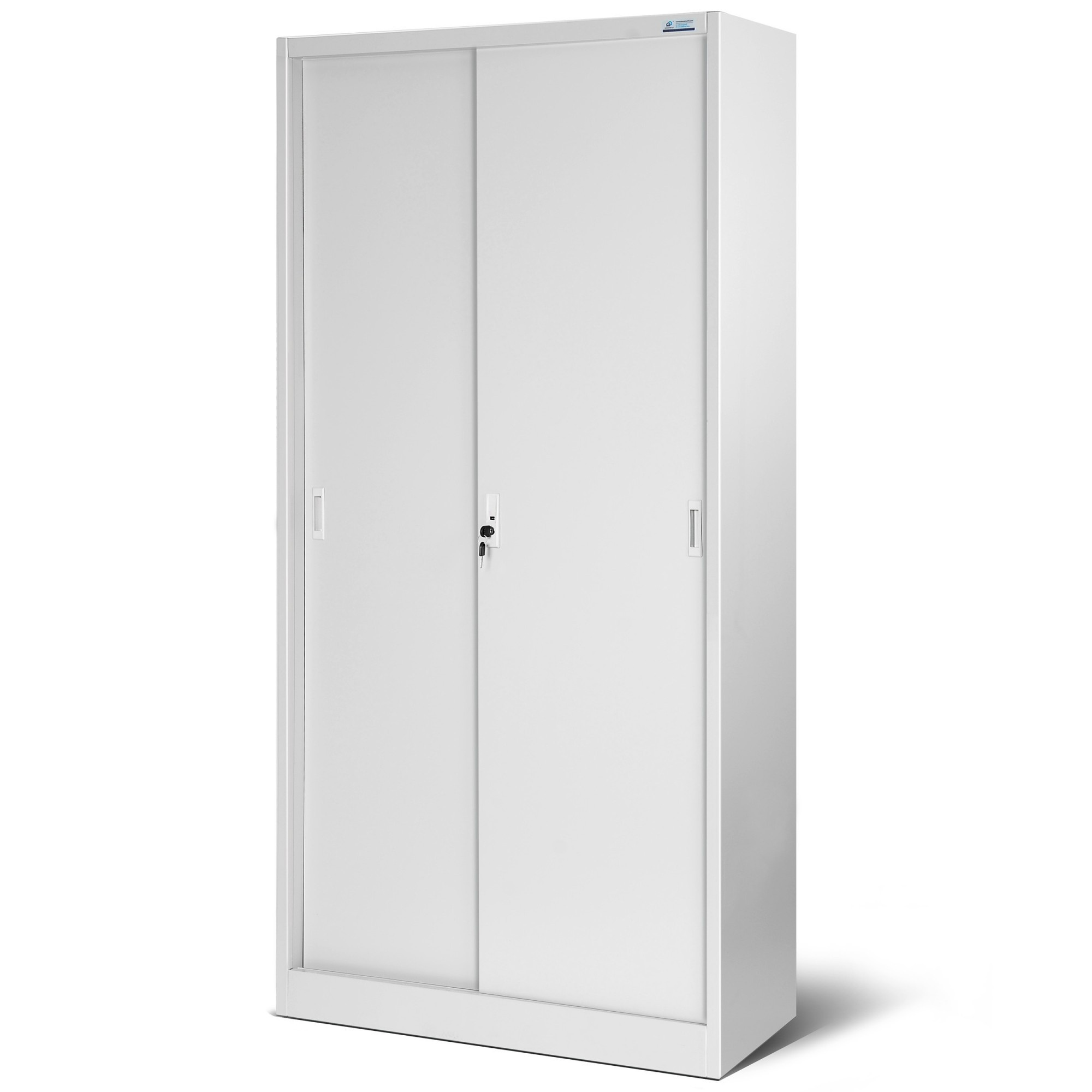 Fém irodai szekrény tolóajtókkal KUBA, 900 x 1850 x 400 mm, szürke