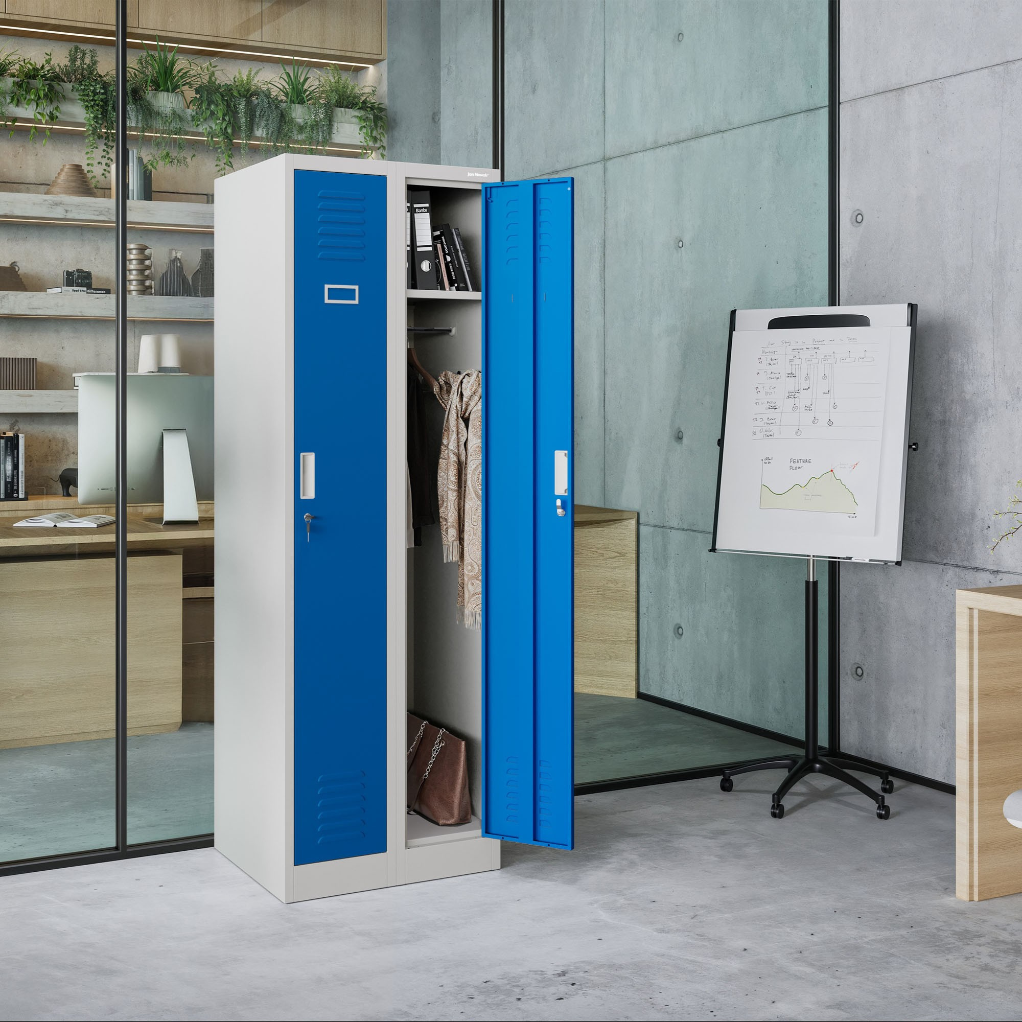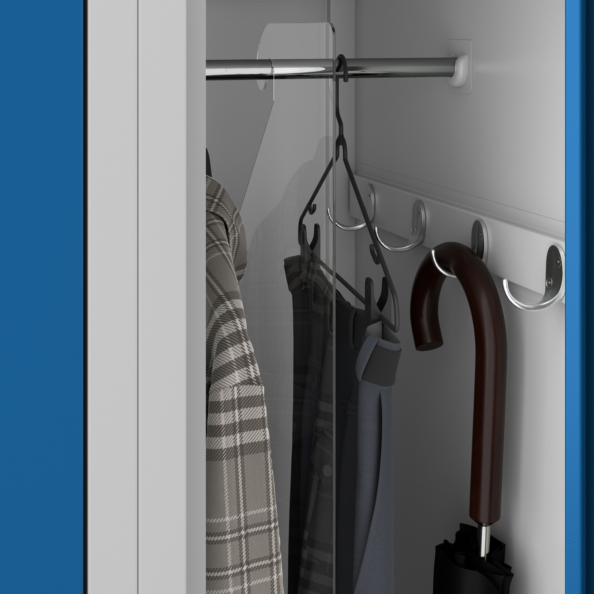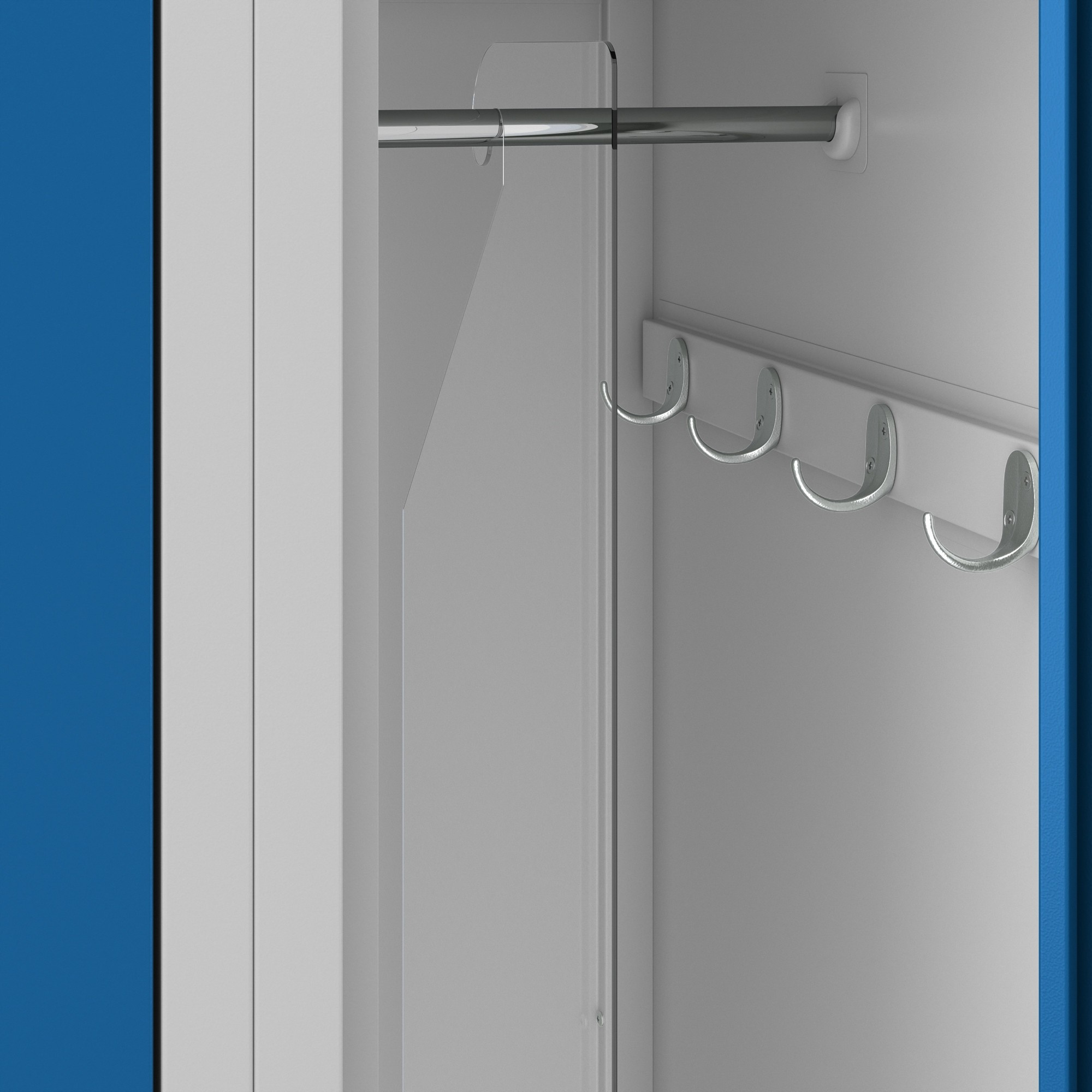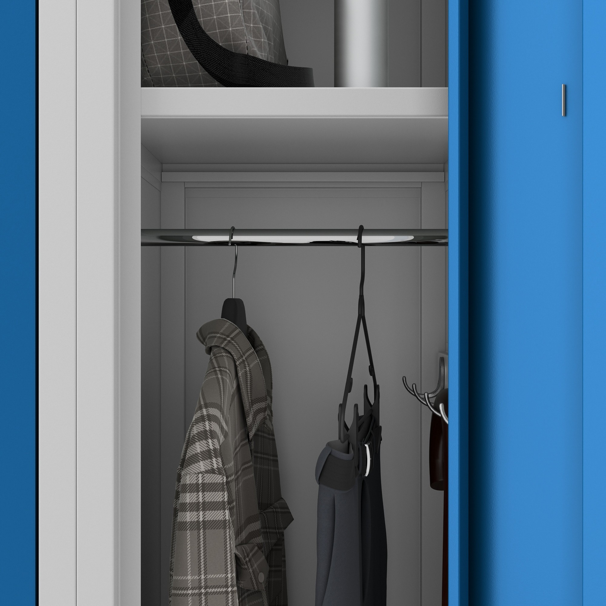 A szekrény kiváló minőségű biztonsági zárral van felszerelve, amely megvédi a tárolt tárgyakat az illetéktelen hozzáféréstől. Biztos lehet benne, hogy személyes tárgyai biztonságban vannak.