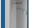 A szekrény két fő rekesszel van felszerelve, amelyeket egy speciális függöny segítségével négy részre lehet osztani. Ez lehetővé teszi például a piszkos ruhák elkülönítését a tisztáktól. Két polc, két vállfatartó rúd és nyolc ruhafogas elegendő helyet biztosít minden szükséges dolog tárolására.