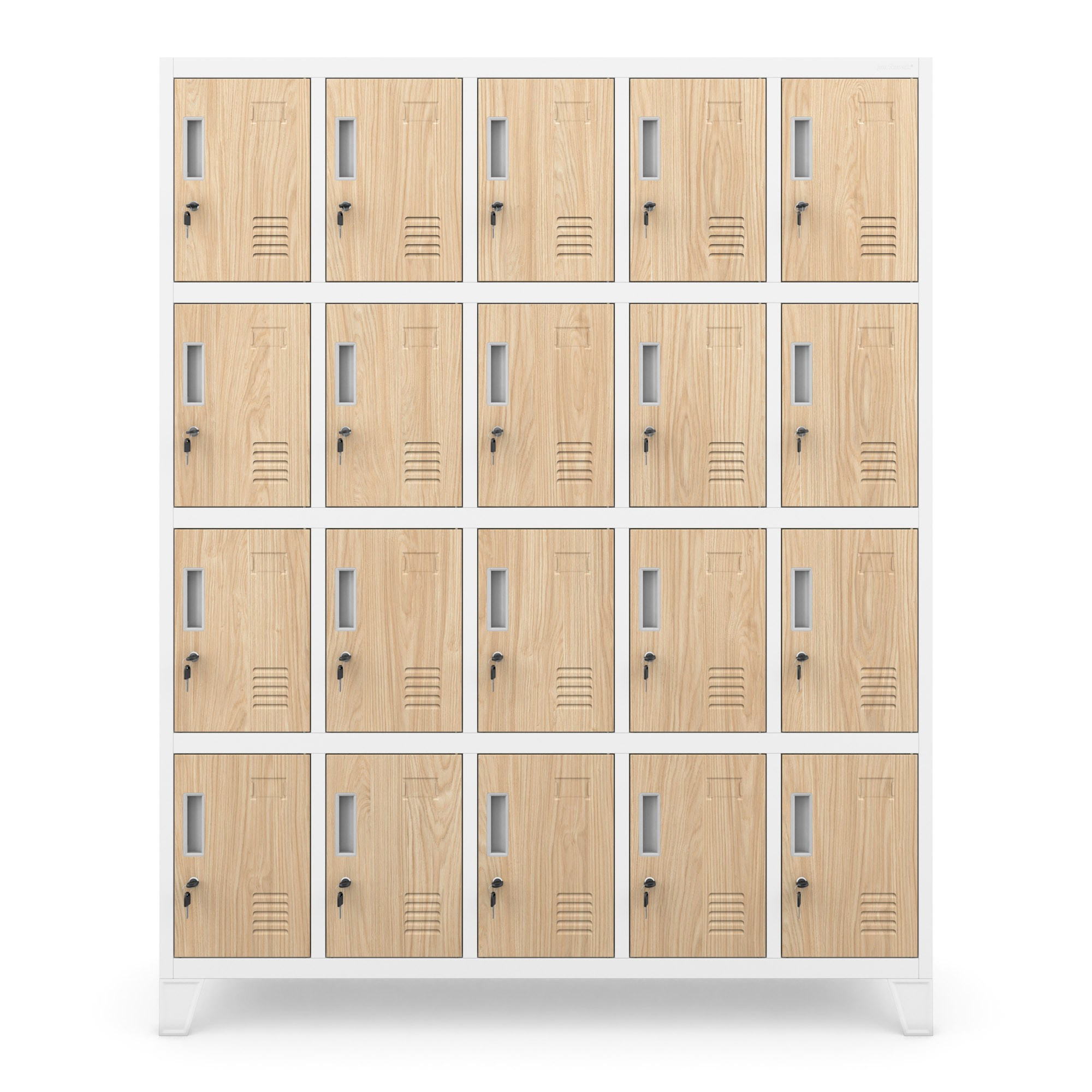 A ROBERT szekrény 20 különálló rekeszt kínál, amelyek elegendő helyet biztosítanak ruhák, cipők, táskák, hátizsákok és személyes tárgyak tárolására. Minden rekesz mérete 36 x 24 x 45 cm, ami biztosítja a kényelmes tárolást még nagyobb tárgyak esetén is.
