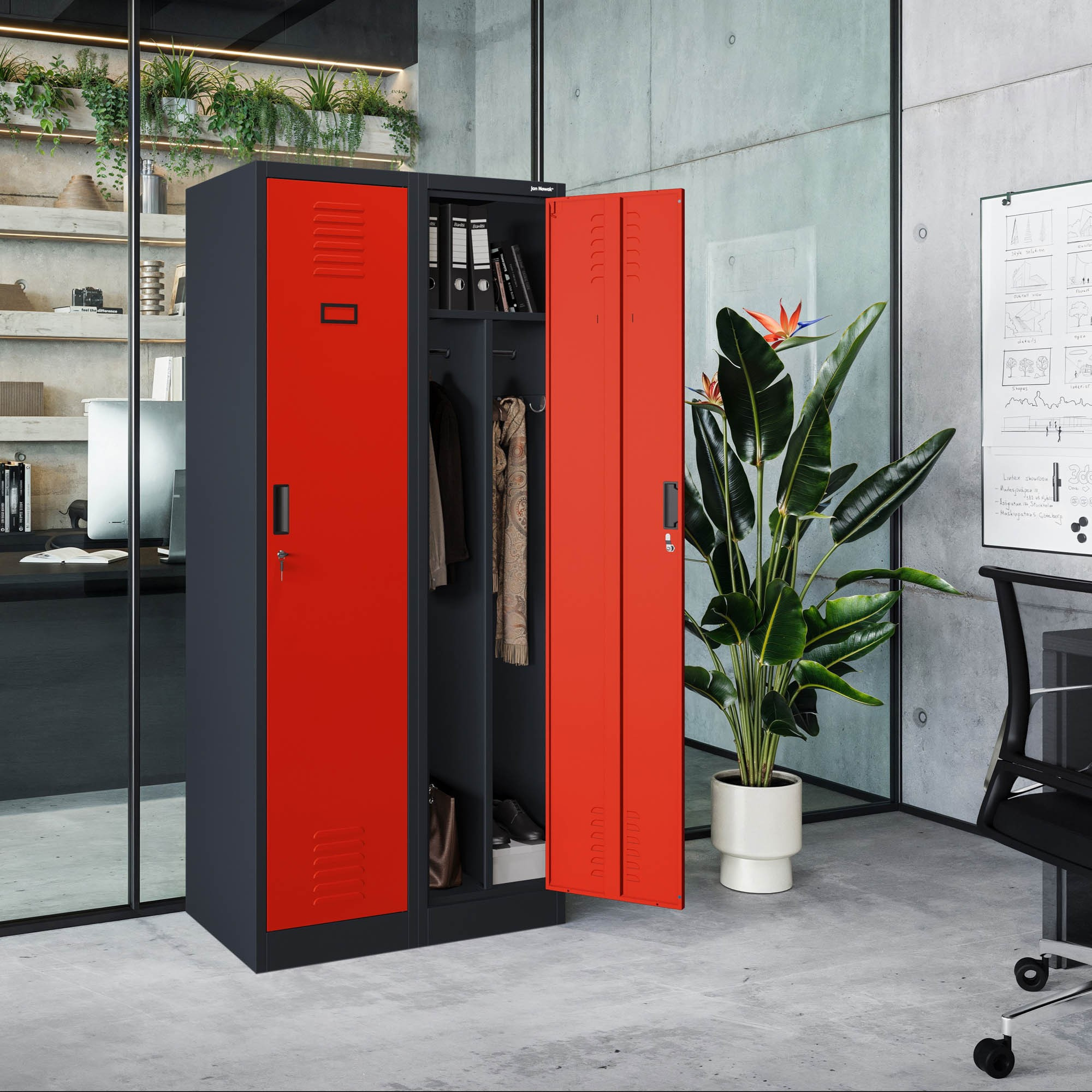 - Ipari létesítmények: Az autószervizek és gyártóüzemek tartós és praktikus szekrényeket igényelnek a munkaruhák és szerszámok tárolására.