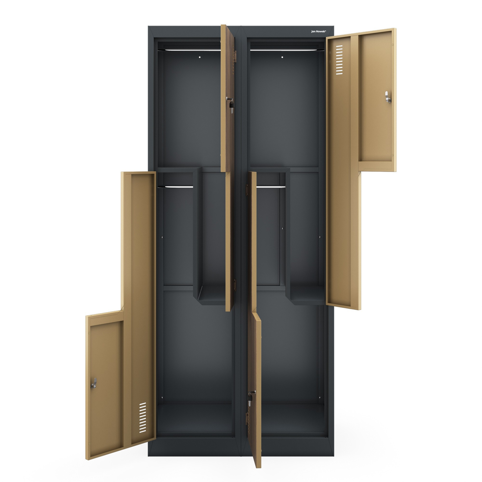 A JULIA modell szilárd felépítésének és modern dizájnjának köszönhetően népszerű választás a modern és loft belső terekhez. Kiválóan alkalmas uszodák, sportlétesítmények, irodák, iskolák és egészségügyi intézmények öltözőibe. Akár alkalmazottaknak, diákoknak vagy látogatóknak van szüksége tárolóhelyre, a JULIA a megfelelő választás.