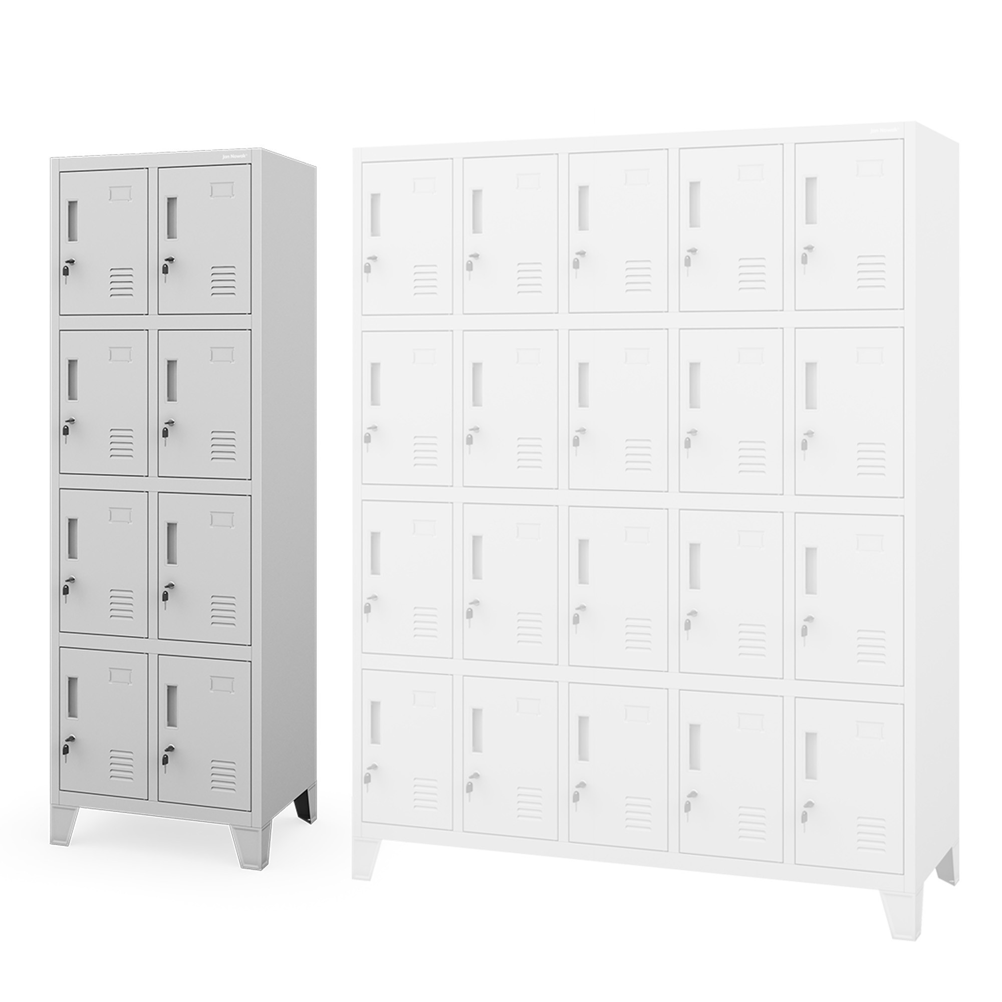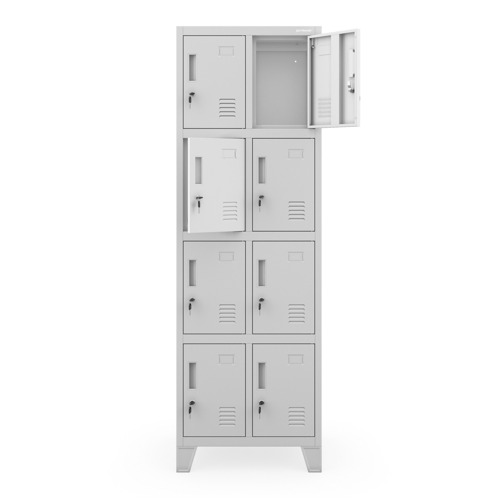 A szekrény nyolc azonos méretű, különálló rekeszre van osztva, amelyek elegendő helyet biztosítanak személyes tárgyak, apróságok, könyvek, táskák vagy pulóverek tárolására. Minden dolgod áttekinthetően lesz elrendezve és mindig kéznél lesz. A rekeszek különböző magasságokban vannak elhelyezve, így különböző magasságú emberek is kényelmesen használhatják őket.