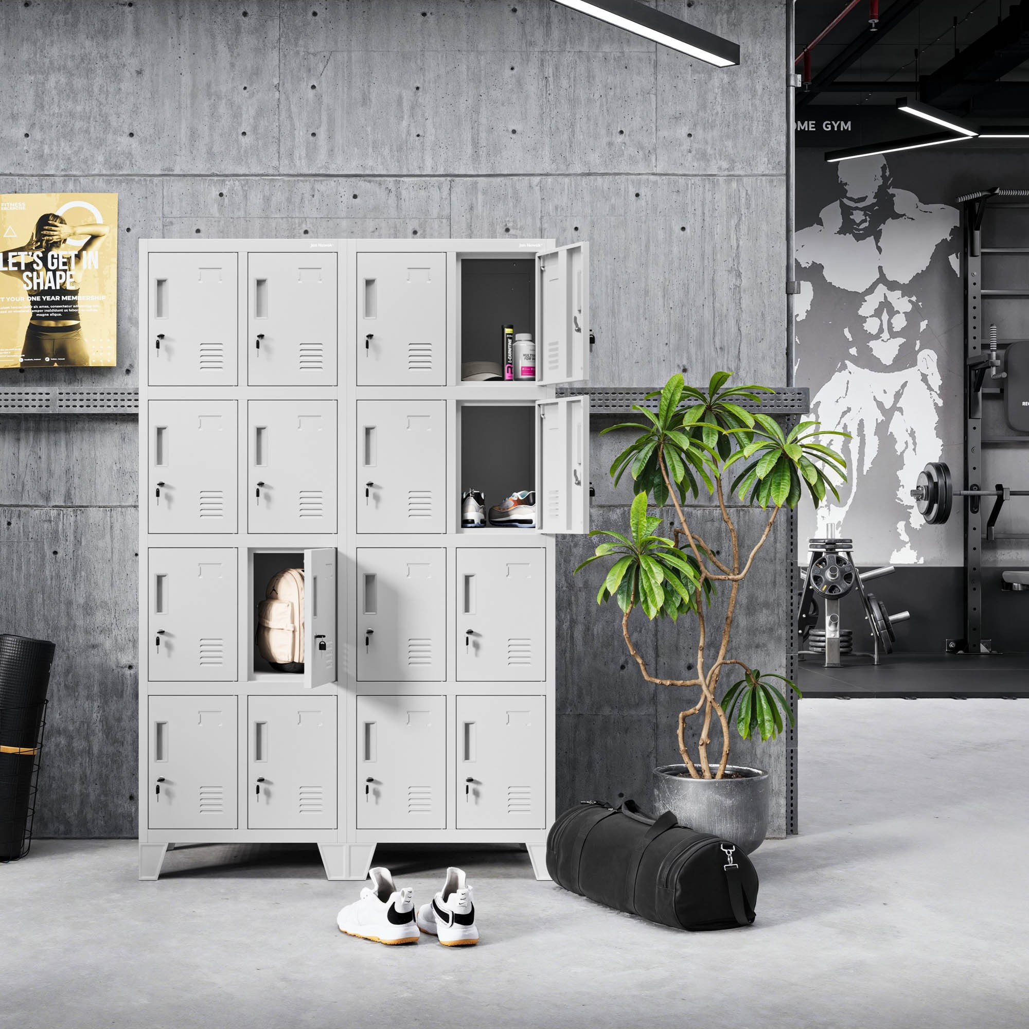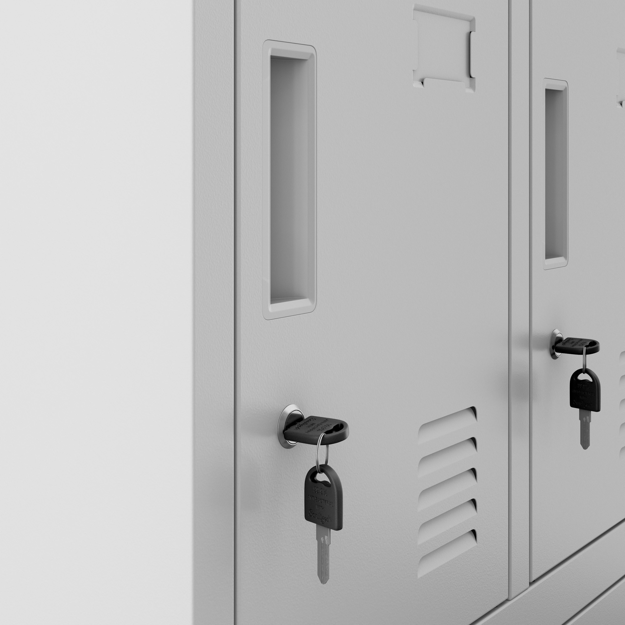 A szekrényajtók szellőzőnyílásai hatékony légáramlást és a kellemetlen szagok és nedvesség csökkentését biztosítják. A hatékony légkeringés frissen és higiénikusan tartja a dolgaidat. Minden szekrény ajtaján névjegykártyatartó is található, amely megkönnyíti az egyes rekeszek azonosítását és kiküszöböli az esetleges tévedéseket.