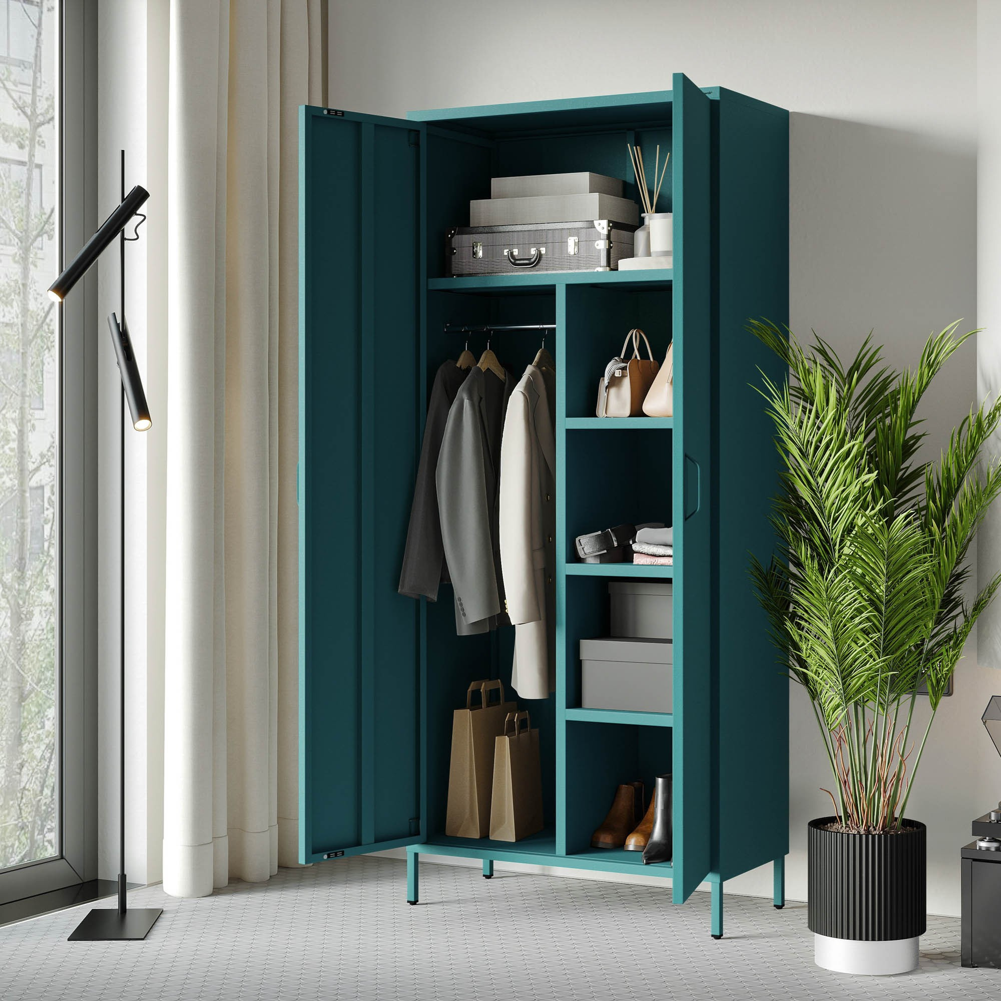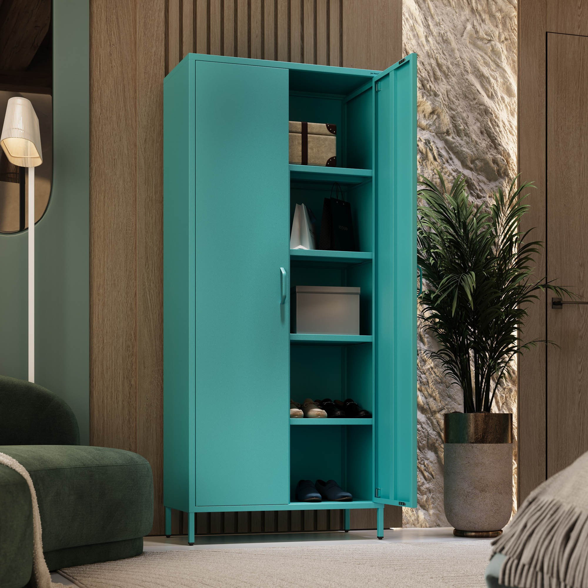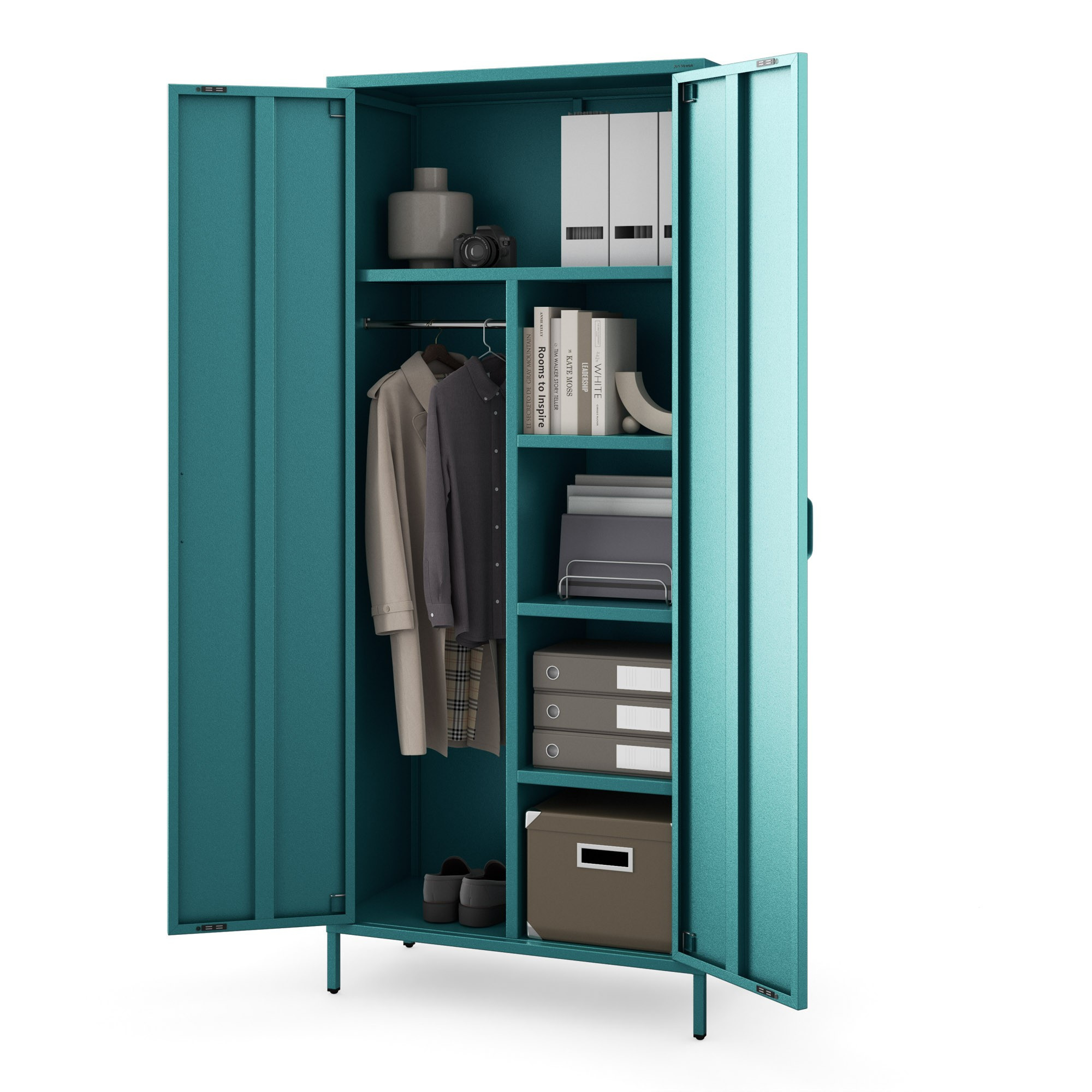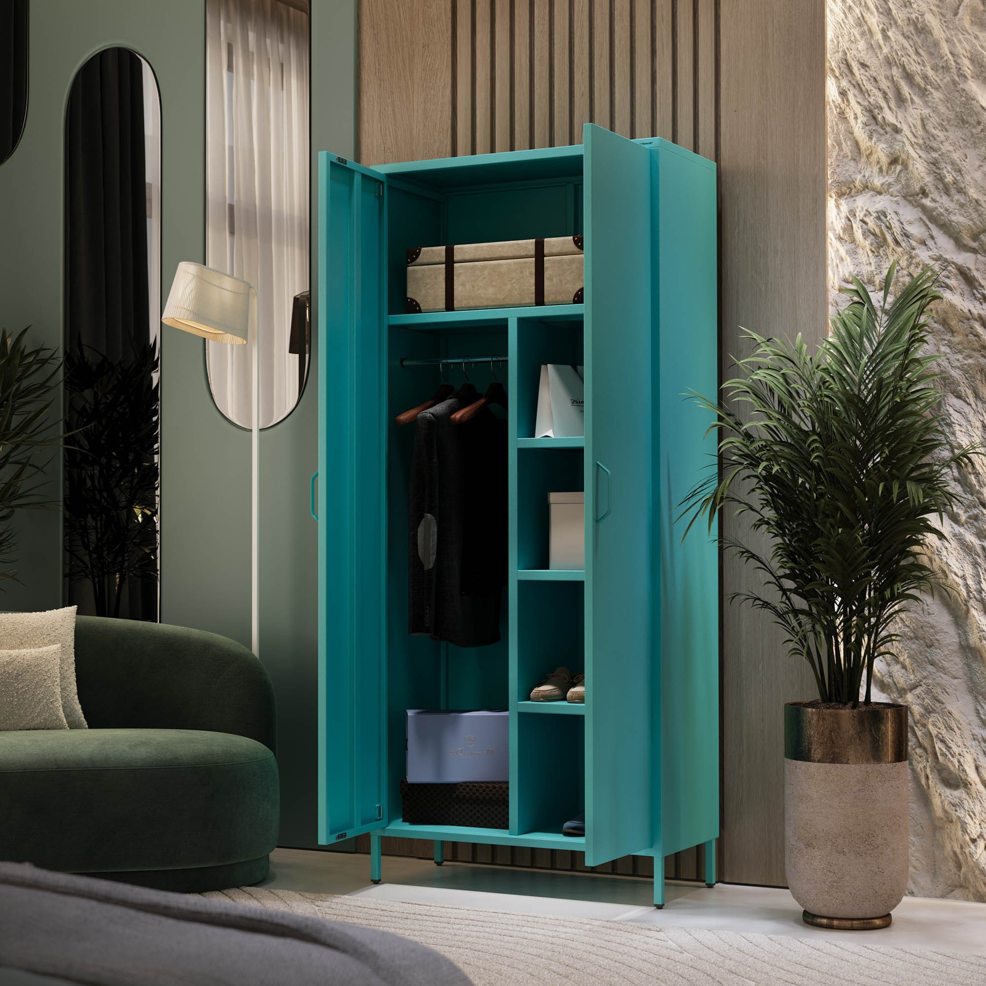 Bemutatjuk a FLAVIO ruhásszekrényt, egyedülálló bútordarabot, amely ötvözi a modern designt a maximális funkcionalitással. Felejtsd el az unalmas és egyhangú szekrényeket! A FLAVIO frissességet és eleganciát hoz az otthonába. Egyedi tengeri/türkiz színe a Sparkling Brilliance™ csillogó hatásával minden szobát a stílus és rend oázisává varázsol.
