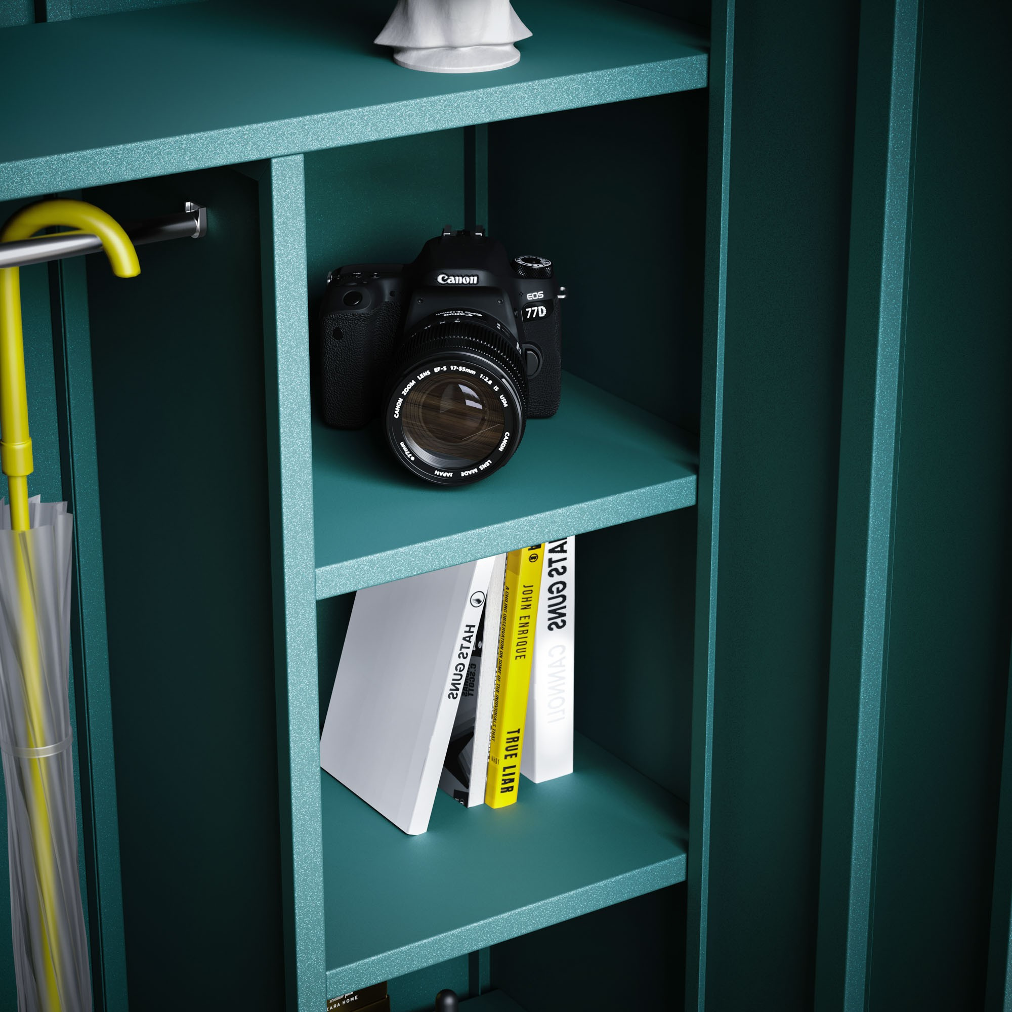 - Négy tágas fülke: Elegendő helyet biztosítanak összehajtott ruháknak, cipőknek, táskáknak és egyéb kiegészítőknek.