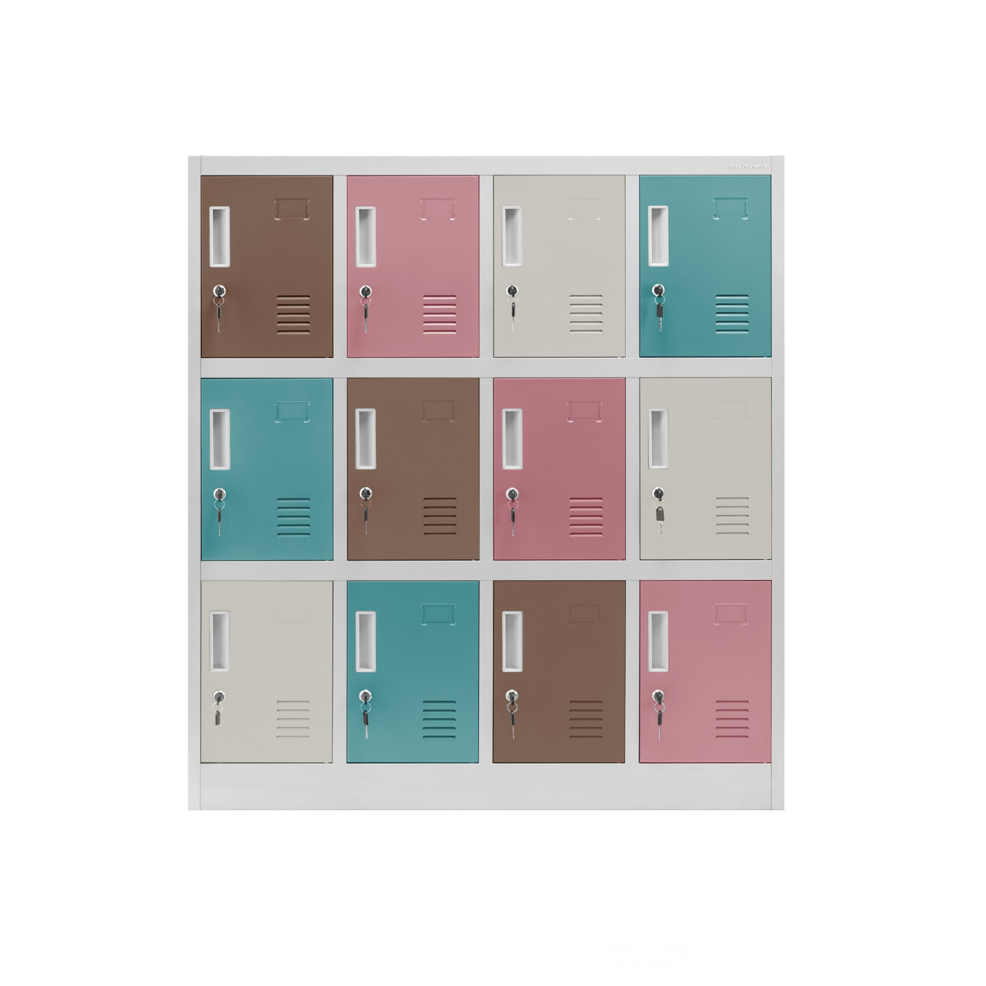 Fém szekrény öltözőbe és óvodába OLA, 1090 x 1200 x 450 mm, szürke-pasztell