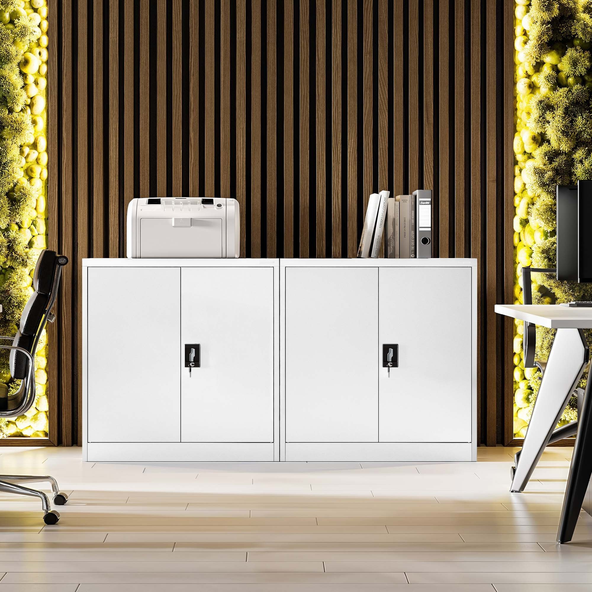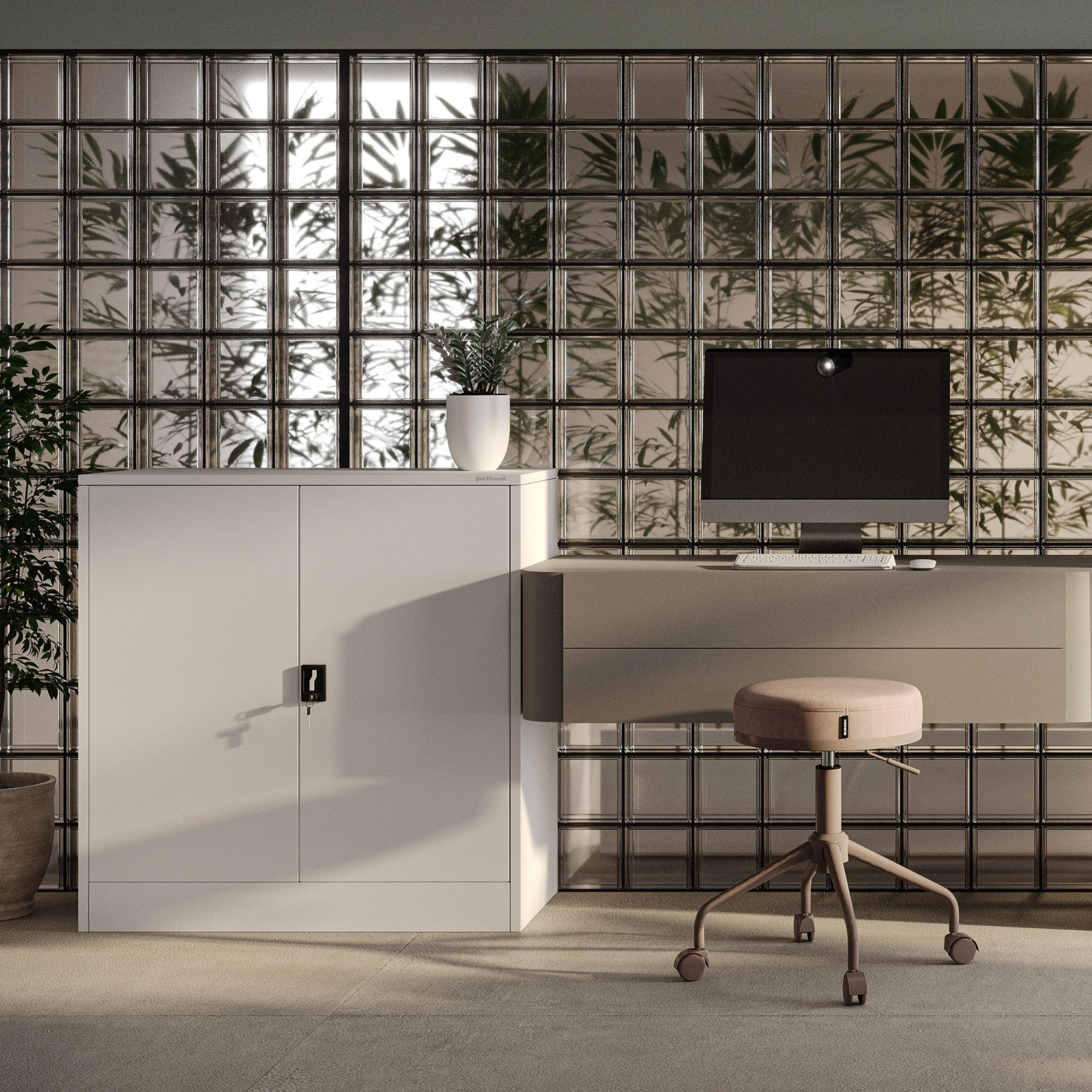 Ne hagyja, hogy megtévesszék a méretei (900 x 930 x 400 mm). BEATA úgy van tervezve, hogy maximalizálja a tárolóhelyet. Belül talál két állítható polcot, amelyek a szekrény aljával együtt három tágas szintet alkotnak. Akár 25 szabványos iratgyűjtőt, dokumentumokat, szerszámokat vagy bármi mást is könnyedén tárolhat benne, amire szüksége van.