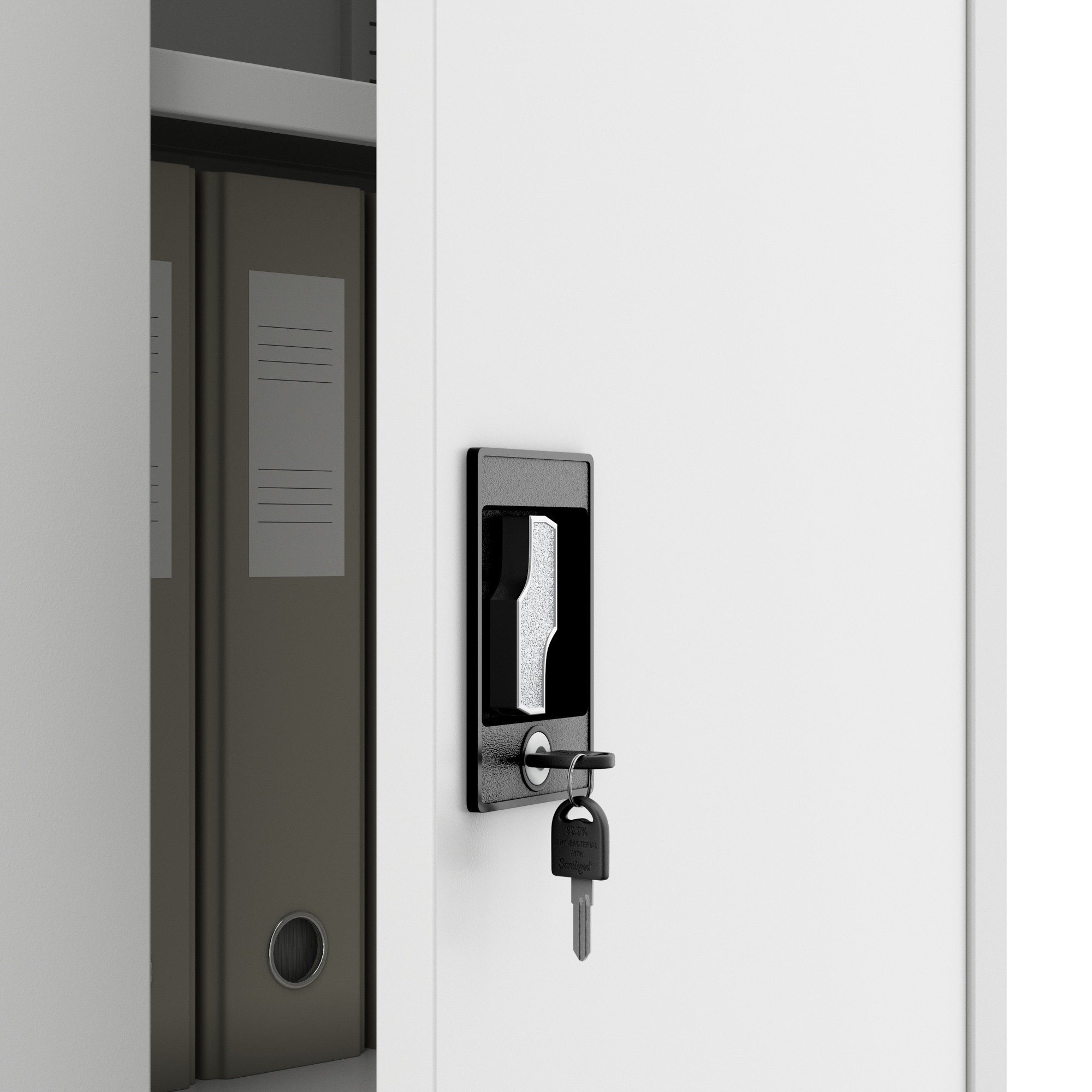 BEATA kiváló minőségű zárral van felszerelve, amely biztosítja a tárolt dokumentumok és tárgyak biztonságát. A zár három ponton van biztosítva, így nem kell aggódnia az illetéktelen hozzáférés miatt. A szekrényhez két kulcsot kap.