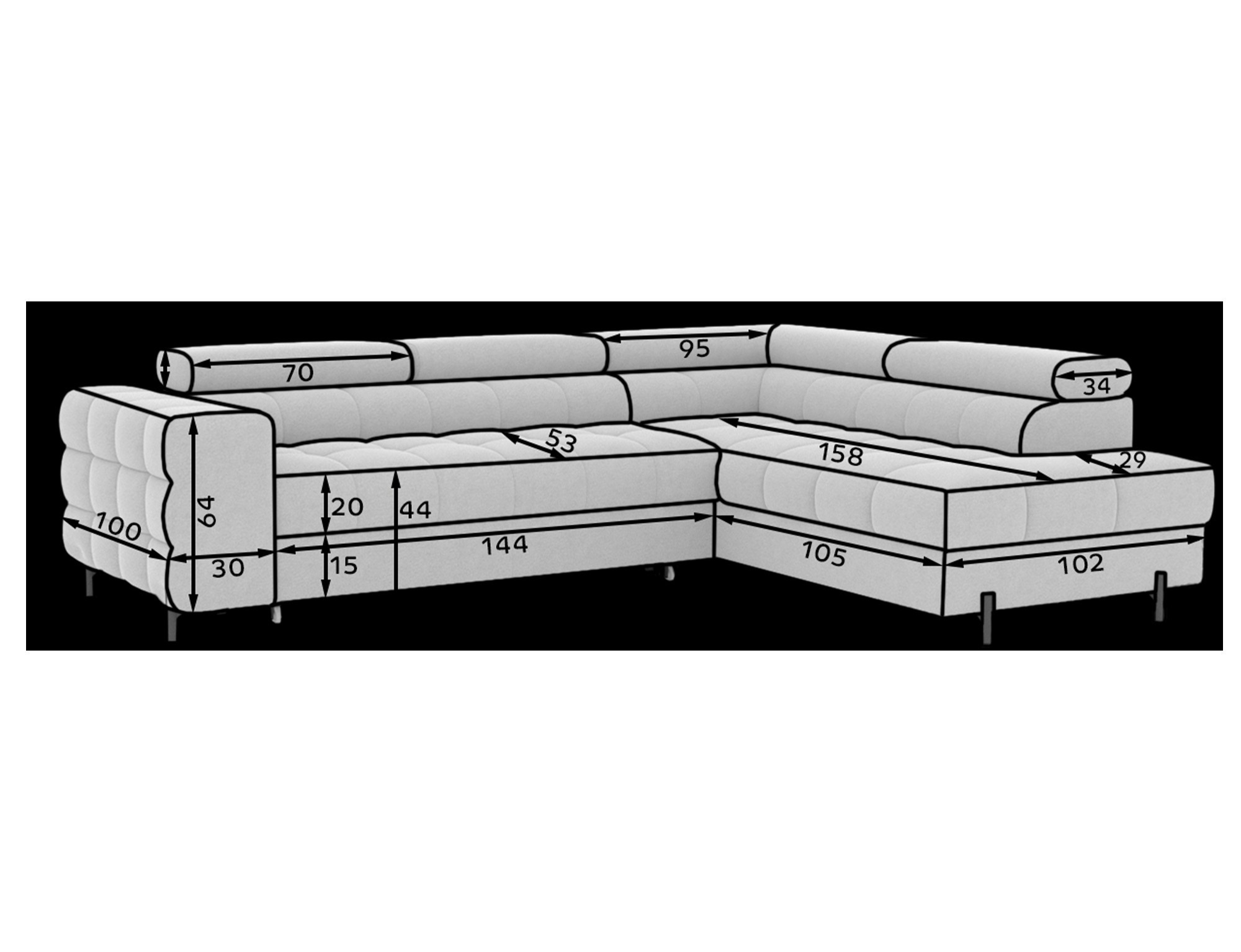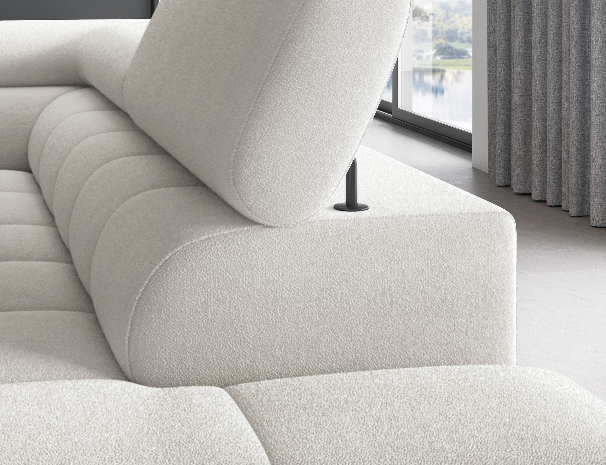 The L-shaped Ferucce with dimensions of 276x200x72-93 cm is a stylish and functional piece of furniture, perfect for modern interiors. Its adjustable headrests allow for personalized backrest height adjustment, ensuring maximum comfort during relaxation. The sofa combines elegance with practicality, offering ample space for relaxation and a comfortable spot for the whole family. Its well-thought-out design makes it not only comfortable but also aesthetically pleasing in the living room.