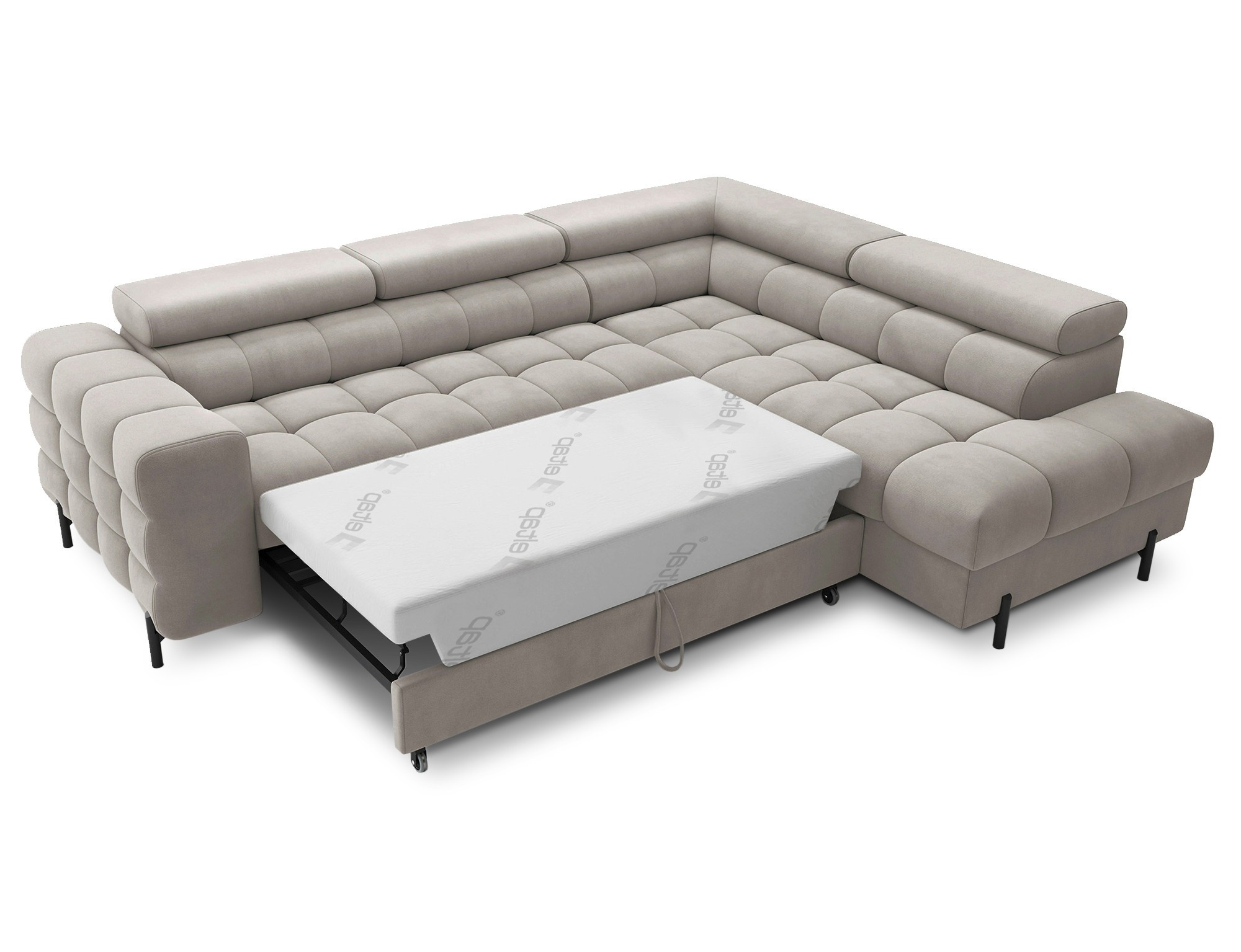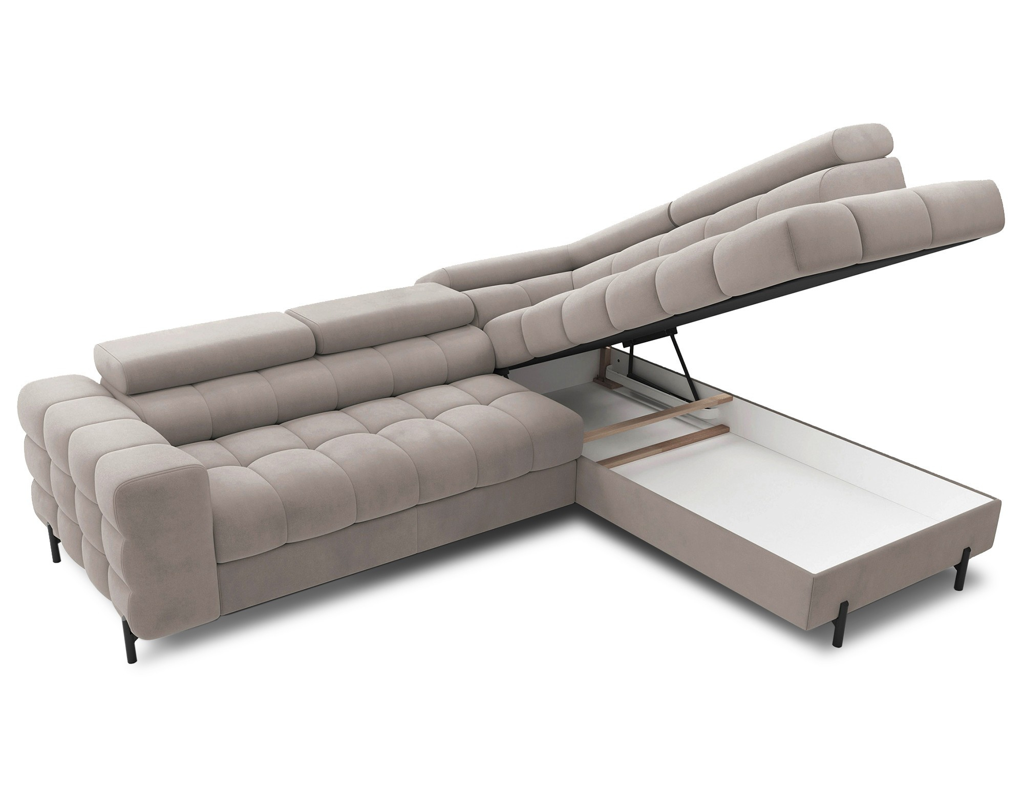 The L-shaped Ferucce with dimensions of 276x200x72-93 cm is a stylish and functional piece of furniture, perfect for modern interiors. Its adjustable headrests allow for personalized backrest height adjustment, ensuring maximum comfort during relaxation. The sofa combines elegance with practicality, offering ample space for relaxation and a comfortable spot for the whole family. Its well-thought-out design makes it not only comfortable but also aesthetically pleasing in the living room.