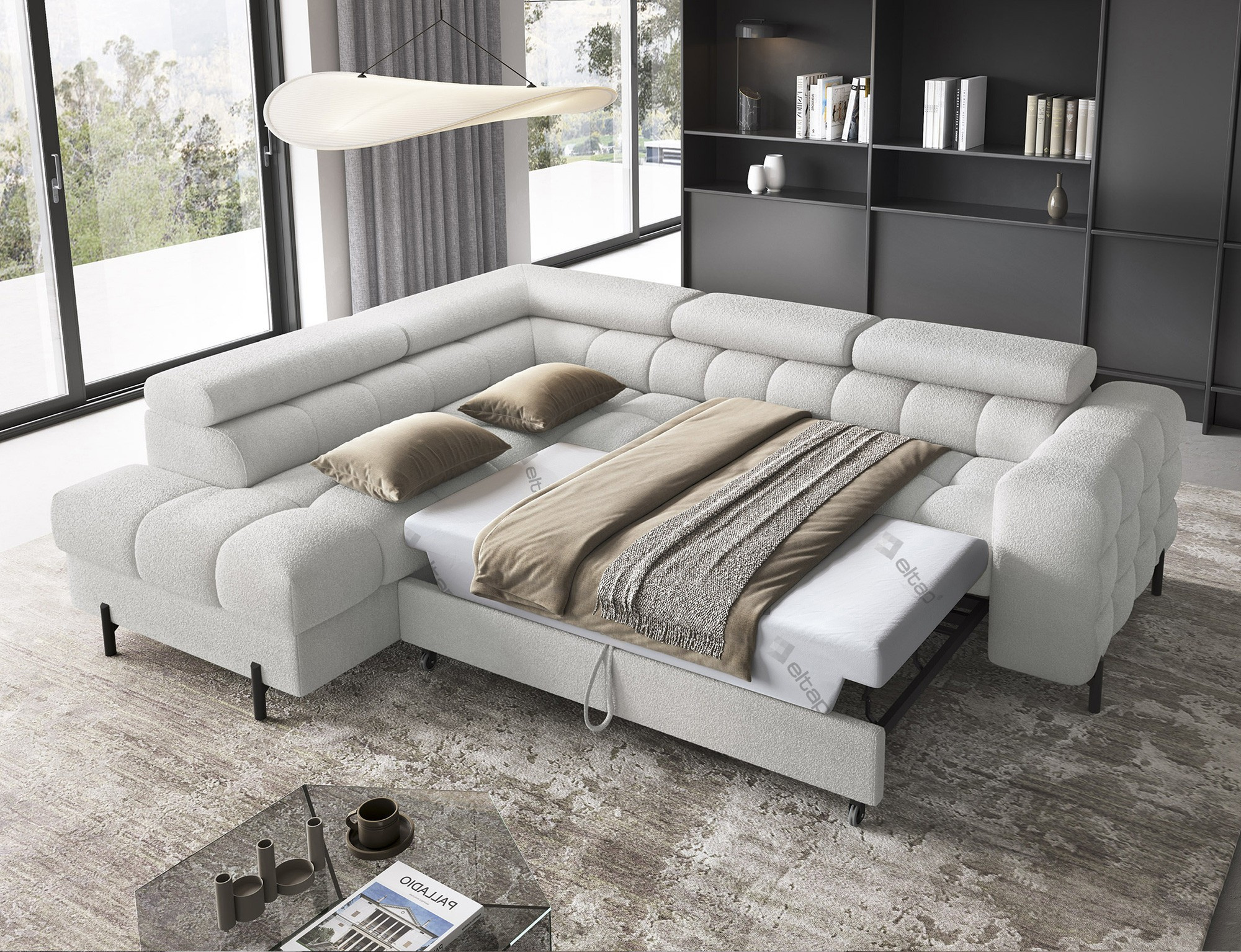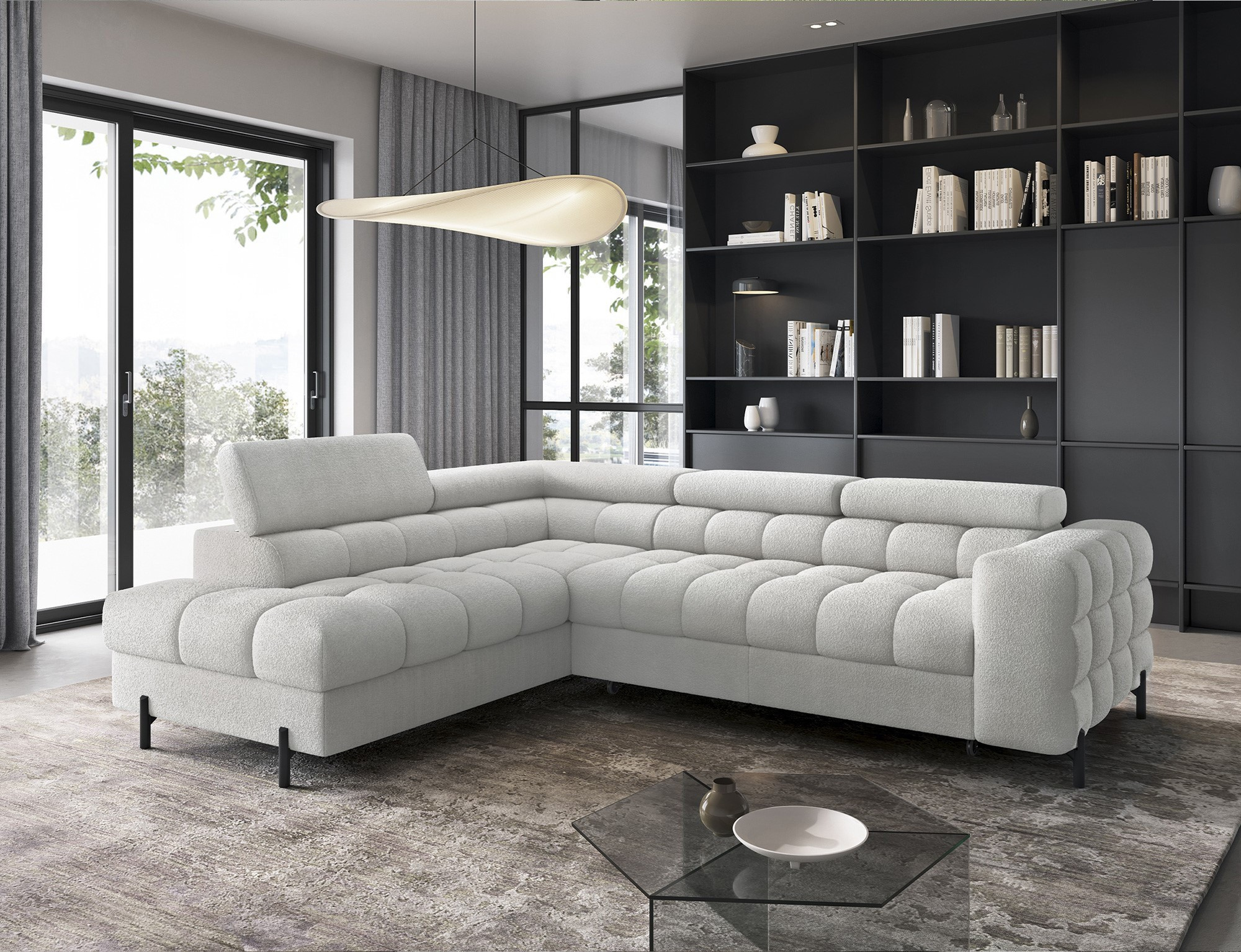 The L-shaped Ferucce with dimensions of 276x200x72-93 cm is a stylish and functional piece of furniture, perfect for modern interiors. Its adjustable headrests allow for personalized backrest height adjustment, ensuring maximum comfort during relaxation. The sofa combines elegance with practicality, offering ample space for relaxation and a comfortable spot for the whole family. Its well-thought-out design makes it not only comfortable but also aesthetically pleasing in the living room.