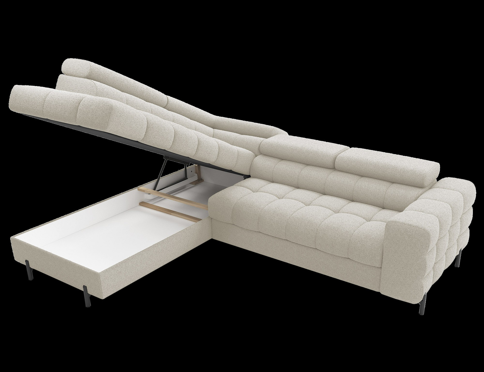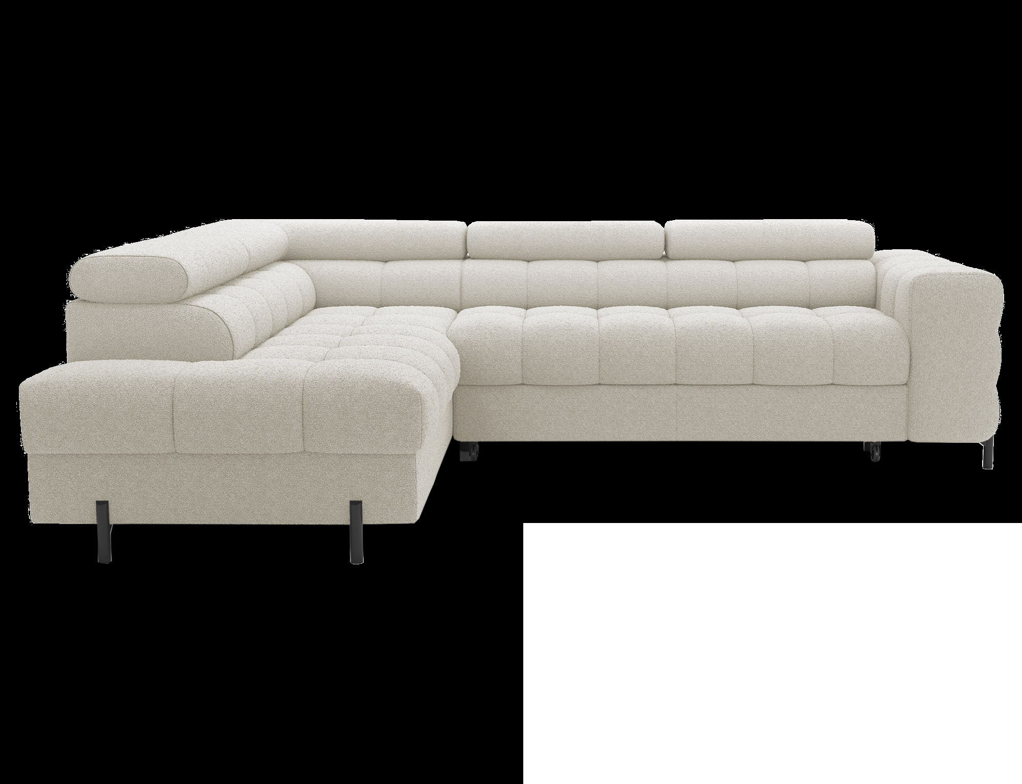 The L-shaped Ferucce with dimensions of 276x200x72-93 cm is a stylish and functional piece of furniture, perfect for modern interiors. Its adjustable headrests allow for personalized backrest height adjustment, ensuring maximum comfort during relaxation. The sofa combines elegance with practicality, offering ample space for relaxation and a comfortable spot for the whole family. Its well-thought-out design makes it not only comfortable but also aesthetically pleasing in the living room.