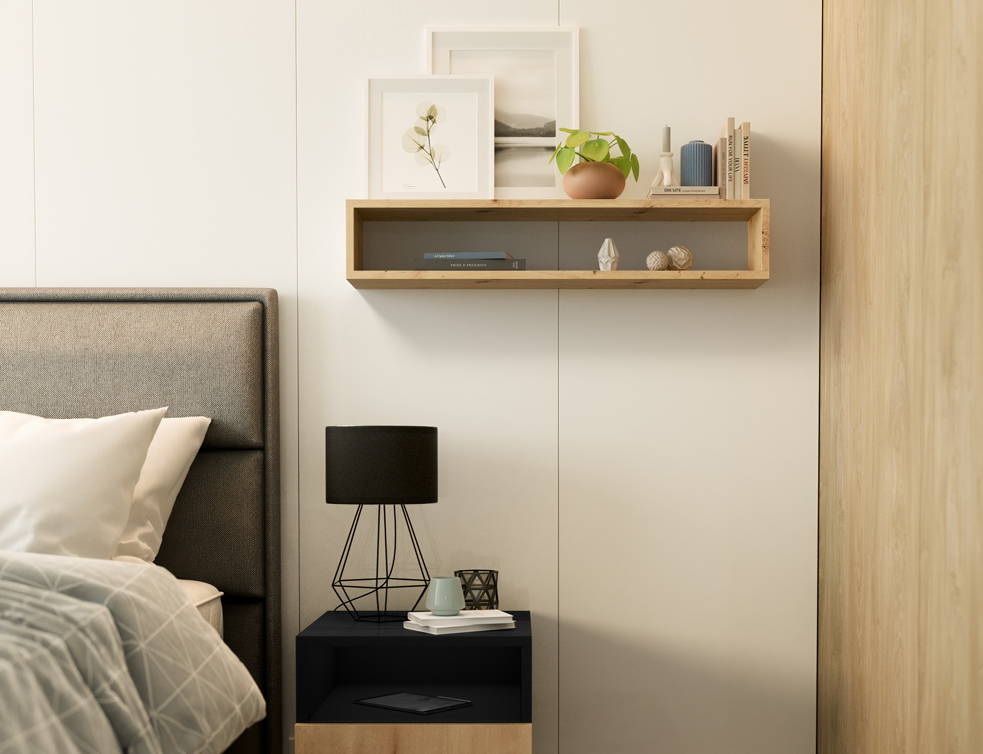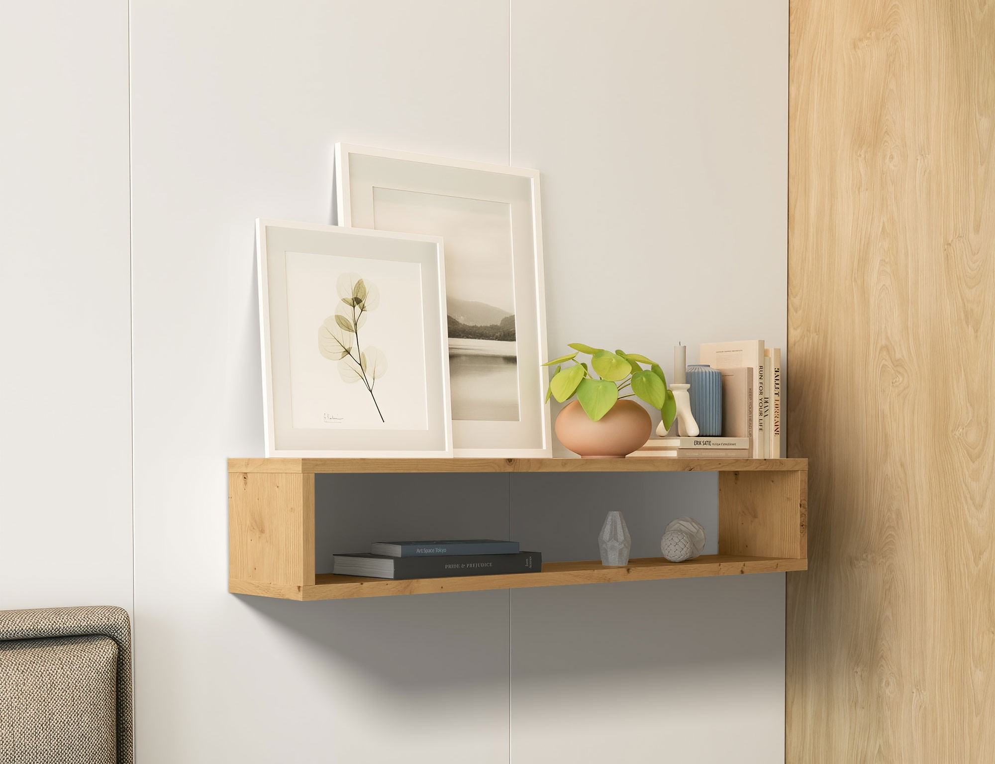 The Finees hanging shelf is an elegant and practical interior feature, perfectly suited for any room. With dimensions of 80 cm in length, 15 cm in height, and 15 cm in depth, it offers an ideal solution for storing and displaying a variety of items. Its compact size makes the Finees shelf perfect for mounting on the wall in the living room, bedroom, kitchen, or hallway. The minimalist design allows it to seamlessly blend into modern interiors, adding a touch of lightness and functionality. The shelf is perfect for holding books, decorations, small plants, and other small items you want to keep handy or display. The Finees shelf is sturdily constructed and easy to install, ensuring durability and stability during use. Its simple form and universal style make it not only a practical but also an aesthetically pleasing addition to your home.