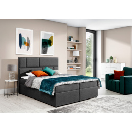 Florence is a tasteful, elegant, perfectly soft and comfortable boxspring continental bed in modern classic style, which is available in three sizes: 145/ 165/ 185 x 210 cm. Exceptional comfort is compounded by the 54 cm high seat and filling of the bed. A 15 cm high bonell mattress and a 5 cm high topper gives the user of the furniture the highest comfort and perfectly stabilizes the position of the body during sleep. This type of filling is also resistant to unsightly indentations. Such a solution guarantees a comfortable rest for everyone - regardless of their tastes and expectations. In addition to the perceived high comfort, it is also worth noting the finish of the individual elements of the Florence model. The high headrest, stitched into the shape of irregular rectangles, is both a soft support and an unparalleled decoration of the bedroom. Two spacious bedding containers add functionality to our Boxspring and make the use of such a bed - a real pleasure. It's worth getting the Florence bed to enjoy a designer finish combined with maximum comfort. Our Boxspring bed will be a hit if you want to enliven the interior of your bedroom.