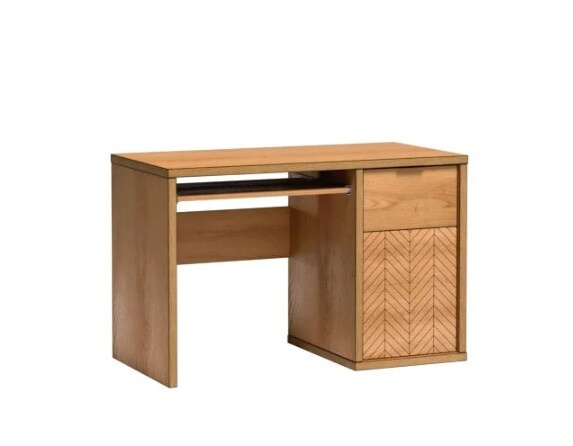 Gyönyörű íróasztal a FONTI kollekcióból karamell tölgy színben. Nagyszerűen illik fiatalok szobájába vagy irodába. A bútordarabban található egy kihúzható polc a számítógép billentyűzetéhez, valamint egy szekrény a jobb oldalon, amely egy polccal két különálló részre osztja a teret.