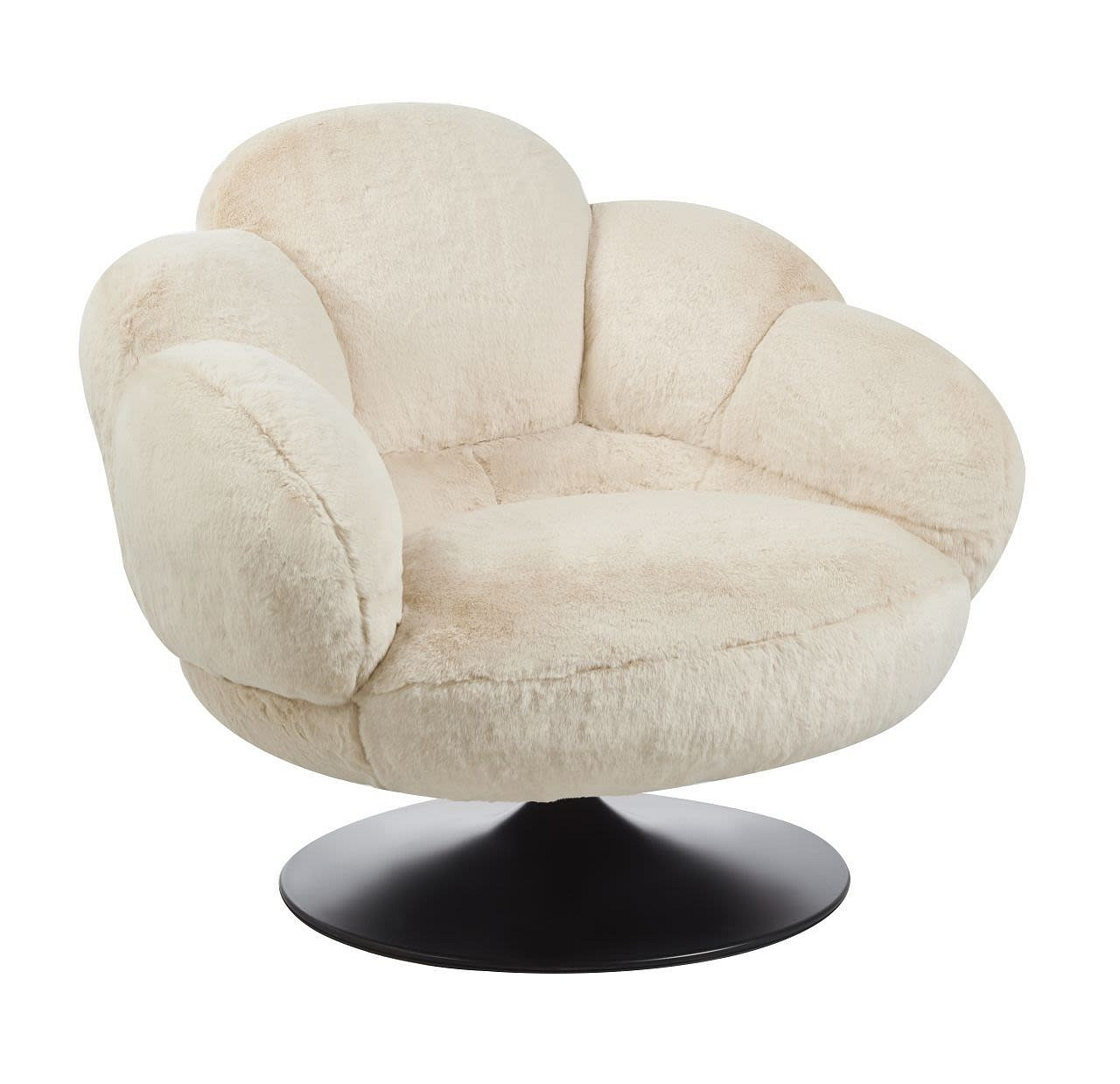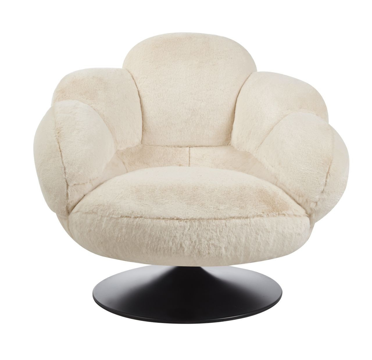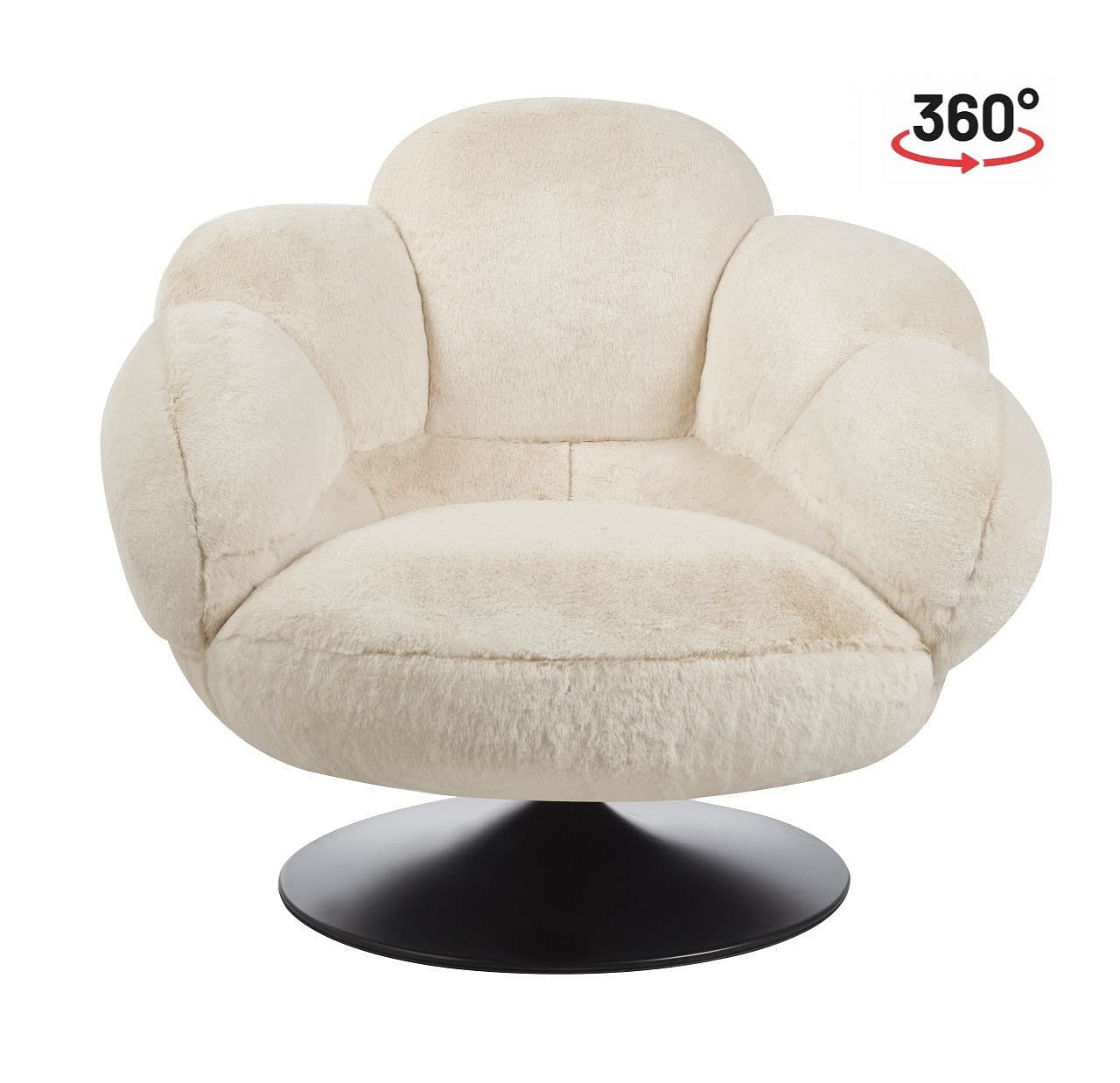 A szék ülőkéje 360 fokban forgatható.Méretek: - teljes magasság: 78 cm - teljes szélesség: 96 cm - teljes mélység: 92 cm - ülésmélység: 55 cm - ülés szélessége: 55 cm - ülésmagasság: 39 cm - alap átmérője: 60 cm Anyag: - ülés: szőrme szövet - keret: porfestett fém Szín: - ülés: bézs - alap: fekete