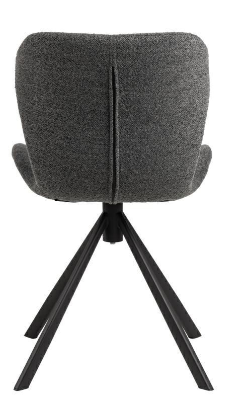A Batilda szék ideális bútordarab az étkezőbe, mivel ötvözi a stílust, a kényelmet és a praktikusságot. A puha bouclé szövetből készült kárpitozott ülés támaszt és kényelmet biztosít ülés közben. A fekete acél forgó alappal kombinálva a díszes cikkcakkos varrással ellátott szék modern esztétikát kölcsönöz minden étkezőnek. A szék alapja fémszerkezet, amely porszórt festékkel fekete matt színűre van festve. A szék összeszerelést igényel. Max. terhelés 110 kg. Kartondoboz méretei: 48x58x65 cm. Tömeg: 7,1 kg