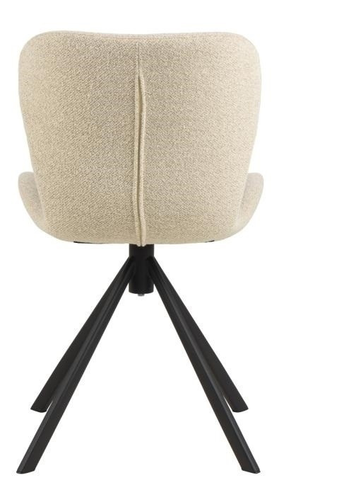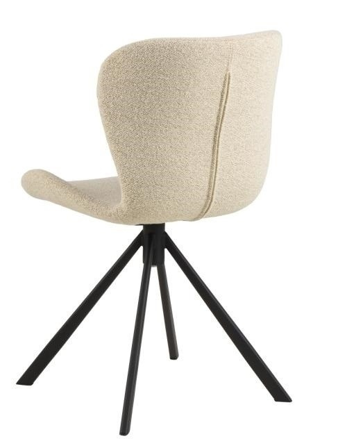 A Batilda szék ideális bútordarab az étkezőbe, mivel ötvözi a stílust, a kényelmet és a praktikusságot. A puha bouclé szövetből készült kárpitozott ülés támaszt és kényelmet biztosít ülés közben. A fekete acél forgó alappal kombinálva a díszes cikkcakkos varrással ellátott szék modern esztétikát kölcsönöz minden étkezőnek. A szék alapja fémszerkezet, amely porszórt festékkel fekete matt színűre van festve. A szék összeszerelést igényel. Max. terhelés 110 kg. Kartondoboz méretei: 48x58x65 cm. Tömeg: 7,1 kg