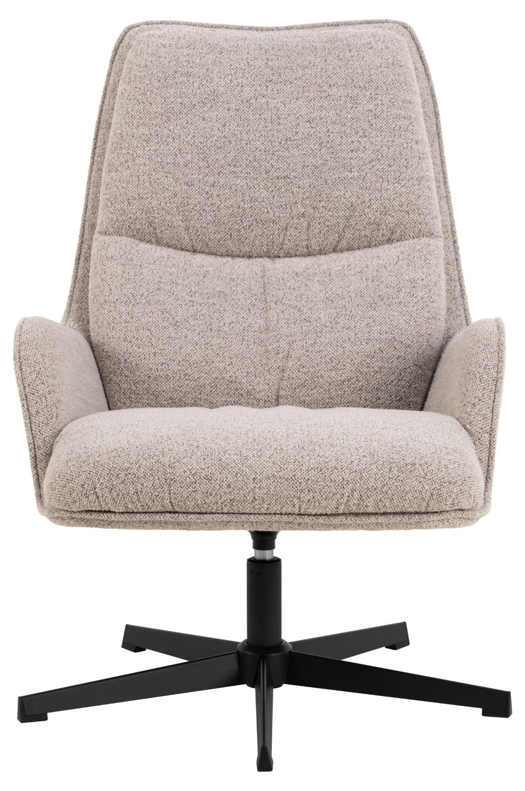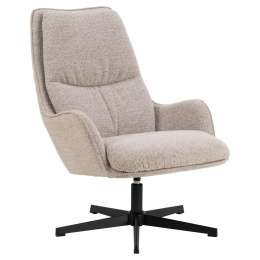 A Bosley fotel egy bútor, amely szélesre tárt karfáival pihenésre hívogat. A könnyedén profilozott ülés bézs színű, bouclé-ra emlékeztető anyaggal van bevonva, ami nemcsak érzéki élményeket, hanem kényelmet és támaszt is biztosít. Egy 5 csillagos, fekete acél forgó alapon elhelyezett szék modern hangulatot áraszt, amely uralni fogja a nappalinkat. FSC tanúsítvány Max. terhelhetőség 110 kg Háttámla magassága 60 cm Ülőfelület szélessége 60 cm Ülőfelület mélysége 48 cm Kartámasz magassága a padlótól 50 cm Kartámasz szélessége 10 cm Kartámasz mélysége 28 cm Kartámasz magassága 19 cm