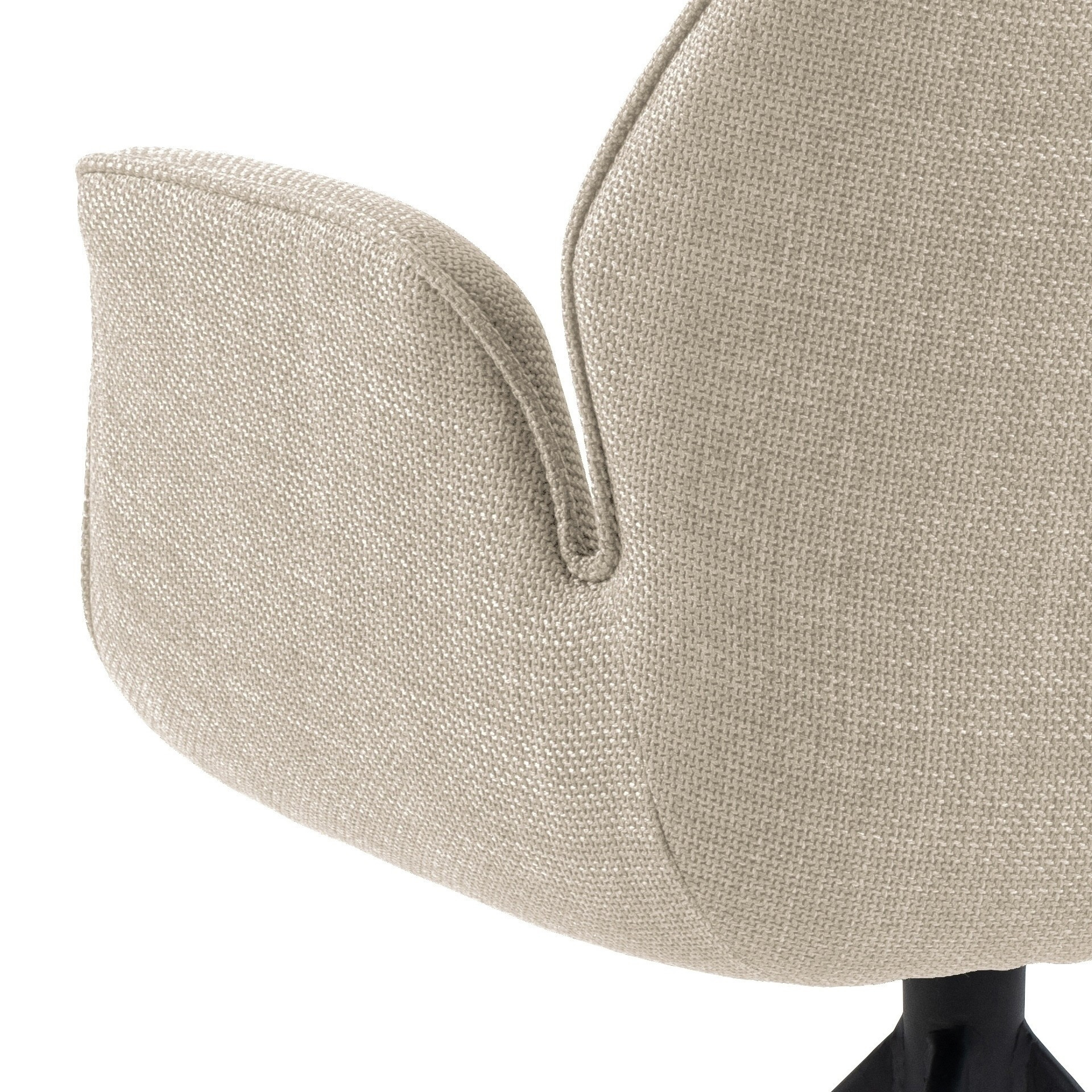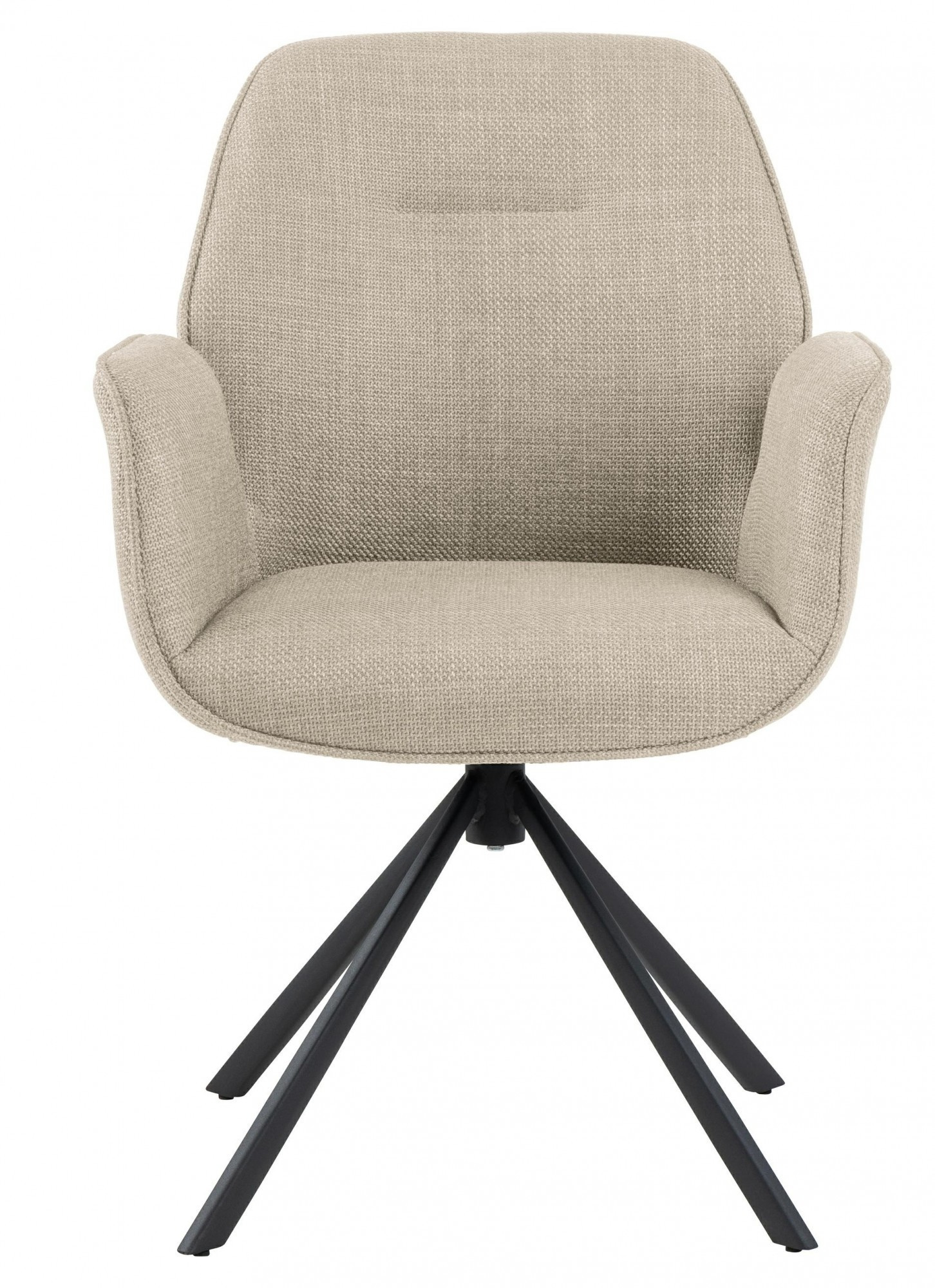 Az Aura forgószék karfákkal jellegzetes sziluettel rendelkezik, és modern eleganciát sugároz. Ez az étkezőszék ideális minden modern otthonba. Az ülőke bézs színű szövettel van kárpitozva, elegáns megjelenéssel. A modern megjelenés további hangsúlyozása érdekében a tervezés során egy négyágú csillag alakú fekete fém alapot használtak. Ami fontos, az alap forgatható funkcióval rendelkezik. Főbb jellemzők Modern étkezőszék elegáns megjelenéssel Sötétszürke, kétszínű hatású szövettel kárpitozva Fekete, porszórt fém alap forgó funkcióval Kiemelkedő részletek szegéllyel Dán design, kizárólag az Actona számára védett Ülőfelület szélessége: 45 cm Ülőfelület mélysége: 44 cm Háttámla magassága: 45 cm Kartonok száma: 1 Kartonok méretei: 77x61,5x65 cm Kartonok súlya: 10,6 kg